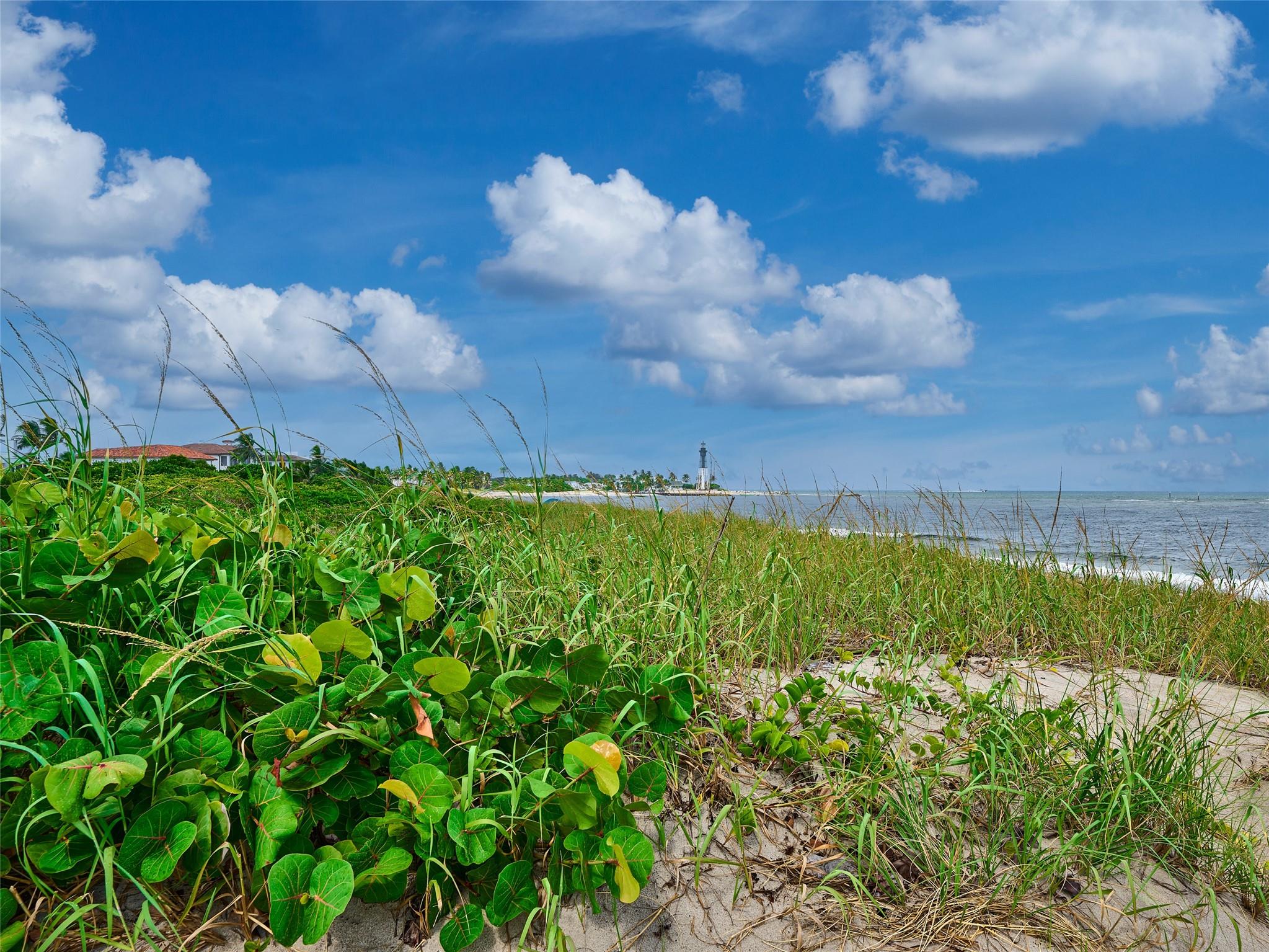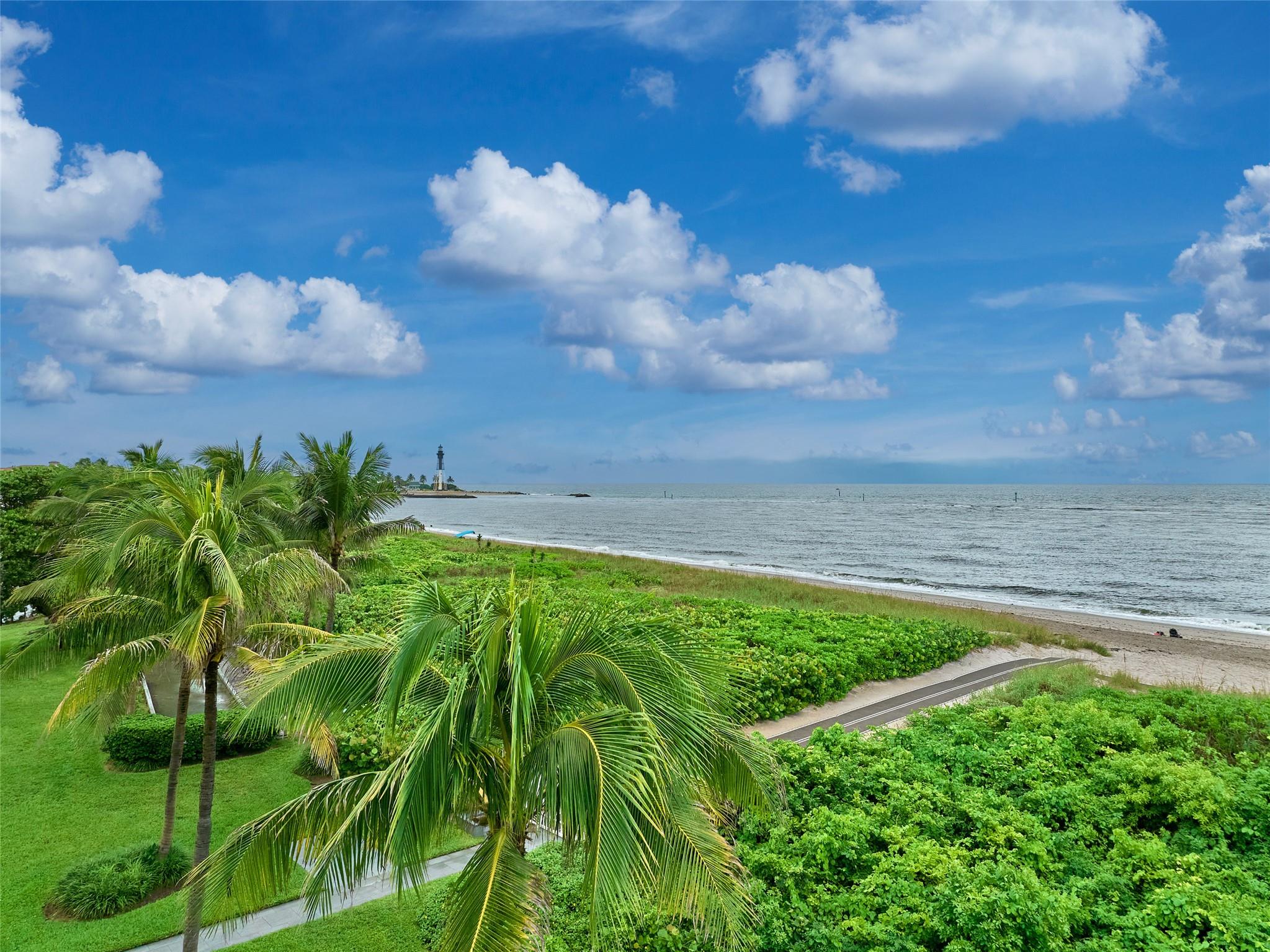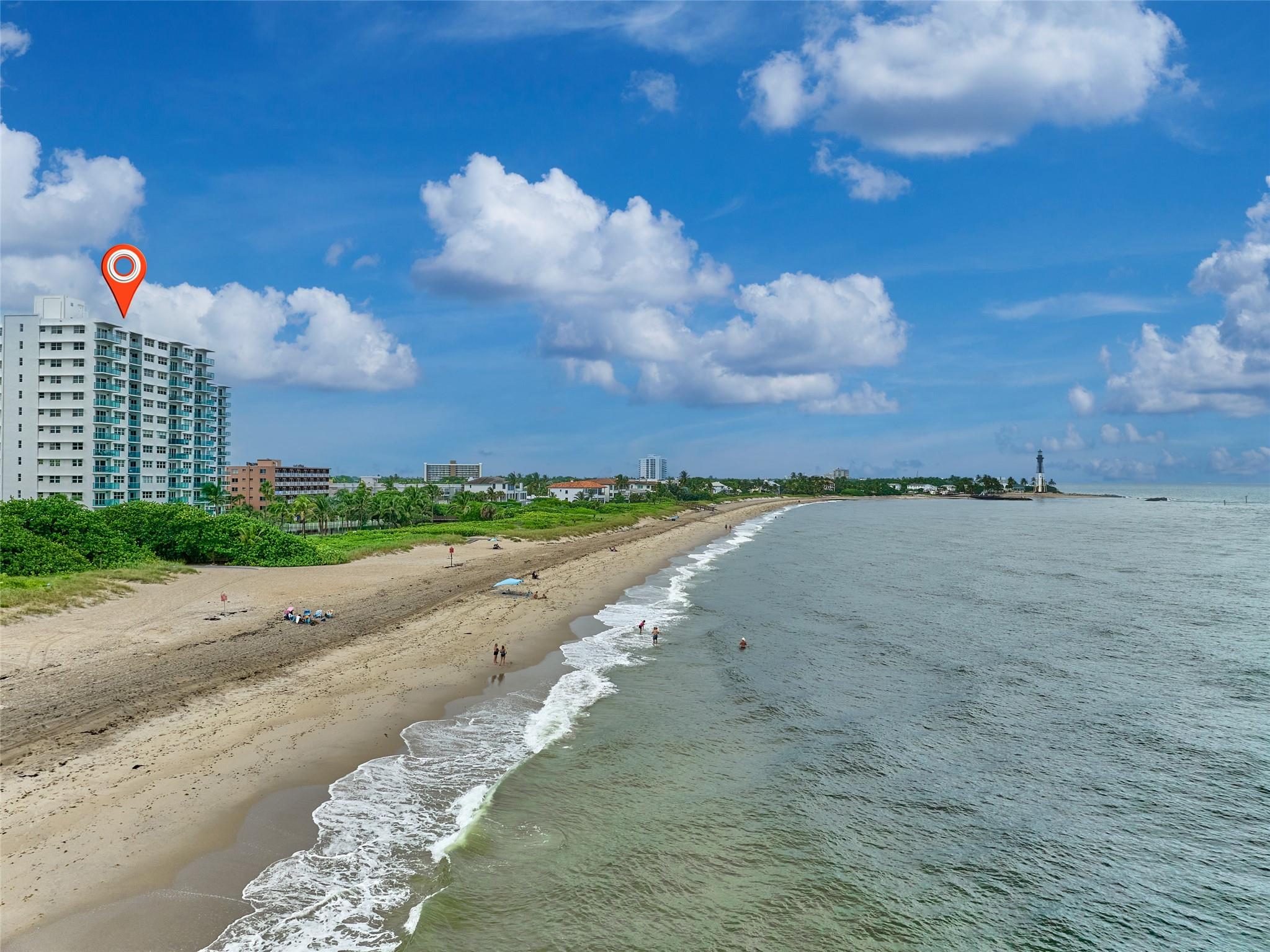 Beautiful SE corner 2BR/2BA oceanfront condo with panoramic views of the ocean and historic Hillsboro Lighthouse. This bright, airy unit features an open kitchen, spacious bedrooms, and updated with luxury vinyl plank flooring. Enjoy the private glass balcony and ample natural light from large windows. The building offers a new fitness center, bike room, and laundry facilities. Amenities include private beach access, heated pool, clubhouse, putting green, shuffleboard, and bocce ball. Deeded covered parking and plenty of guest parking. Low maintenance fees and all assessments have been paid by seller. Perfect for full-time living or a beach getaway!