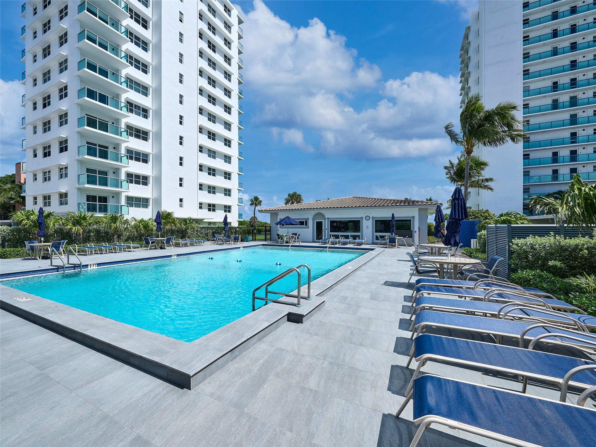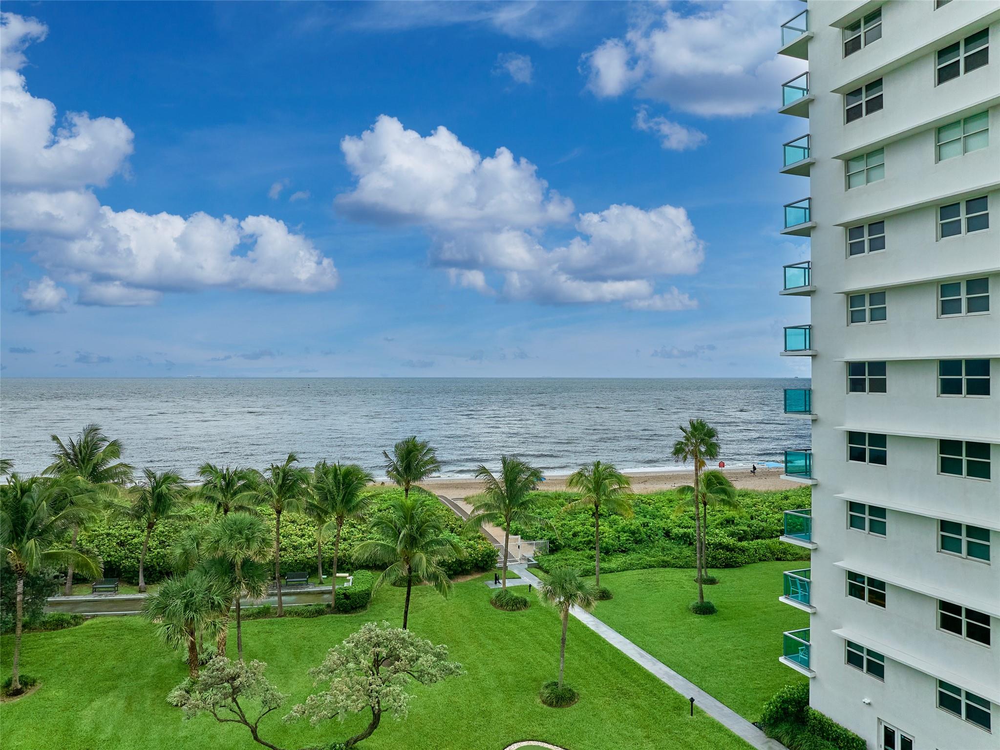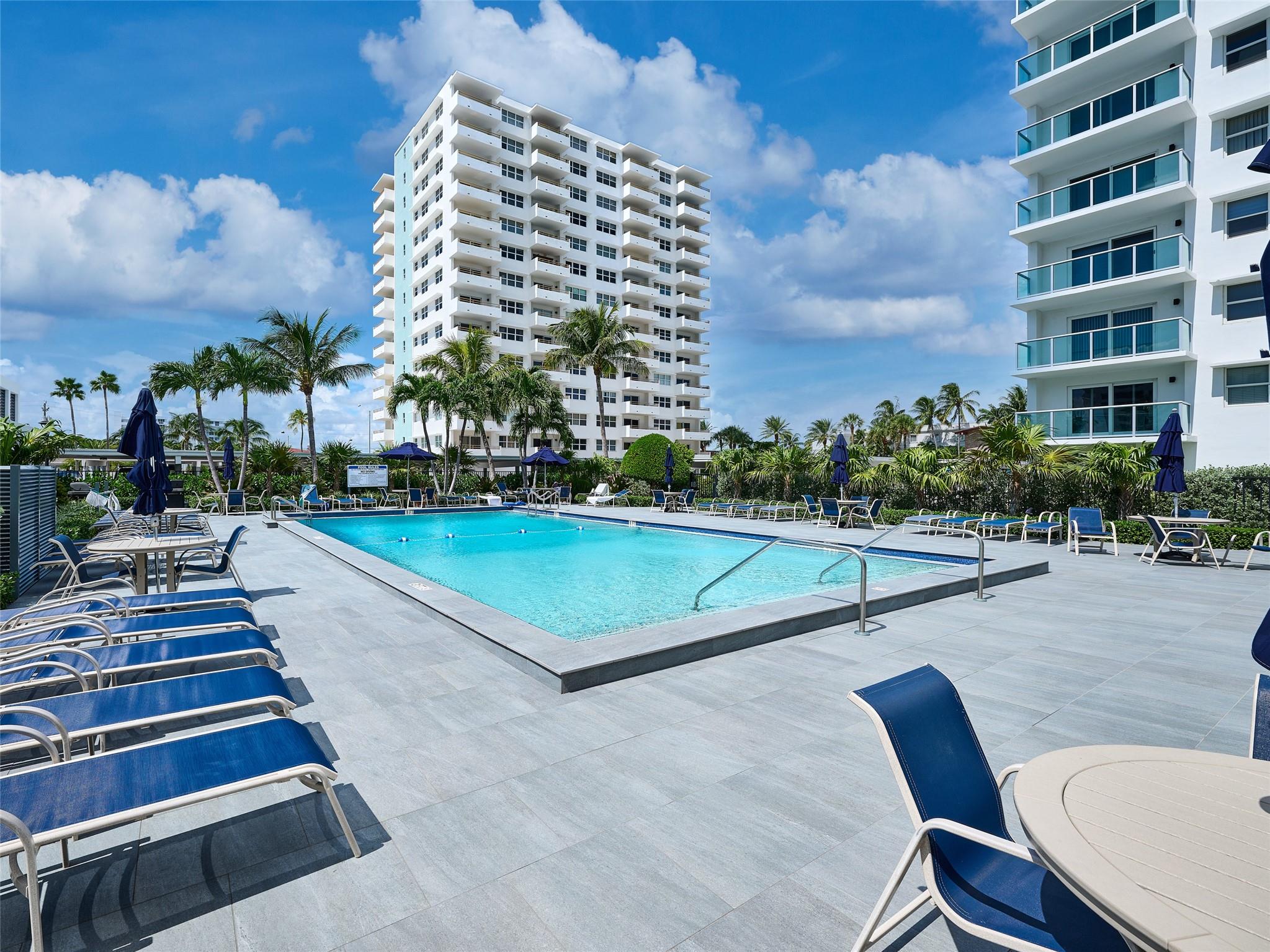 Beautiful SE corner 2BR/2BA oceanfront condo with panoramic views of the ocean and historic Hillsboro Lighthouse. This bright, airy unit features an open kitchen, spacious bedrooms, and updated with luxury vinyl plank flooring. Enjoy the private glass balcony and ample natural light from large windows. The building offers a new fitness center, bike room, and laundry facilities. Amenities include private beach access, heated pool, clubhouse, putting green, shuffleboard, and bocce ball. Deeded covered parking and plenty of guest parking. Low maintenance fees and all assessments have been paid by seller. Perfect for full-time living or a beach getaway!