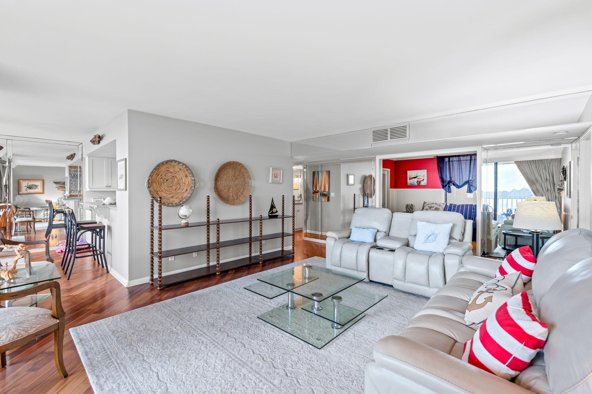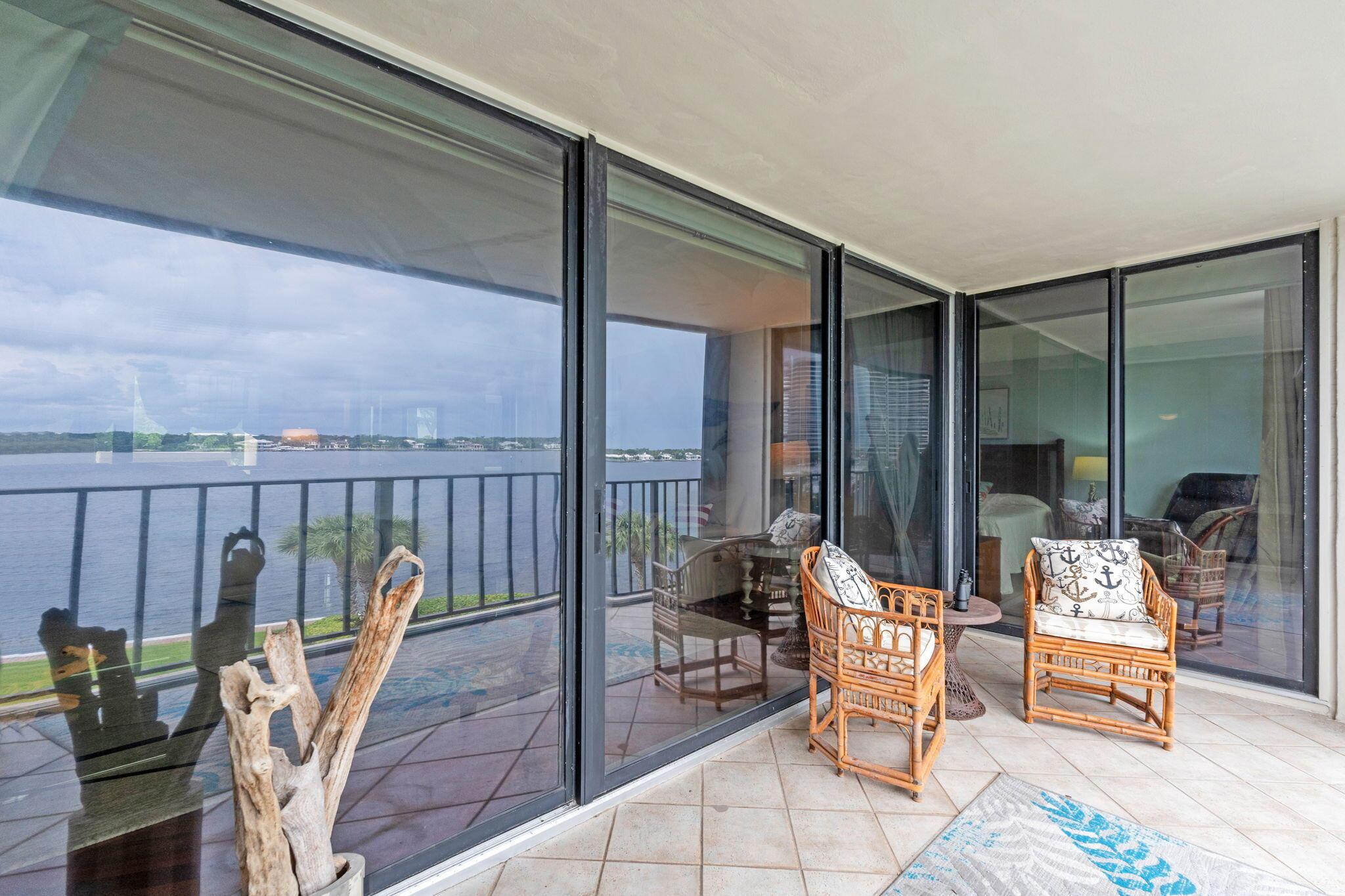 NO SPECIAL OR UPCOMING ASSESSMENTS!!! $10,000 SELLERS CREDIT CLOSE BEFORE JANUARY 1, 2026. Come see this beautiful, fully renovated and fully furnished pet friendly, 2 bedroom, 2 bathroom condo featuring panoramic waterfront views! This condominium features stainless steel appliances, updated bathrooms, wood flooring and an in unit washer and dryer. Feel the comfort of hurricane protection taking care of the floor to cieling windows and covered balcony. This property boasts a resort style pool, tennis courts, fitness center, and a waterfront 2 mile path. Water, internet and cable are all included with your monthly condo fees. Old Port Cove is known for its resort style living including a full service marina, restuarant, 24 hour manned guard gate and so much more. 5 minutes from WORLD