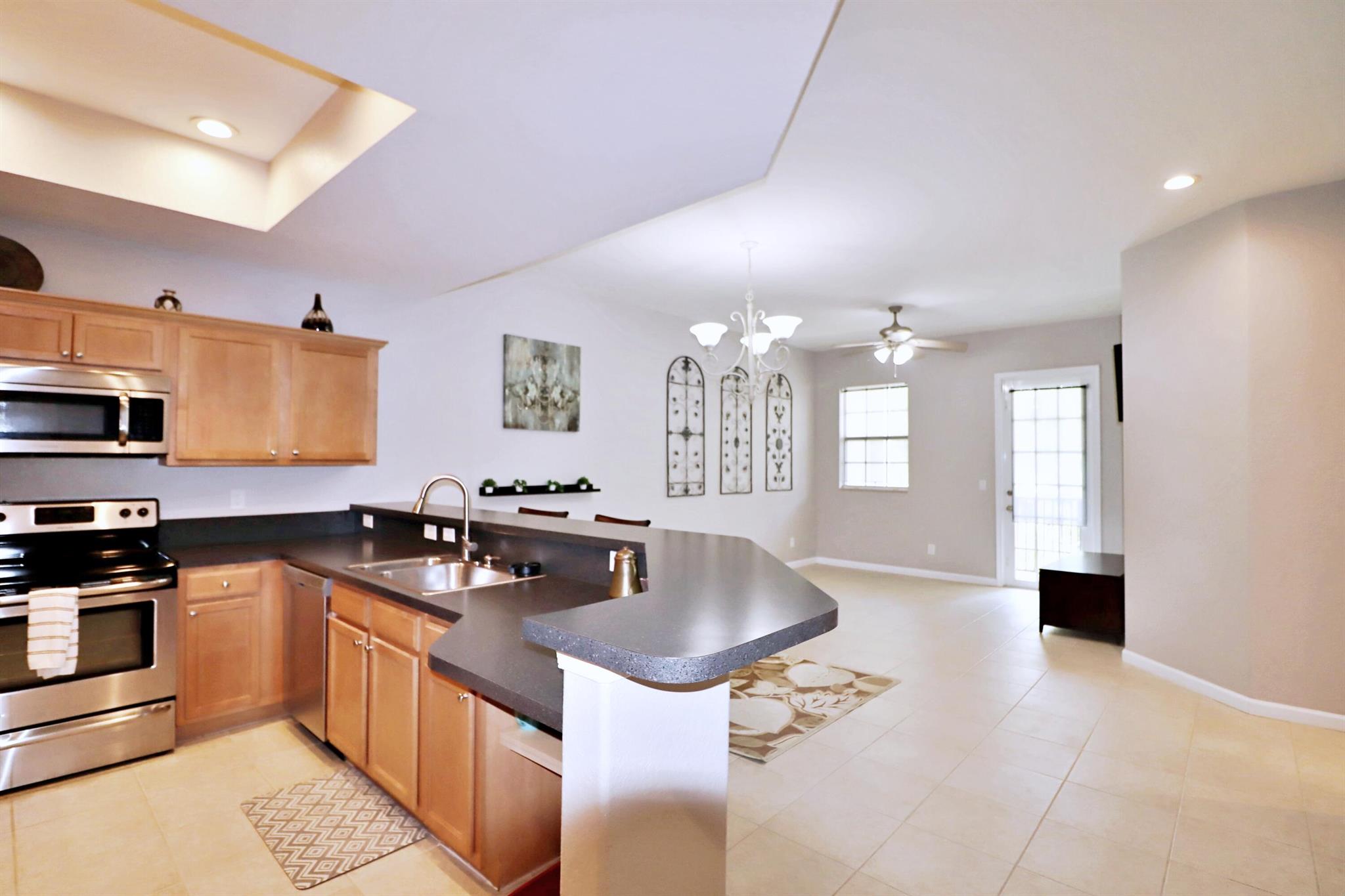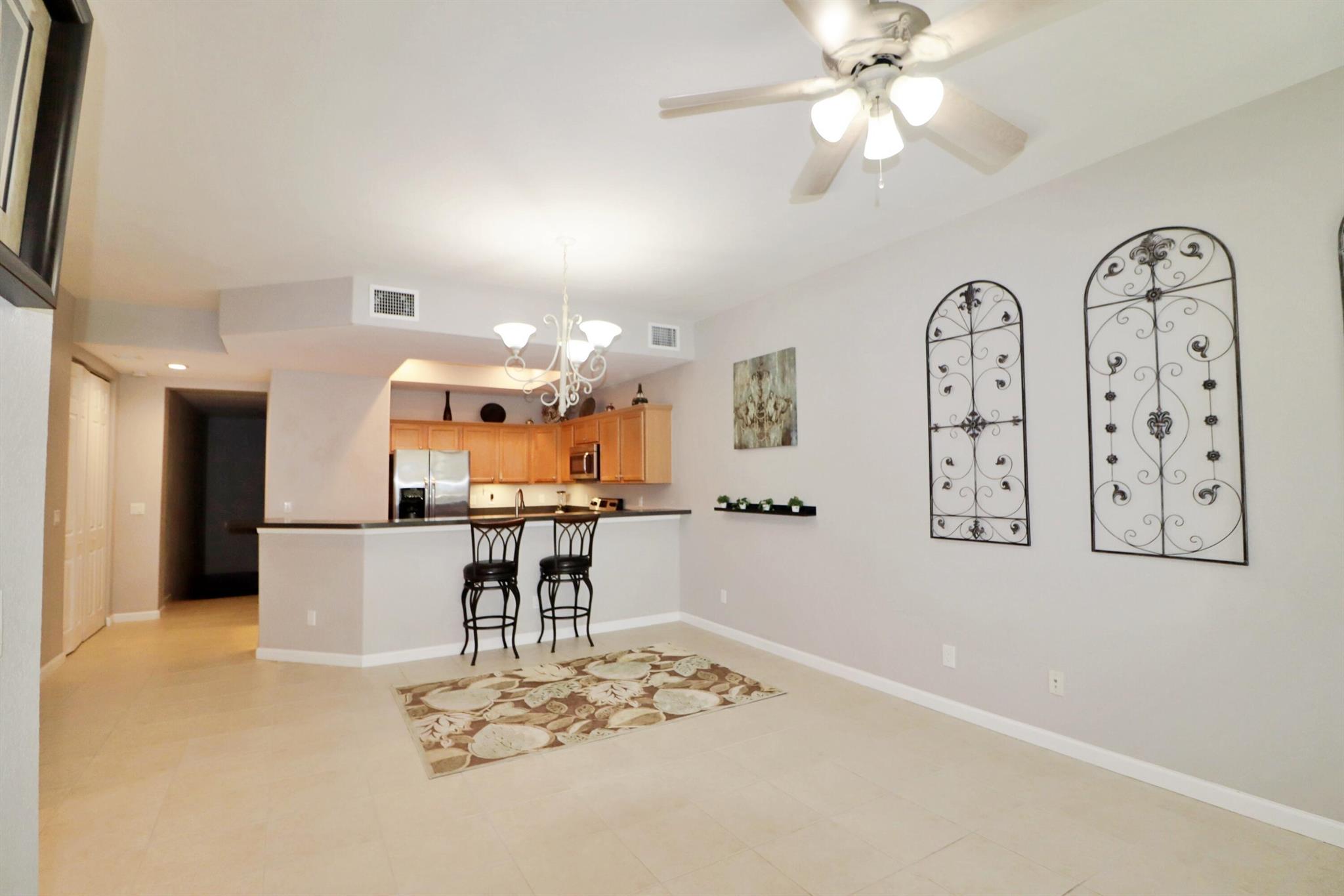 Discover this tranquil, chic, and sunny 2nd-floor condo in the coveted Promenade at Tradition with pool and tropical green space views. Nestled in the heart of Tradition Square, just 2 blocks from vibrant restaurants, the green market, Publix, schools, parks, and rec. Open floor plan with ample storage, 2 balconies, and spacious bedrooms. The elegant primary suite has 2 walk-in closets, linen closet, separate tub, dual sinks and shower. Enjoy luxury features such as high-end LVP flooring, 18'' tile, 8 ft doors, LED lighting, S/S appliances, 9 ft ceilings in living areas, fresh paint (2023), 2017 roof and oversized 1-car garage (27x12) with high ceilings. In immaculate condition, this condo offers the charming downtown lifestyle you've dreamed of, with major stores just blocks away.