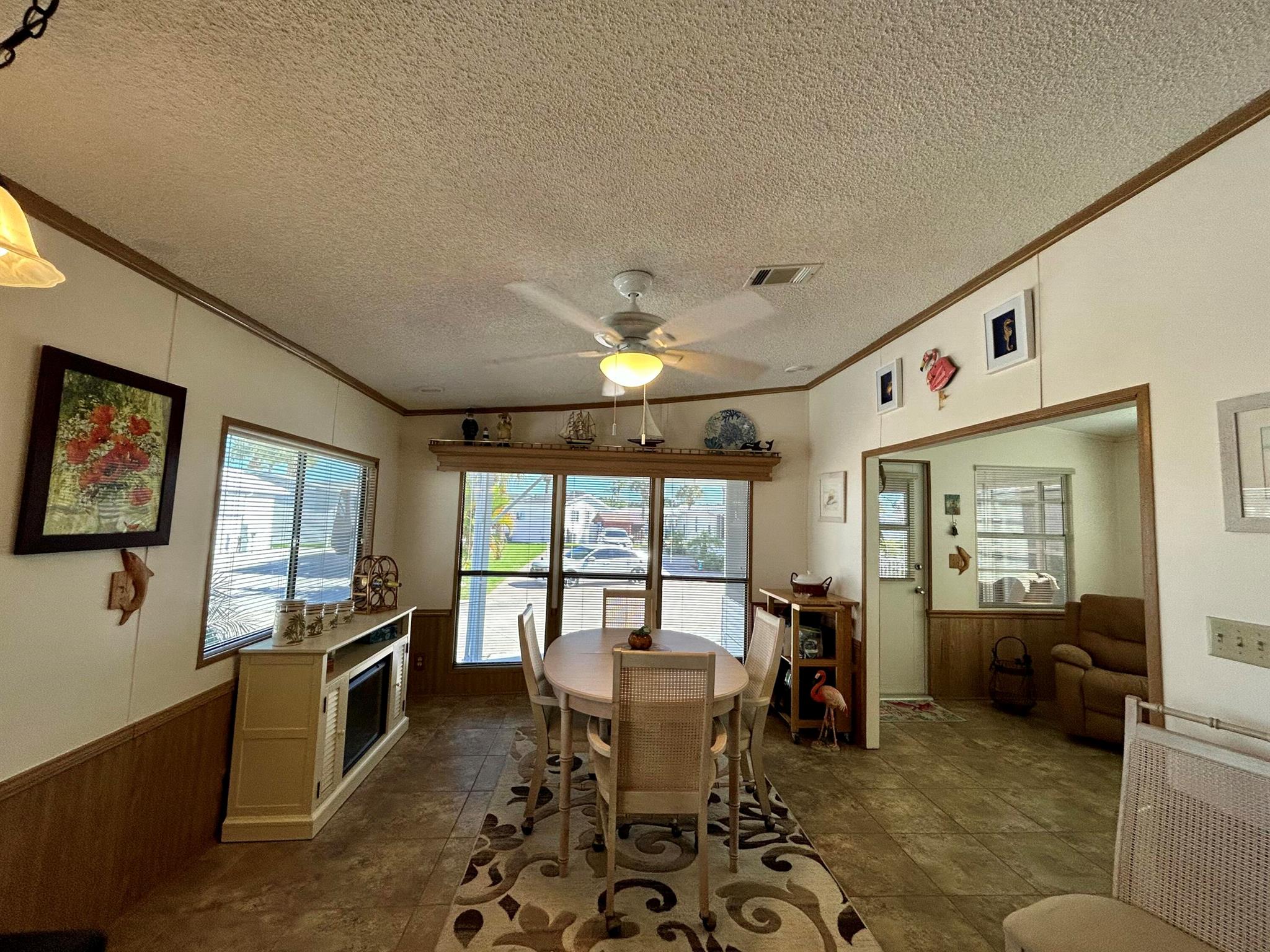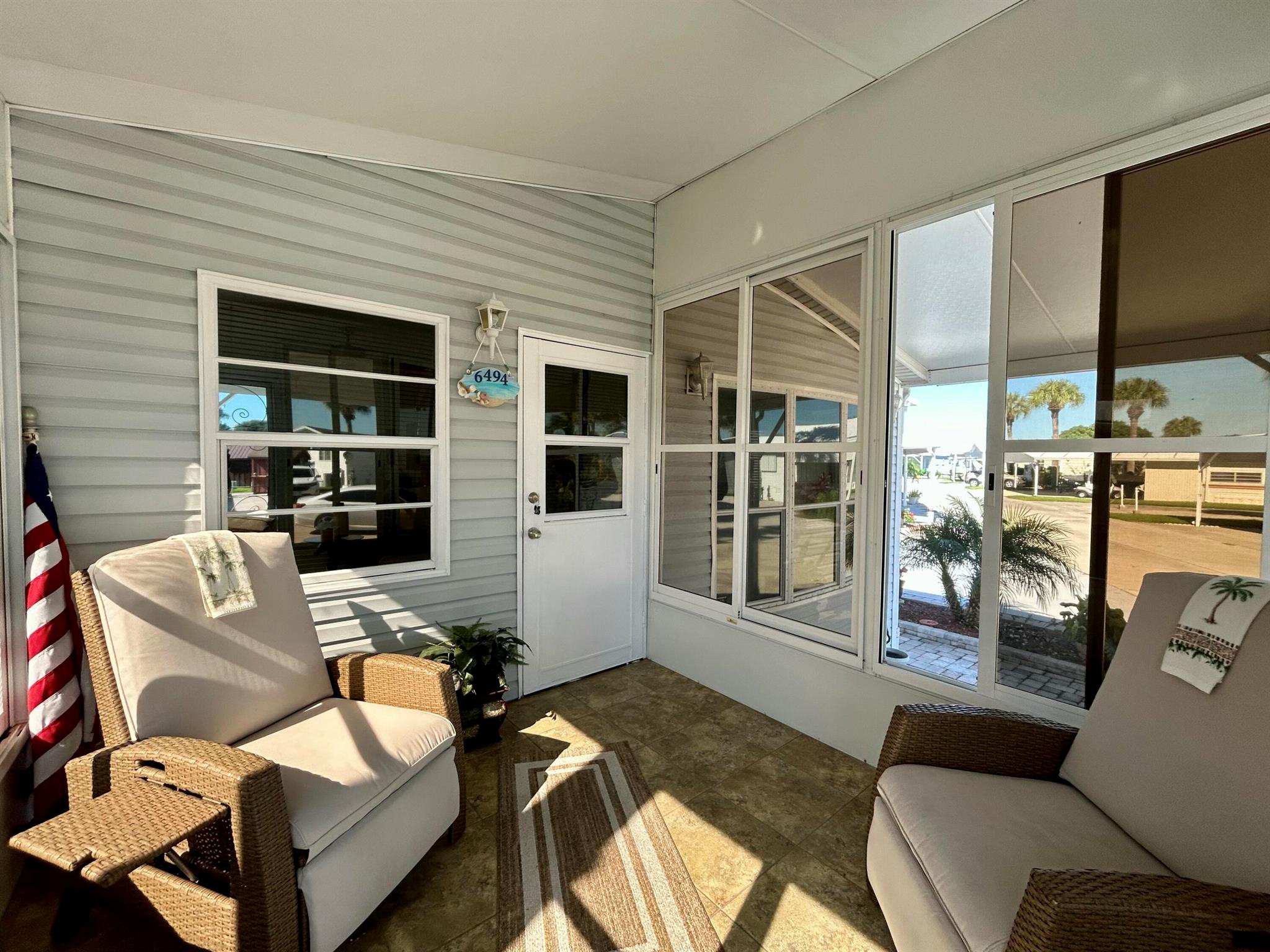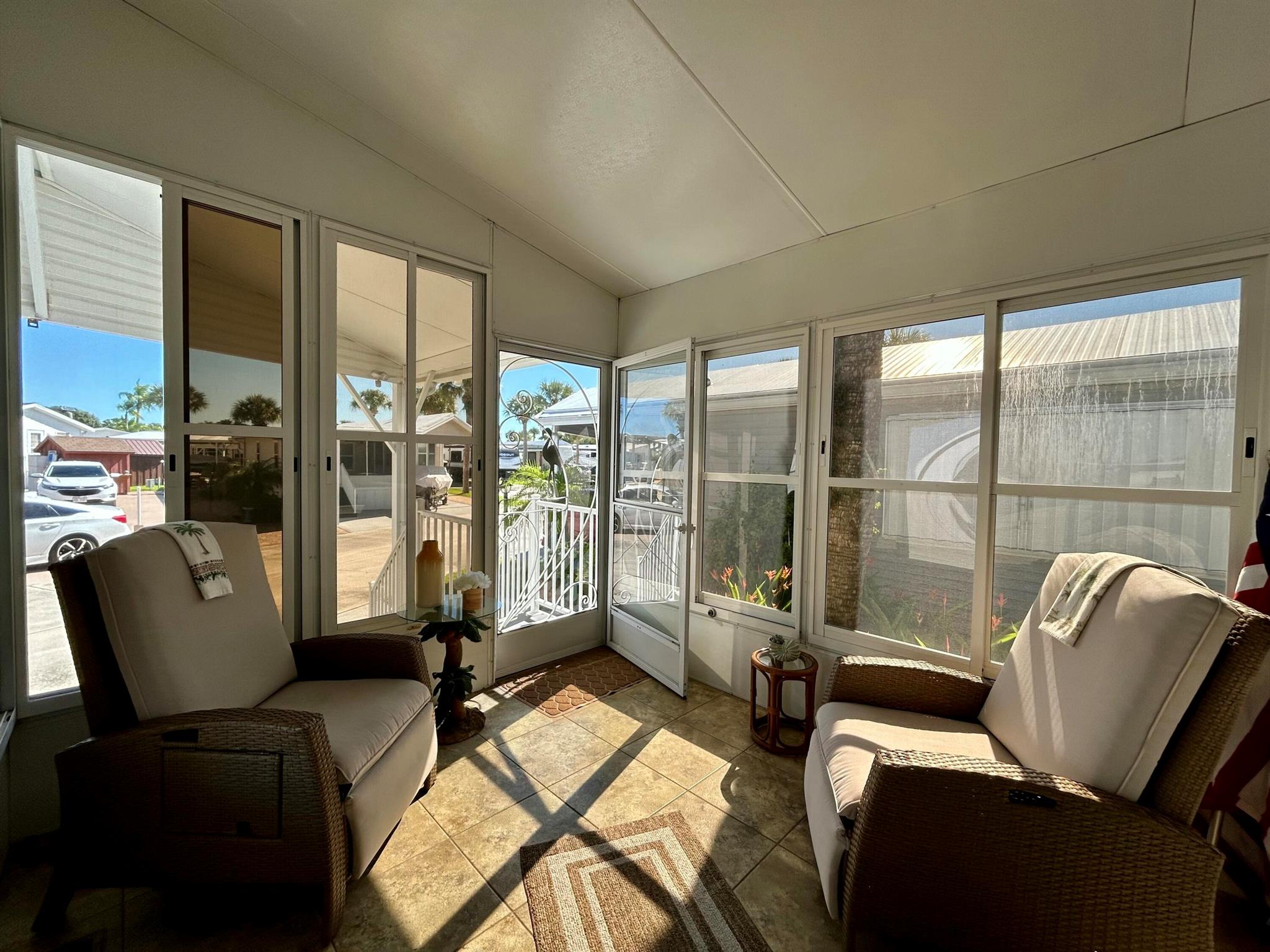 Move-In Ready & Fully Furnished 1 Bedroom, 2 Bath Home. Welcome to this vibrant and friendly 55+ community of Ancient Oaks, where comfort and convenience come together. This beautifully maintained home features a non-rusting interlocking metal roof with plenty of insulation, keeping it cool and energy-efficient through the summer months. Inside, you'll find matching tile flooring throughout for easy maintenance and a clean, cohesive look. Relax in the spacious Florida room, the perfect spot to enjoy your morning coffee while watching the sunrise. Just a short stroll away, you'll find the clubhouse and community amenities that make Ancient Oaks such a desirable place to live.