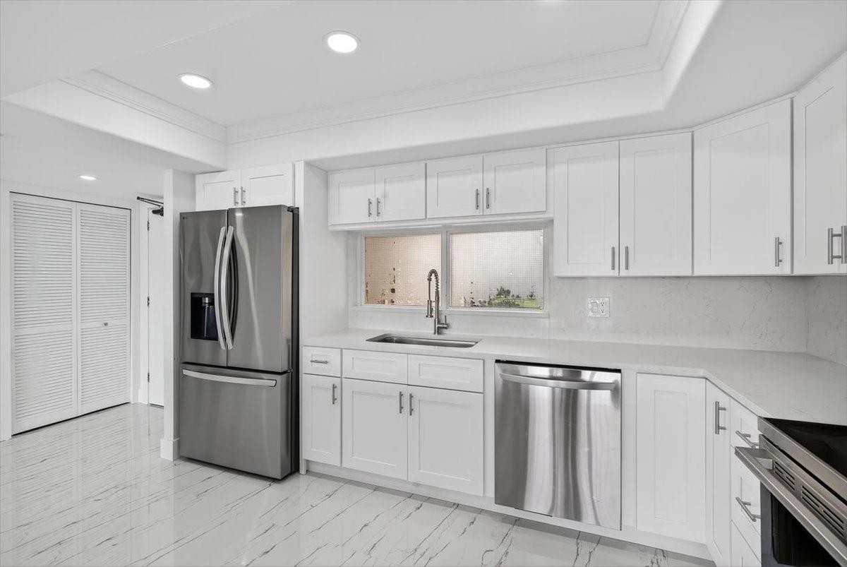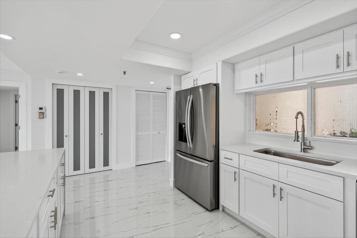 Experience modern living in this stunning 2-bedroom, 2-bath condo perched on the 9th floor with breathtaking east-facing lake views. Located in the heart of West Palm Beach, Florida, this fully renovated residence combines comfort, style, and convenience. Step inside to find an open-concept layout with elegant finishes throughout. The sleek kitchen features updated cabinets, quartz countertops, and stainless steel appliances. Impact windows and doors provide peace of mind and fill the unit with natural light, creating a bright and airy atmosphere. Enjoy your morning coffee on the private balcony overlooking the serene lake. The primary suite offers a spacious retreat with plenty of room for relaxation or entertaining.