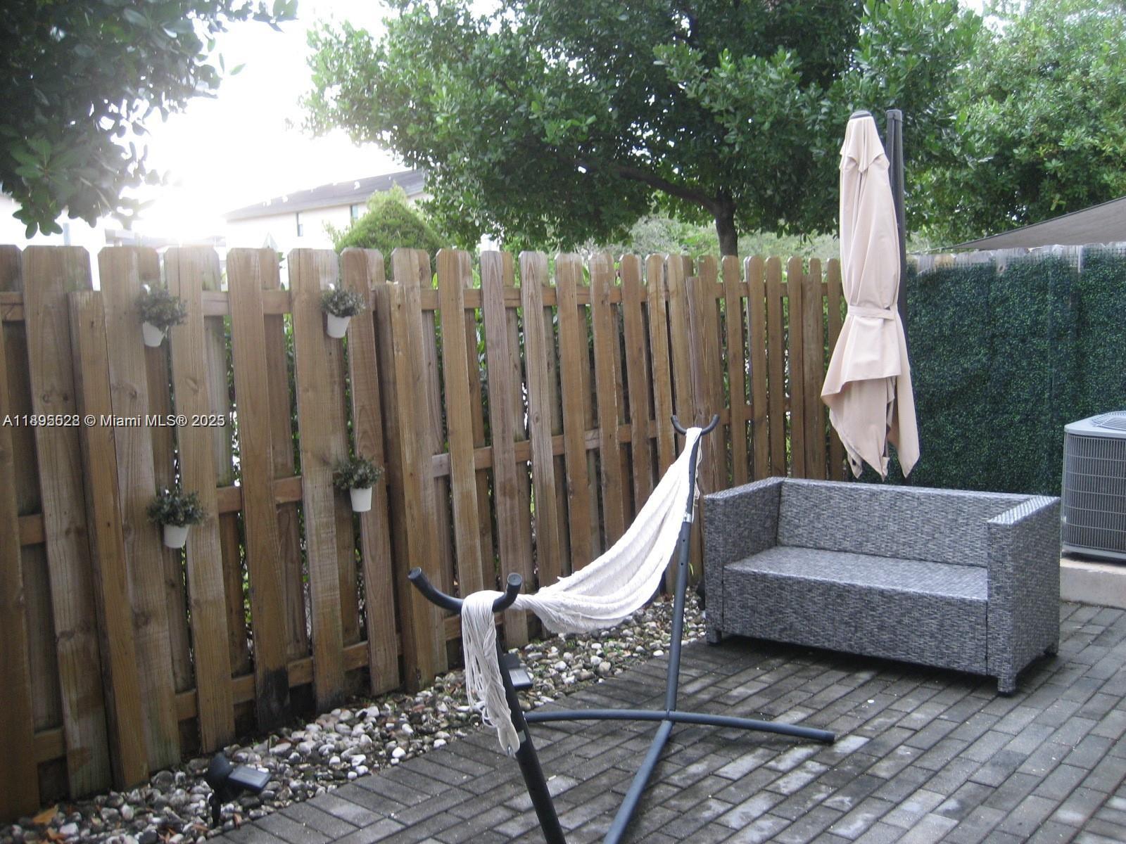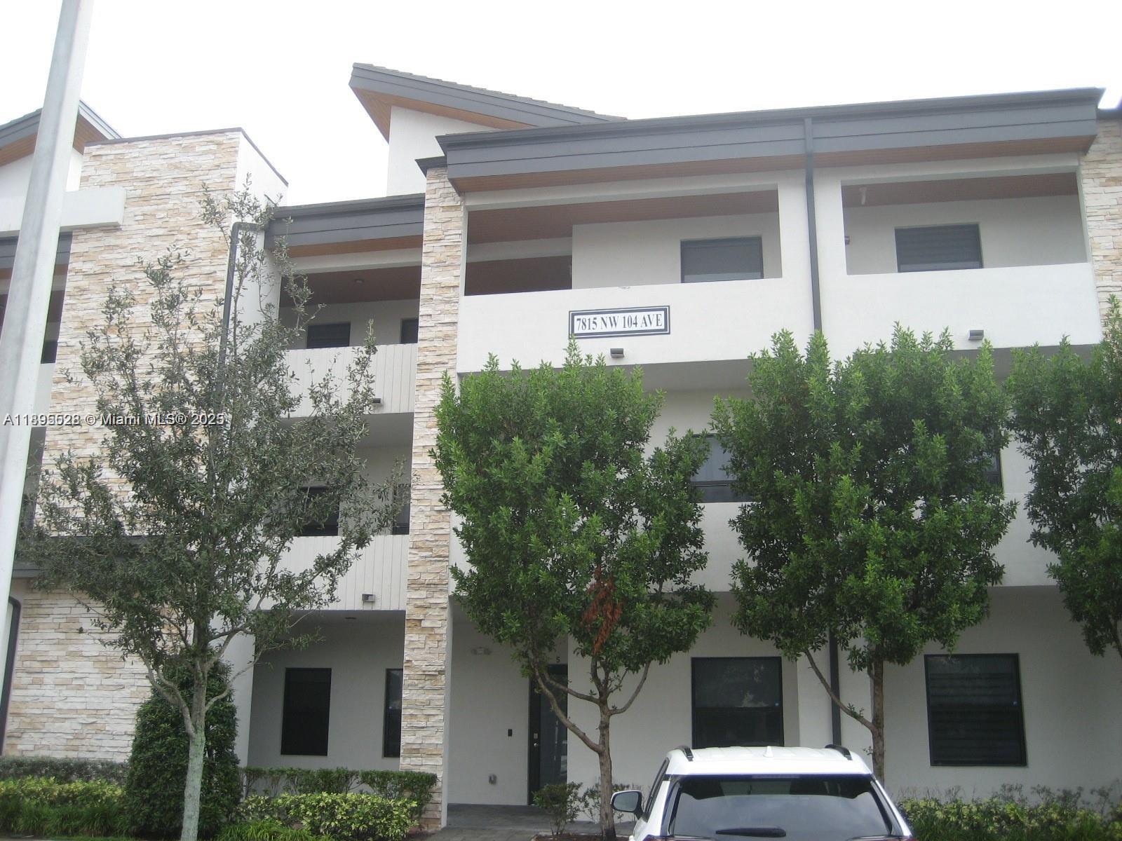 Apex in Doral Park Central, a resort style living. Beautiful 2 bedrooms, 2 full bathrooms (one on-suite) condo on first floor with fenced-in paved patio. Washer and dryer in the unit. Elegant kitchen featuring stainless steel appliances with granite countertops. Tiles, ceramic and laminate flooring throughout unit. Open design that combines dining, kitchen and family room. Comes with full access to the resort style clubhouse equipped with swimming pool, fitness center, basketball court, tennis courts, yoga room, party room, BBQ area, kids play ground, water park and much more. Conveniently located in Doral, close to Schools, Shops, Banks, walking distance to Publix and Walgreens. Near to Turnpike, Miami International Airport, Dolphin mall. Unit Rented until Feb 14th 2026 $2,800 per month.