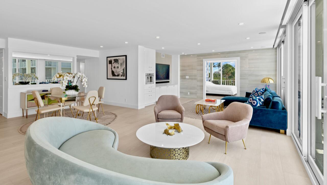 BRAND NEW MODERN RENOVATION! Stunning 3-Bed/3-Bath w/ Direct Intracoastal water views from all living areas and primary suite. Featuring a beautiful open kitchen with Thermador appliances, large wine fridge and white custom cabinets; spacious walk-in closets; motorized blackouts & privacy shades; white trimmed impact glass; and an expansive 40-ft wraparound terrace perfect for al fresco dining. The 3rd bedroom has a built-in queen murphy bed. Top of the line sonos sound system throughout. Gorgeous renovated poolside cabana available separately. The BRAND NEW lobby in the East building has 15 residences(only 3 apts per floor)with its own doorman and mail room. Brand New Renovated Cove Amenities! Deeded beach access with lounge chairs & umbrella service exclusively for residents at The Cove