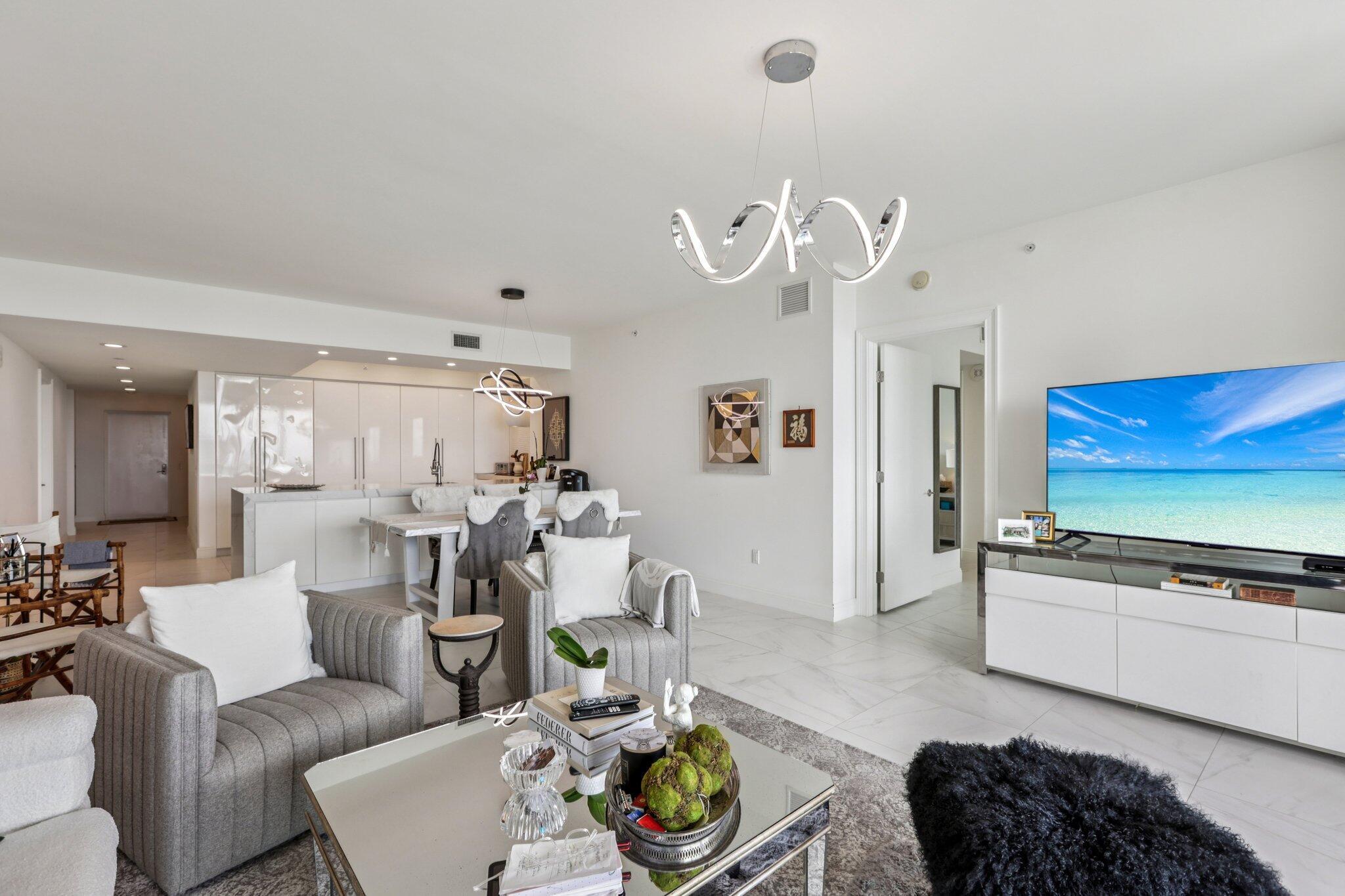 WELCOME TO COASTAL LIVING! This one-of-kind 20th floor retreat situated directly on the widest part of the pristine blue intracoastal, Atlantic Ocean, Singer Island, boating harbor and nighttime city lights. Unique 2 bd. 3 ba. home plus large den/3rd bedroom has endless upgrades, meticulously designed contemporary white kitchen with newer upgraded appliances: paneled Thermador refrigerator and dishwasher, induction cooktop, Wolf microwave, Bosch oven, extra storage, long counter height quartz island, perfect for entertaining, large master suite with 2 walk-in closets, walk out of your 9ft impact floor to ceiling sliders to enjoy morning sunrises, sea life, and boaters from your private balcony, remodeled Inside laundry room for your convenience,