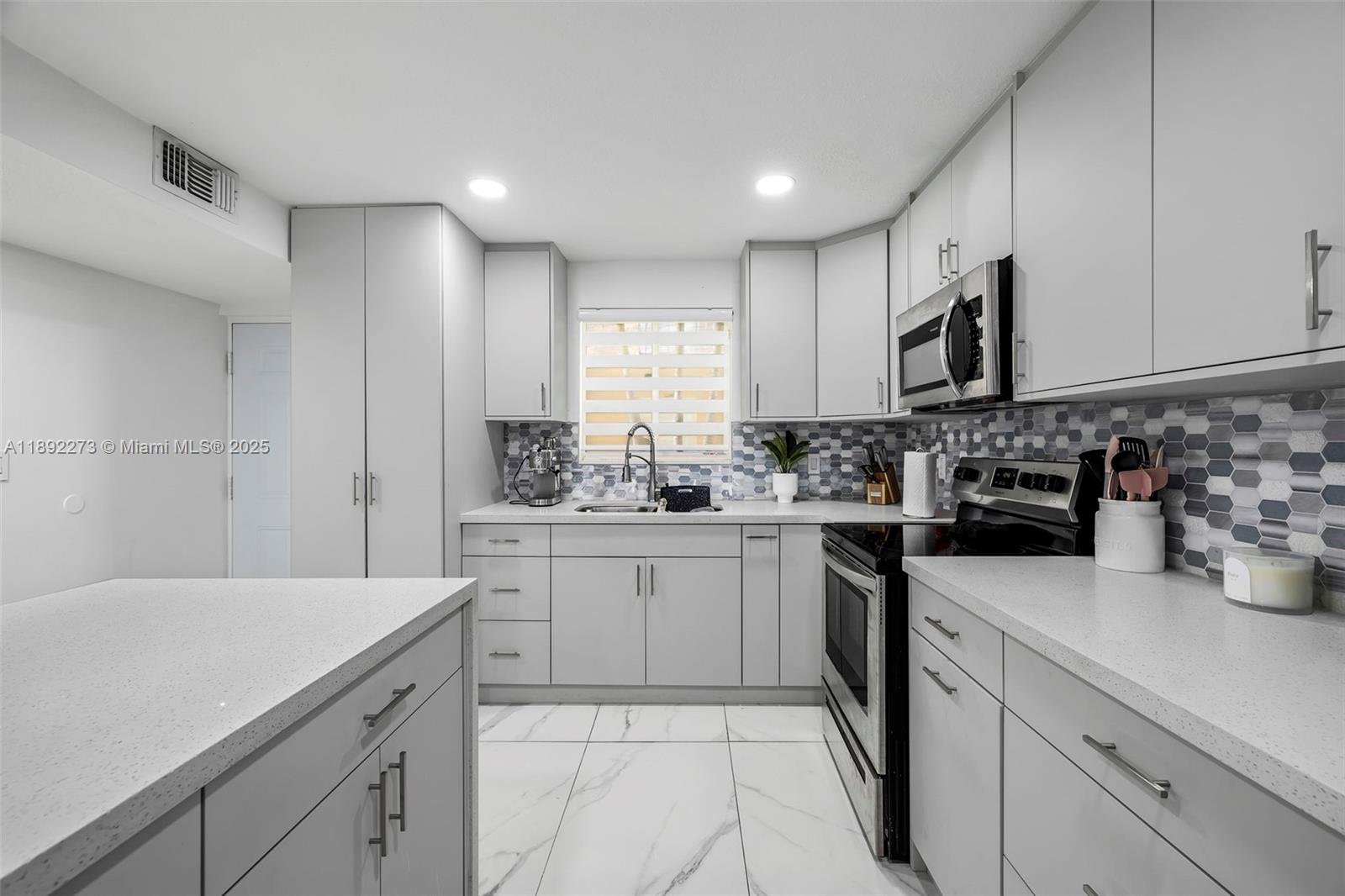 Step into this beautifully maintained 2-bedroom, 2-bathroom condo offering the perfect blend of comfort, modern design, and convenience in the heart of Hialeah. Featuring an open-concept layout with abundant natural light, a modern kitchen with stainless steel appliances, sleek cabinetry, and quartz countertops, this home was designed for both style and function. Spacious bedrooms include renovated closets and renovated bathrooms. Enjoy your morning coffee on the patio or unwind in the inviting living area. The community offers assigned parking, secure entry, and easy access to major highways, shopping, and dining. Perfect for first-time buyers or investors seeking a turnkey opportunity!