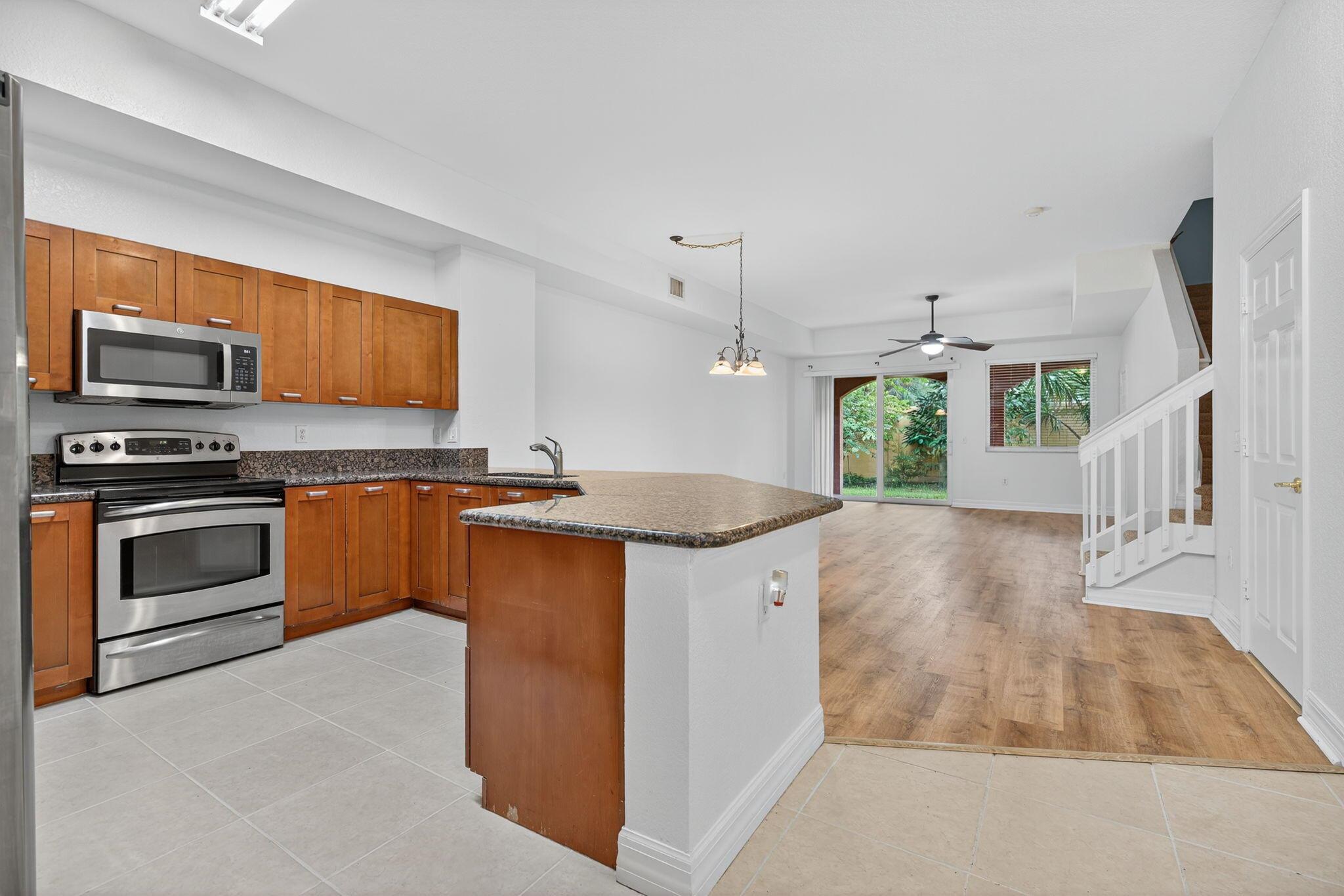 Welcome to this beautiful renovated two-story townhome featuring 3 bedrooms, 2.5 bathrooms, and a 1-car garage. Enjoy modern laminate flooring on the main floor, impact windows for peace of mind, and brand-new washer and dryer. The home offers bright and open living spaces, a functional floor plan, and contemporary updates ideal for comfortable living. Located in a well-maintained community that allows up to two pets and two vehicles per family. Move-in ready and conveniently situated near shopping, dinning, and major routes - this is the perfect place to call home!