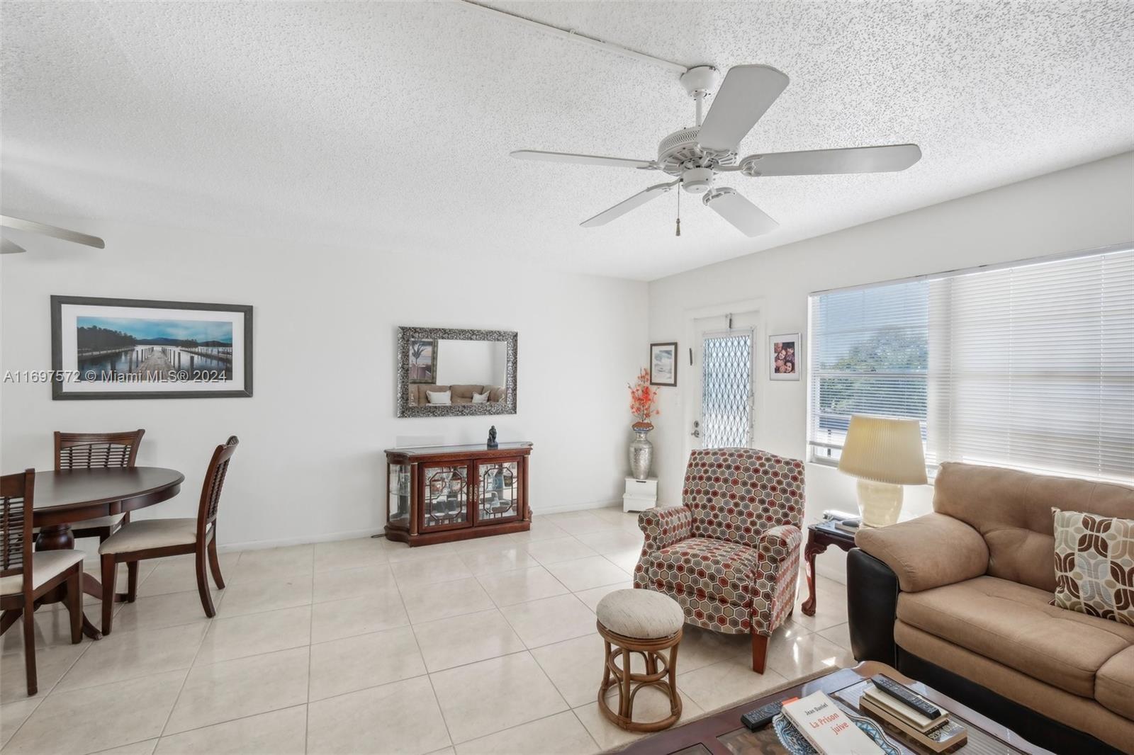 Stunning water views from this 1 bedroom, 1.5 bathroom condo nested on the 3rd floor. Enjoy the comfort of a fully furnished unit in a meticulously maintained condition. Tile flooring throughout, modern toilets and vanities, a few years old water heater, and a brand new 2024 A/C unit, ensuring a pleasant living experience. The free laundry room is adjacent to the unit, for easy access. Perfect sun exposure from the enclosed patio with windows for. Bldg. has reserves. Enjoy Century Village, an active 55+ resort-style living community that offers a variety of activities. Engage in fitness classes, social events, and recreational sports while enjoying beautiful surroundings and a vibrant lifestyle. Experience the perfect blend of relaxation and activity in this welcoming environment.