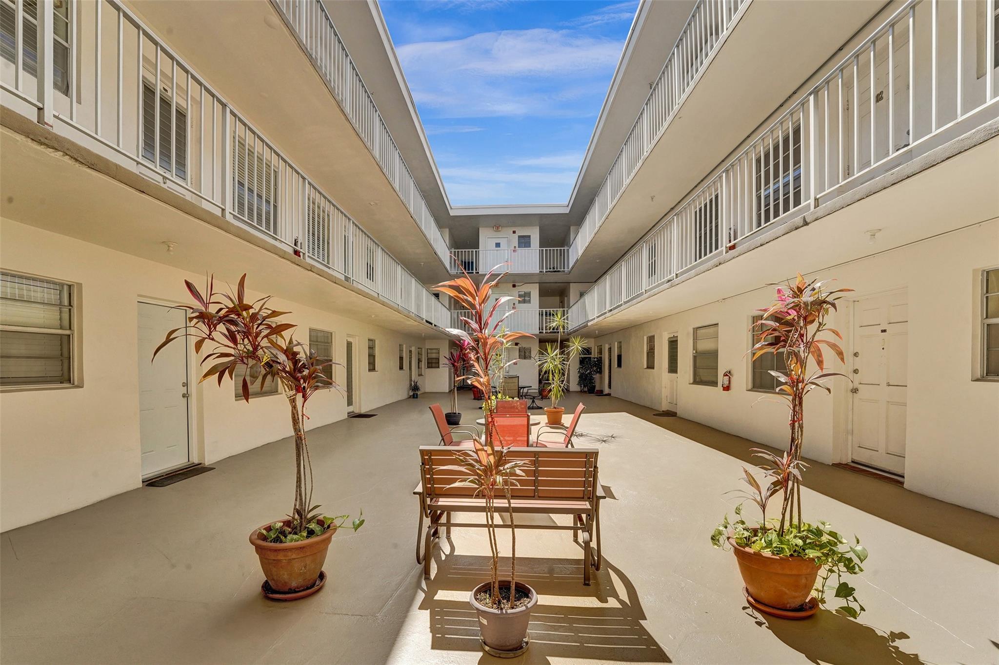 Charming 55+ community in the heart of Hollywood. This unit offers a serene living experience in a well-maintained building. The unit features a screened in balcony off the primary bedroom, newer appliances in the kitchen, an upgraded A/C and water heater. The bathrooms were partially remodeled just over a year ago. There are two large closest in the hallway for extra storage space. The building itself has been meticulously cared for, with recent upgrades within the last year. Reserves in place and no special assessments scheduled, this condo offers peace of mind for the future. The assigned parking spot in covered and close to the entrance.