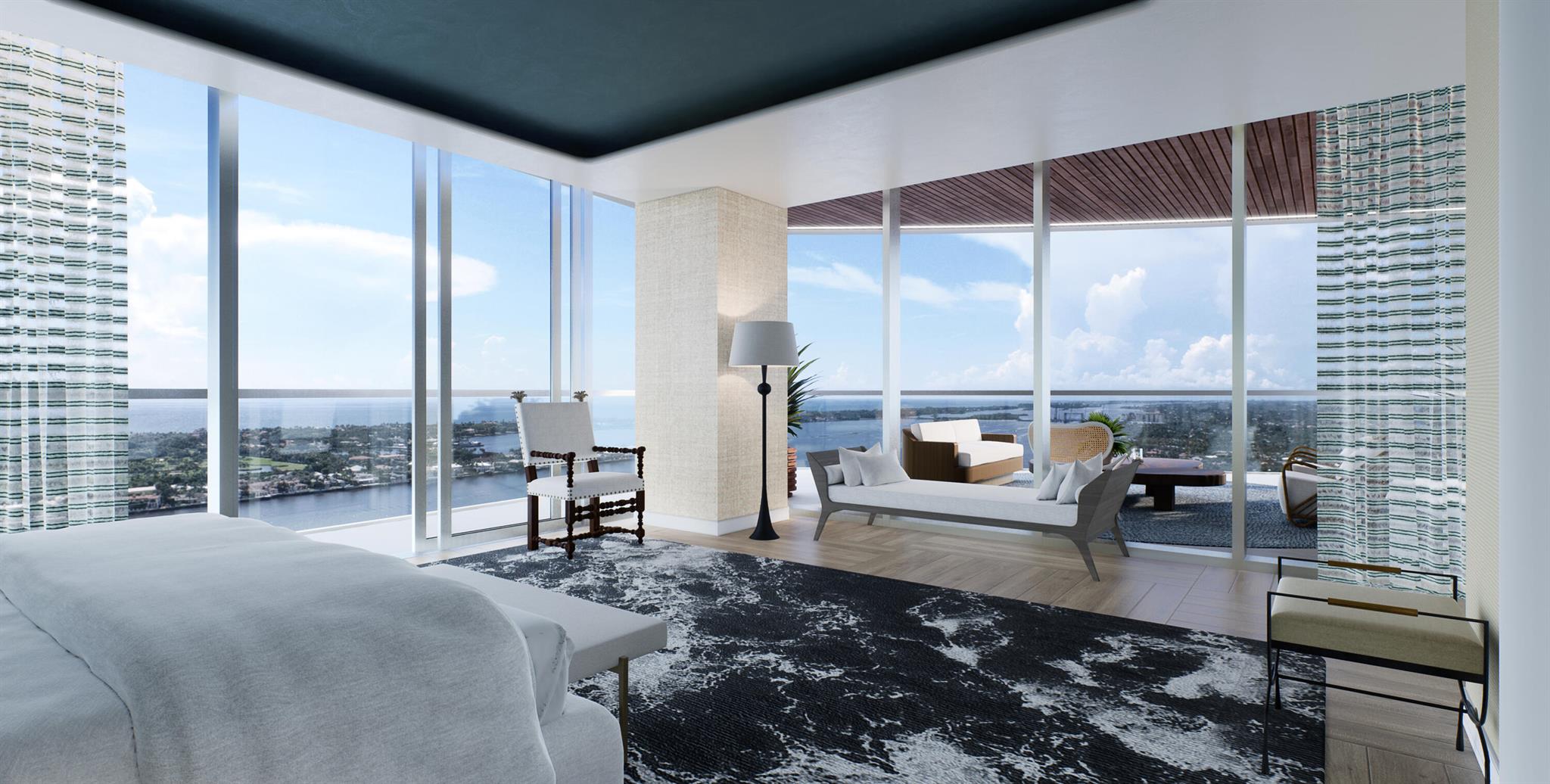 An unparalleled opportunity to own one of the last three available residences at Forte on Flagler, a newly completed luxury tower. This expansive condo offers 4,440 square feet of living space, featuring 4 bedrooms, 4 full baths, 1 half bath, and wraparound terraces with stunning eastern and southern exposures. Located on South Flagler Drive, this 24-story building provides breathtaking views of Palm Beach, including sweeping vistas of Worth Avenue, the Intracoastal Waterway, and the Atlantic Ocean. The property consists of 41 spacious, flow-through residences, each offering private elevator access, dramatic ceiling heights, floor-to-ceiling windows, and generous balconies that add 1,000 square feet of outdoor living space.