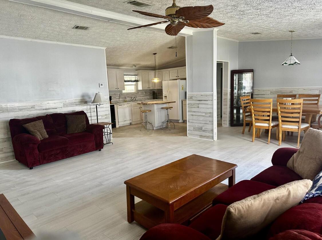 SEMINOLE COVE 3/2 DWMH on corner lot with captive lake view. Newer roof, new HVAC! Open concept, breakfast bar, spacious living and dining, walk-in closets, master features garden tub and separate step-in shower. Freshly painted interior and lvp flooring and tons of storage. Screened in patio perfect for bbqs and sunsets. Attached carport, ramp, and workshop. Home comes partially furnished and complete with storm panels. Public water and sewer. 55+ Community offering heated pool, clubhouse, fish cleaning station, and activities. Priced to sell! Seller offering a $500 Home Depot gift card at closing!!Measurements are approximate.