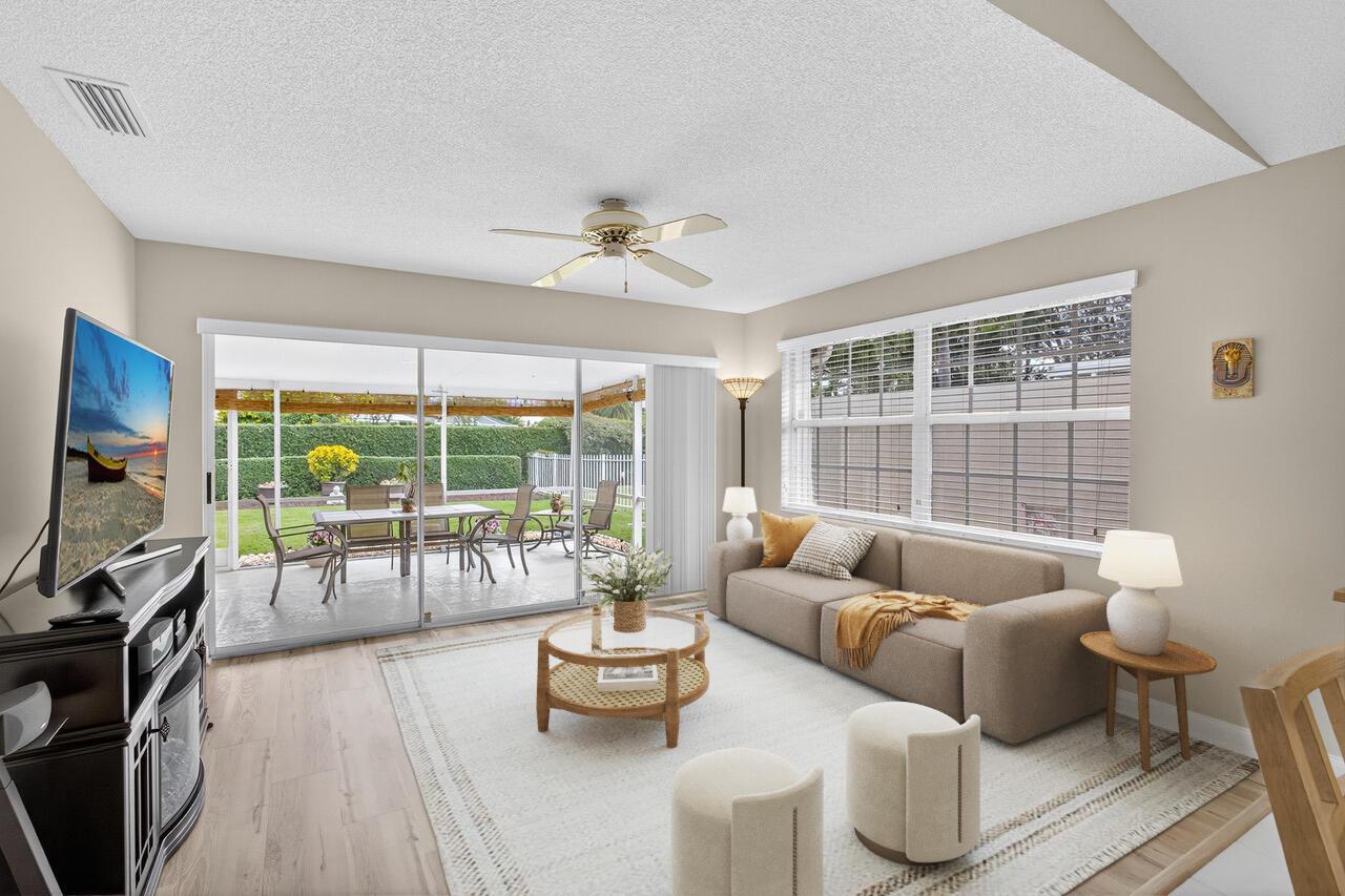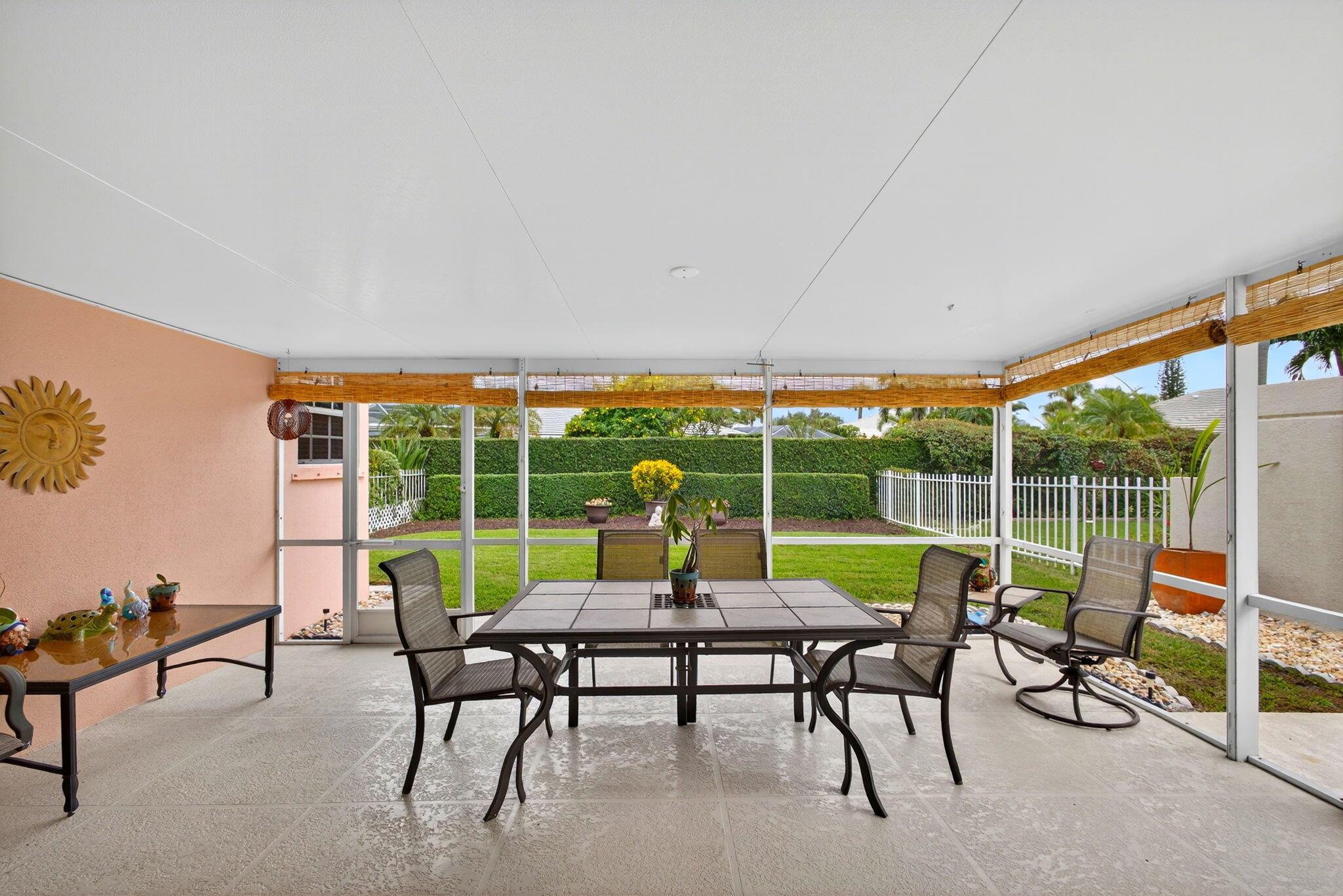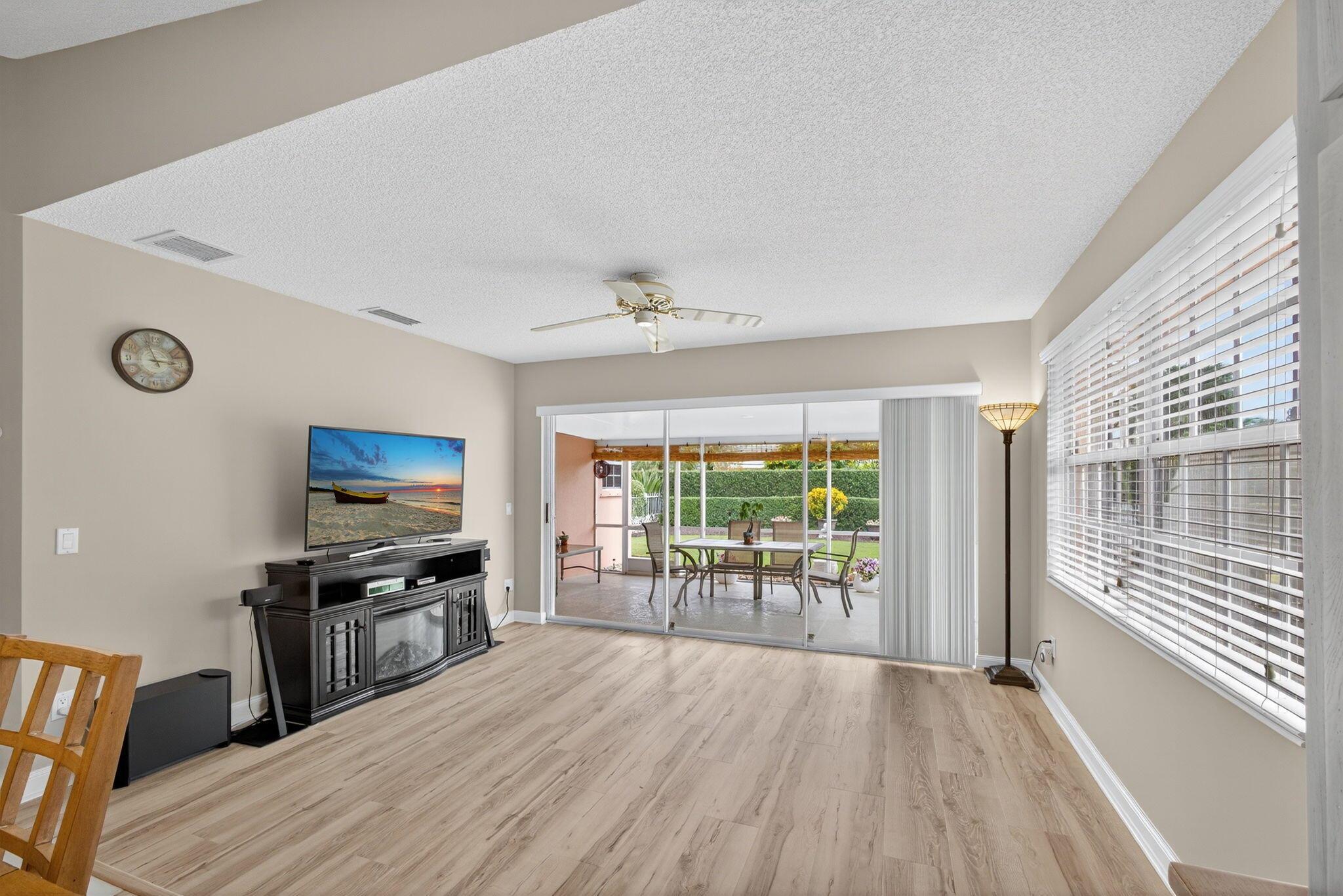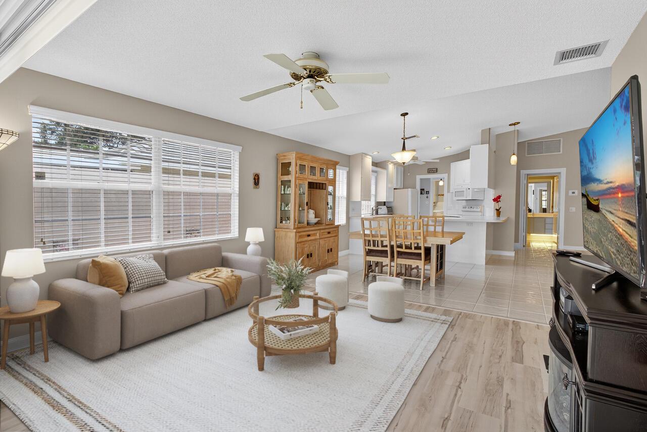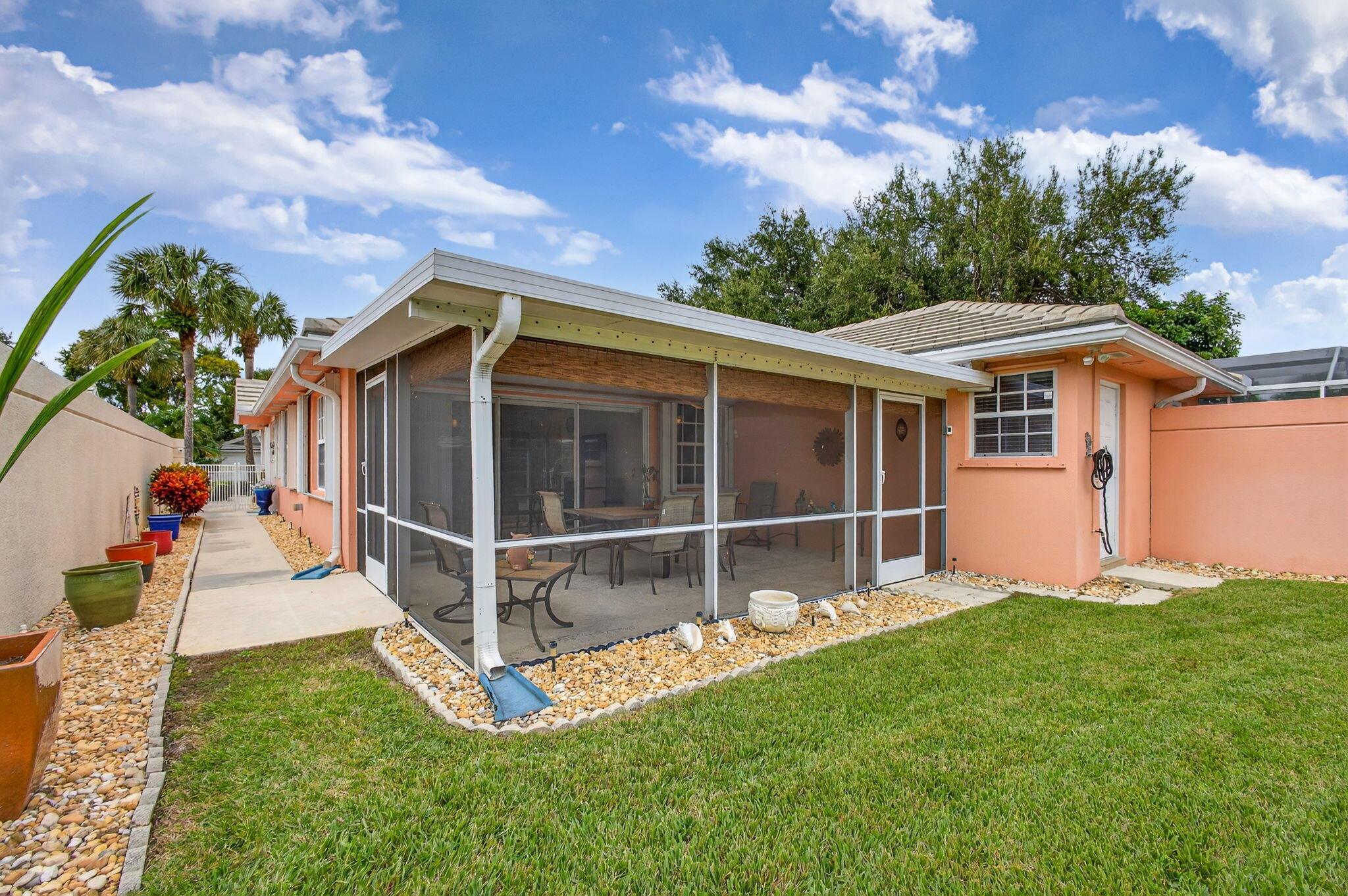 Immaculate & Spacious Extended Capri Model Home Featuring 2 Bedrooms, 2 Baths, and a 2-Car Garage. This Light-Filled Residence Offers a Desirable Split Floor Plan and an Inviting Oversized Screened-In Patio Overlooking a Beautifully Manicured Backyard Perfect for Relaxation or Entertaining. Recent Upgrades Include Complete Replacement of All Polybutylene Pipes (2024), a New AC System with Dual UV Lights (2025) Relocated to the Garage & All New Duct work (2024) & Insulation (2025) New Luxury Vinyl Flooring (2025), and a New Water Heater (2024). Located very close to Pool, Tennis and Pickleball Courts. Truly Move-In Ready with Modern Comfort and Peace of Mind! Close to Dining, Shopping, Golf, Beaches and PBI Airport.