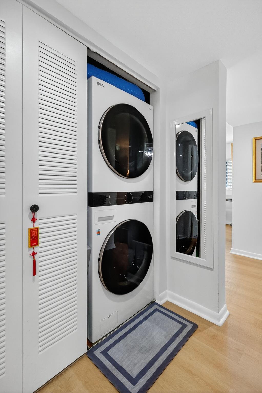 Amazing green garden views from this beautifully maintained corner Magnolia model! Bright, spacious, and tastefully updated, impact windows throughout, vinyl floors, and honeycomb electric shades. Remodeled kitchen with granite countertops, stainless-steel appliances, recessed lighting, a double sink, pantry, and reverse osmosis water system. Enclosed balcony extends the living room, offering additional interior square footage and a perfect space to relax or entertain. Master bedroom with walk-in closet and a remodeled bathroom with a walk-in shower and dual vanities. Newer A/C and water heater, parking space right across from the elevator. Located between 2 pools, close to the Pembroke Road back gate. Association fee covers cable, internet, water, insurance, roof, and all amenities.