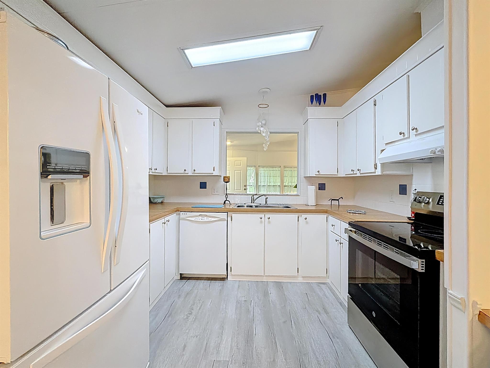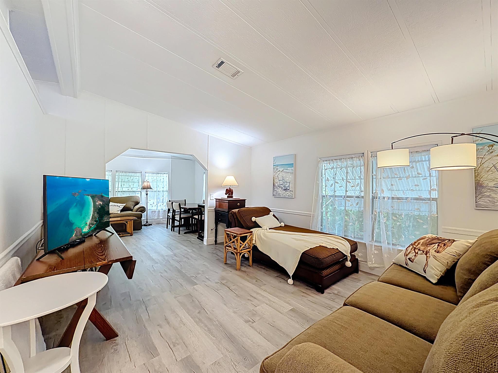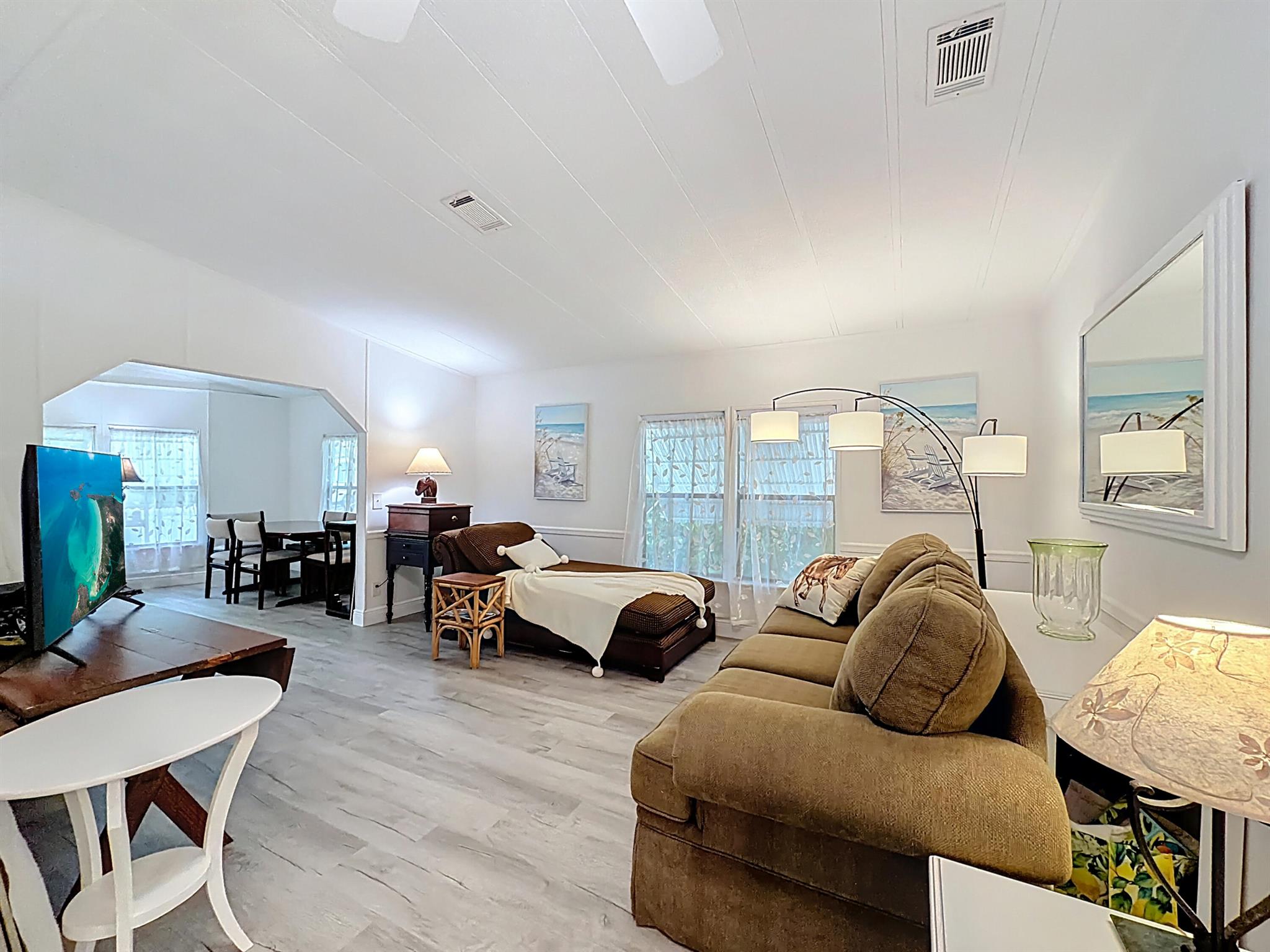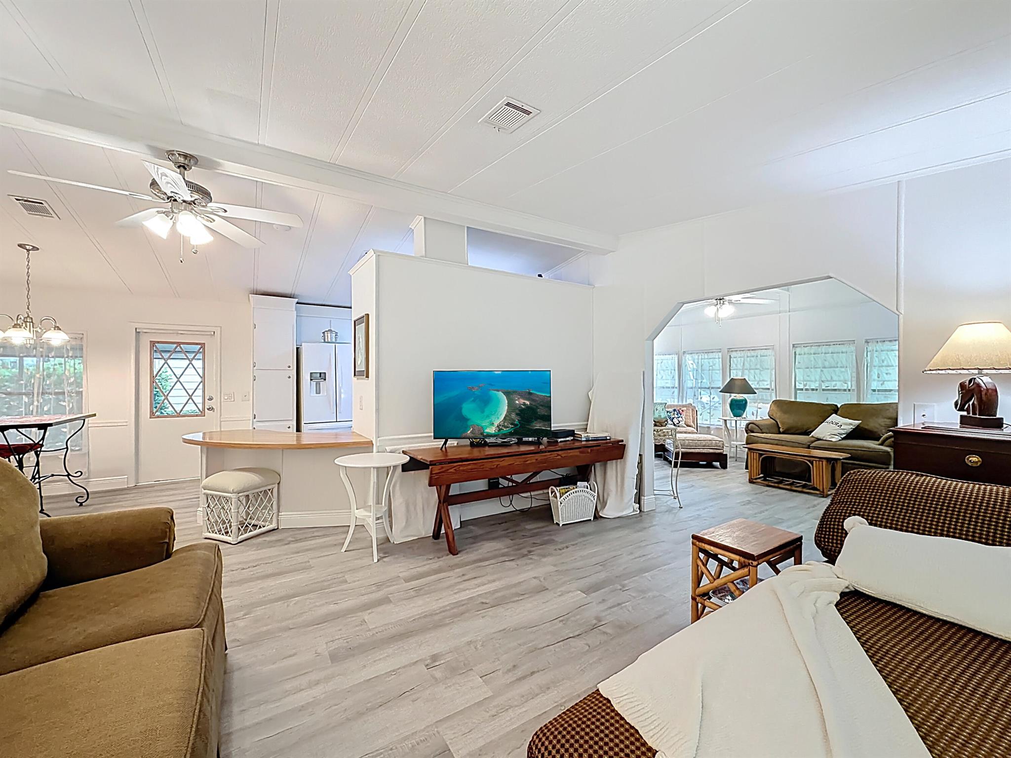 Drift back in time to the days of Old Florida on a quiet Cul-de-Sac with soft Ocean Breezes from the Pet-Friendly Jupiter Island Beach, less than 10 minutes away! This cozy cottage has Just been Upgraded with $40K in Foundational Reinforcements and New Luxury Laminate Flooring. The Cathedral Ceilings throughout are adorned with 5 Ceiling Fans, providing a Light & Airy ambience conducive to Entertaining and Leisure in the Living Room, Family Room, Breakfast Nook and Pass-Through Bar Area. Stately Clusia Hedges surround much of the Property You Own for the Ultimate in Privacy & Beautiful Greenspace Views from Indoors. Whether You are searching for a Winter Getaway or Year-Round Residence, - this Unique Gem, tucked in-between Jupiter & Port St. Lucie for Spring Training Enthusiasts.