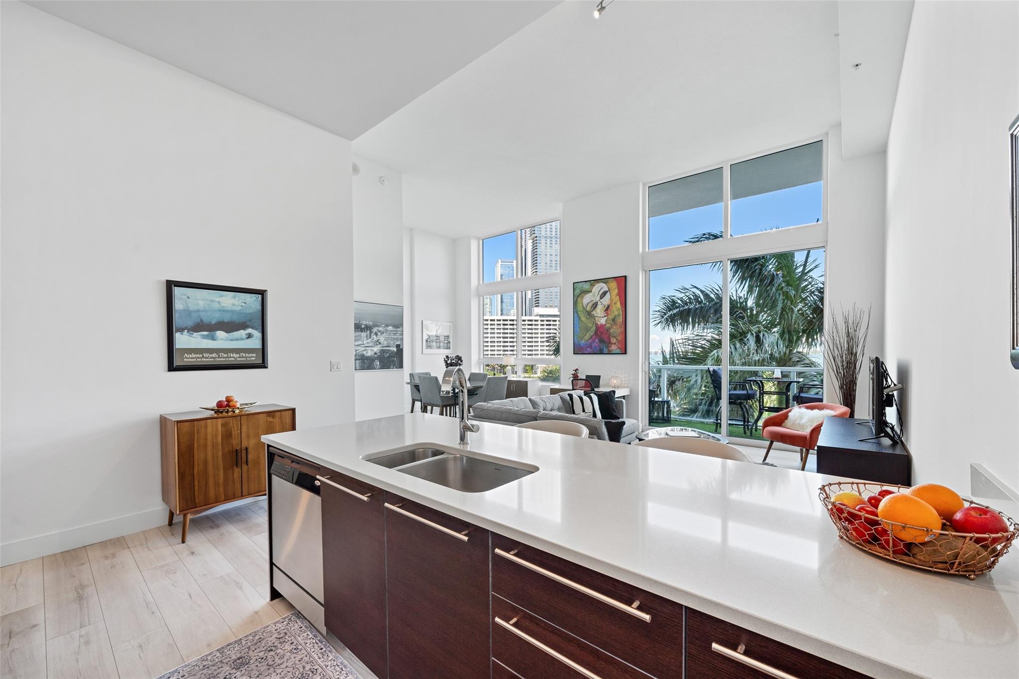 LOCATION, LOCATION, LOCATION!!! AS YOU STEP INTO THIS BEAUTIFUL EDGEWATER CONDO, THE BLUE WATERS OF THE BAY MEET YOUR EYES. MINUTES TO WYNWOOD, MID-TOWN, FINANCIAL CENTERS AND THE PERFORMING ARTS CENTER. SITUATED DIRECTLY ACROSS FROM MARGARET PACE PARK. CROSS THE VENETIAN FOR LUNCH AT THE STANDARD HOTEL! EASY ACCESS TO I95 VIA 395 OR 195. NEWER CONSTRUCTED CONDO WITH 14-FT CEILINGS, A NEWER A/C UNIT AND REFRIGERATOR. ENTIRE UNIT FRESHLY PAINTED. WALK ONTO THE LUXURY VINYL WOOD PLANK FLOORS AND PORCELAIN TILES IN THE BATHROOM. ALL NEW KITCHEN AND BATHROOM PLUMBING FIXTURES. CUSTOM VERTICAL CLOSET. THERE IS NOTHING TO DO HERE; BRING YOUR TOOTHBRUSH AND ENJOY THE GOOD LIFE! UNIT ON 7TH FLOOR, 4 STEPS DOWN TO PARKING LEVEL! FURNISHINGS AND STORAGE CAGE CAN BE INCLUDED AND ARE NEGOTIABLE.