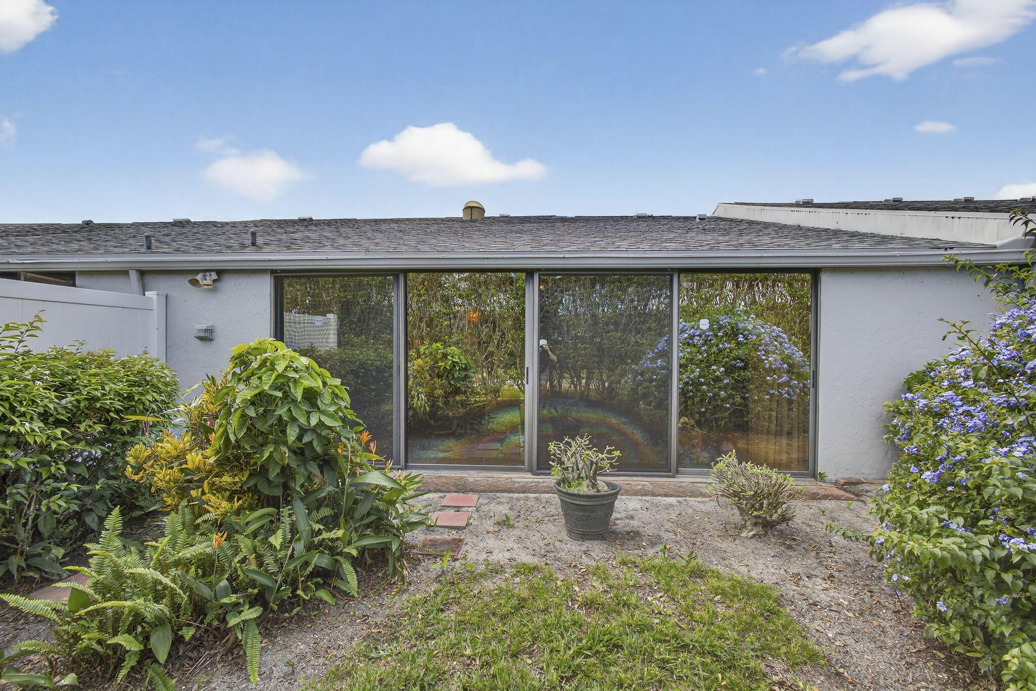 Welcome to The Arbours, a 55+ community that includes a clubhouse, pool, & tennis. This charming 2-bed, 2-bath single story villa features a split floor plan designed for comfort and privacy. Enjoy your morning coffee/evening sunsets on the front porch. The kitchen offers space for a cozy table, along with an updated dishwasher and fridge 1 years old. Vaulted ceilings w/ solar light flow through the, dining/living areas, creating an open and airy feel. The home features laminate wood flooring throughout, complemented by a tiled and enclosed patio with sliding glass doors, w/ A/C vent, utility closet with washer/dryer included. The tall hedges behind the home provide excellent privacy. The primary bedroom has a walk-in closet, & private en-suite bathroom.