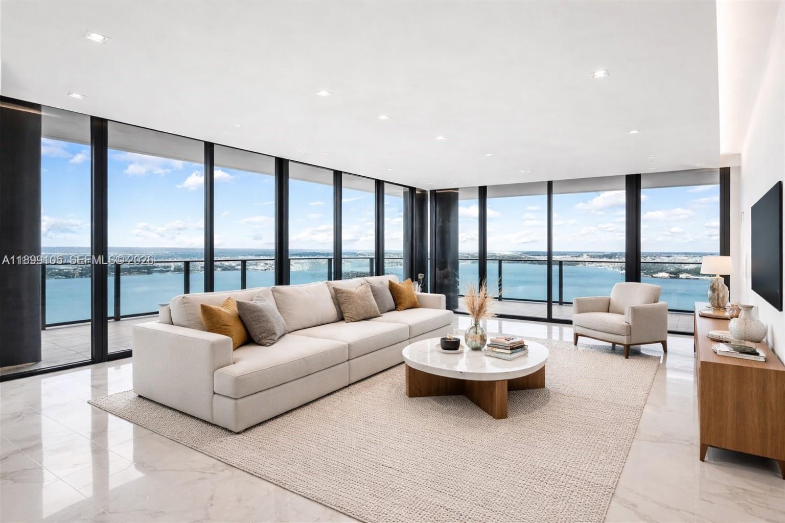 Spectacular high-floor residence at Aria Reserve South Tower, Line 01 (54th floor), featuring 4 bedrooms + office with direct Biscayne Bay and Ocean views. Fully upgraded with all developer options, including Arabescato porcelain floors, Cromat Gray terrace tile, custom ceilings with LED lighting, Somfy motorized shades, upgraded kitchen with Serena Matte countertops, custom illuminated closets, frameless shower glass, and matching bath accessories. Smart-home ready (Savant compatible). Enjoy world-class amenities: sunrise & sunset pools, spa, gym, tennis courts, dog park, kids area, lounge, and direct baywalk access in the heart of Edgewater. Walking distance to restaurants, shops, and minutes from Design District, Wynwood & Downtown Miami. A true masterpiece in the sky.