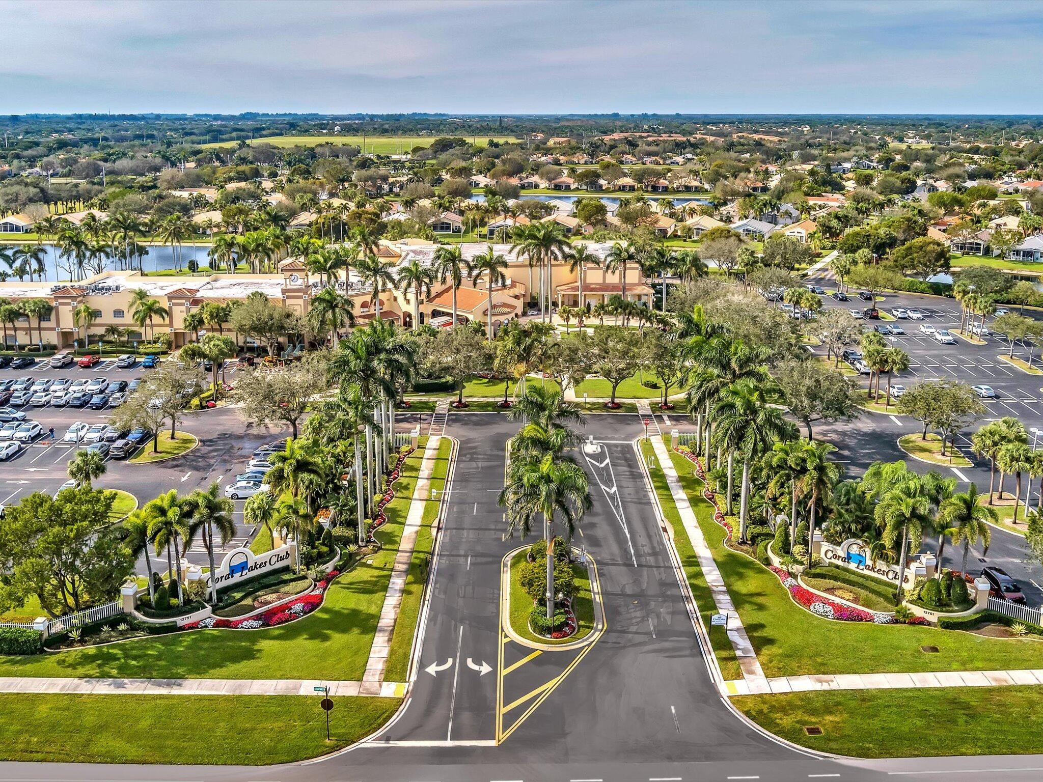 This pristine 3/2 lakeview condominium is located in the gated Coral Cove enclave at Coral Lakes. The spacious & bright END UNIT boasts 1,869 square feet of living and is a short walk to the community's satellite pool & tennis/pickleball courts. The eat-in kitchen features timeless white cabinetry, large pantry and glass display cabinet doors. Other notable items include an expansive master suite with separate sitting area, 2 closets (1 walk-in) and a large primary bath with two vanities and separate shower & soaking tub. 3rd bedroom is currently configured as a Den/Office. Large in-unit laundry room and new water heater in 2021. Coral Lakes features a recently renovated 72,000 sq. ft. clubhouse with 640-seat theater, indoor/outdoor pools, cafe, fitness center, tennis/pickleball and more!