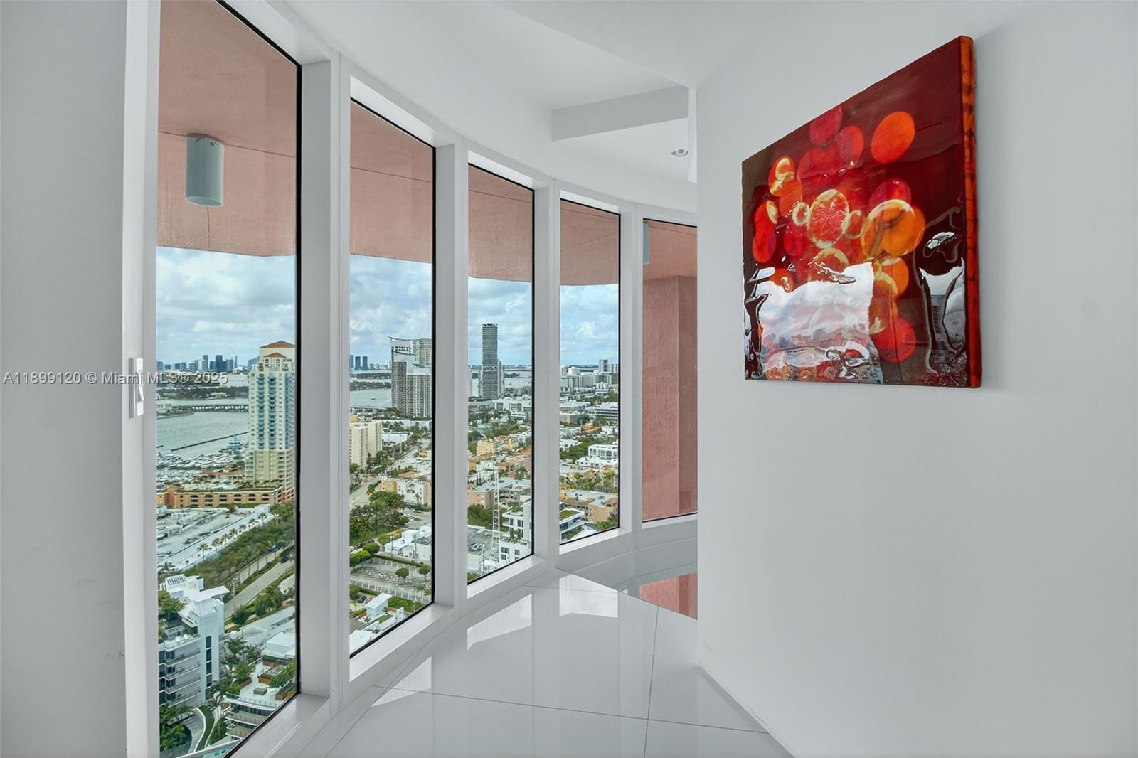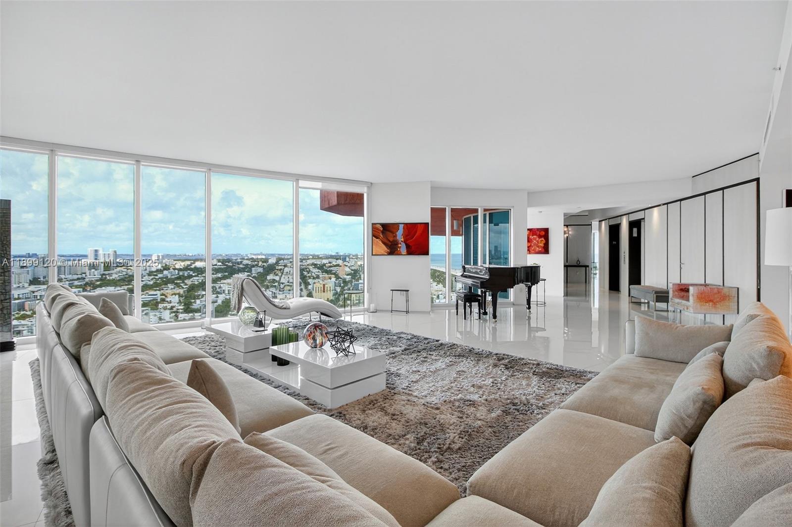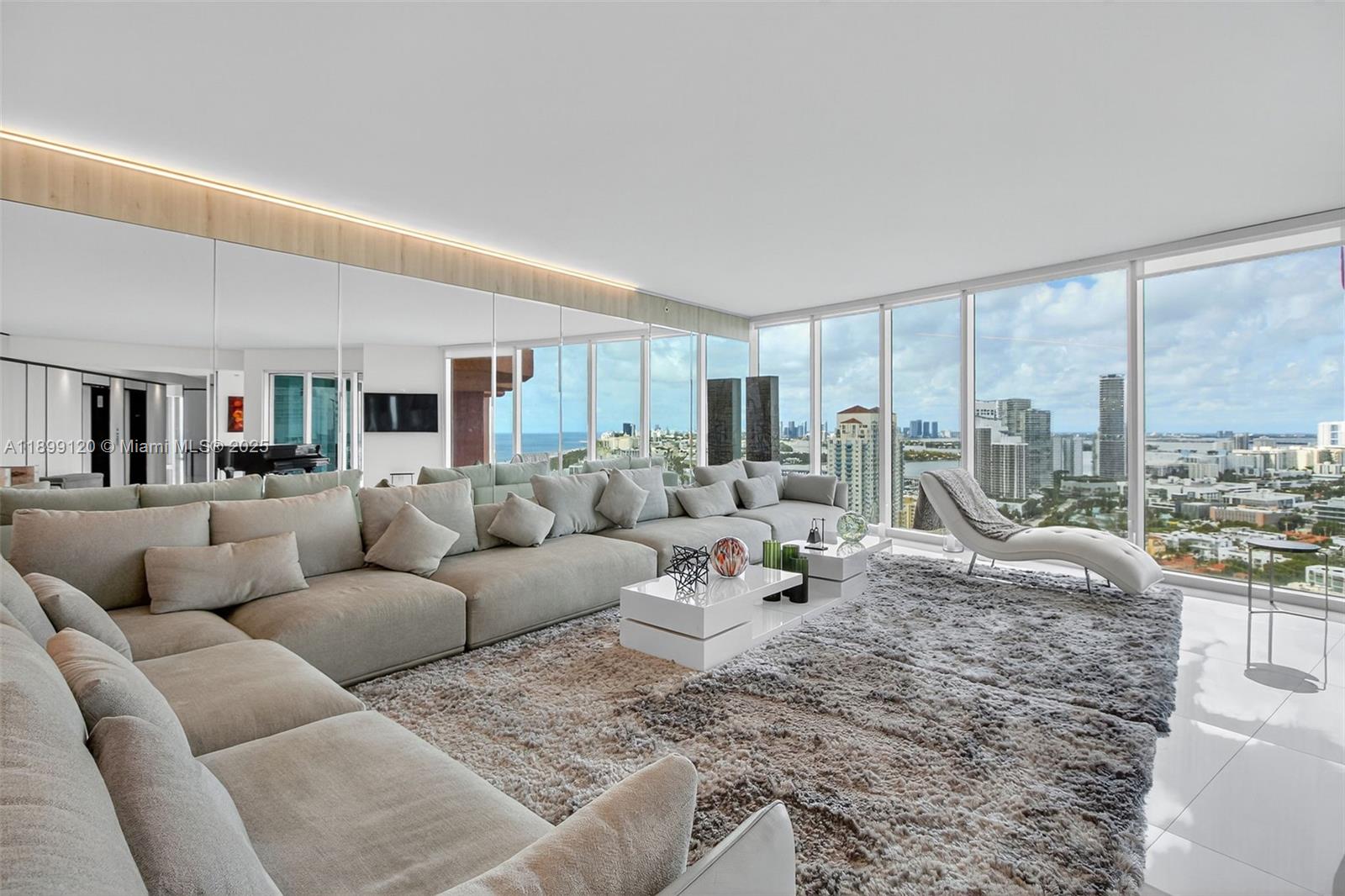 One of a kind, a dream home in the sky! 2-floor residence, boasting 5,450 SqFt to easily accommodate any special event or entertaining occasion. Mega sized flow-through living room and open kitchen with a bridge encased in glass leading to an 800+ SqFt panoramic Great Room. Endless direct views of the Atlantic Ocean, Biscayne Bay, Miami Skyline, and South Beach both day and night with incredible sunrises and sunsets. The lower floor of this townhouse offers all 3 bedrooms, providing excellent privacy and separation of space. The master bedroom overlooking the ocean offers his and hers bathrooms and closets, spa-like bathroom including a double rain shower and separate large jacuzzi tub with an ocean view.