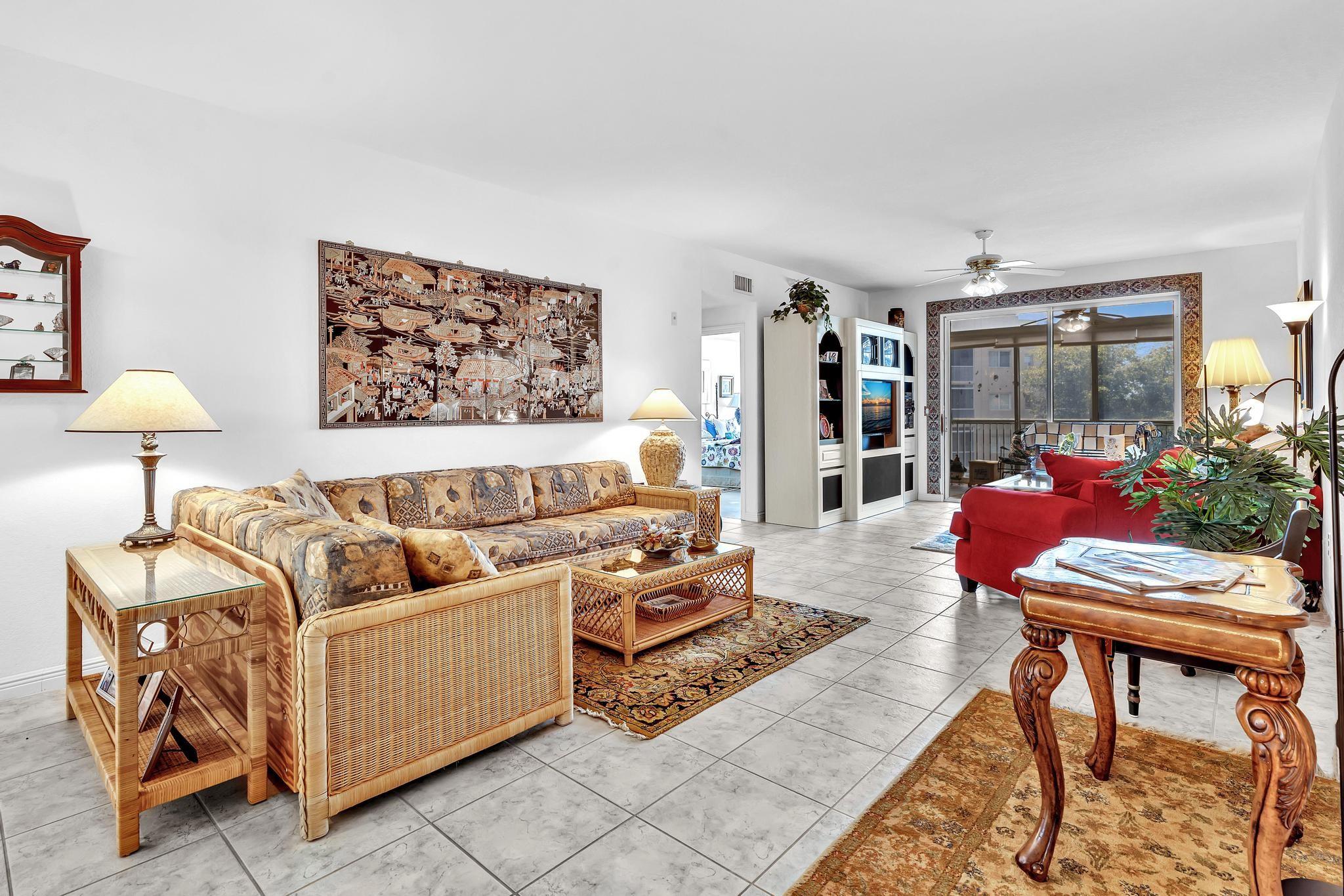 *Stunning Water View Corner Unit* 1986 sq. ft * This lovely home creates a fantastic and welcoming atmosphere with two bedrooms & two baths. The 2nd bedroom includes a Murphy bed for added convenience. There is a family room/den/formal dining room, which can also be used as a third bedroom. The kitchen features white cabinets & a custom island. Extra freezer. Tile flooring throughout the living area enhances the gorgeous open layout. The master bedroom boasts a spacious walk-in closet & a large soaking tub. Include a private laundry room & storage. Enjoy your front screened patio that greets you before getting to your front door & 2nd large balcony overlooking the water view, which is excellent for relaxing. Southampton is the only community that has a gym on the site. Guard at the gate.