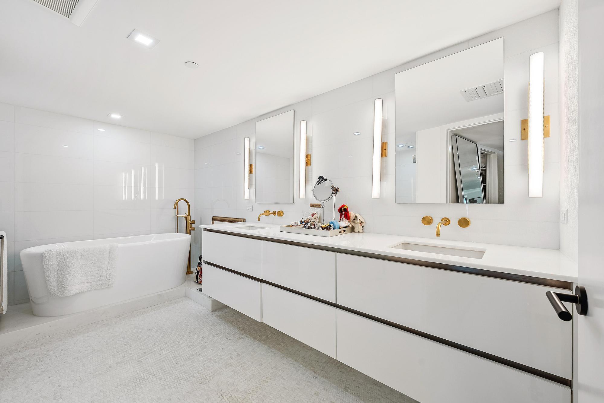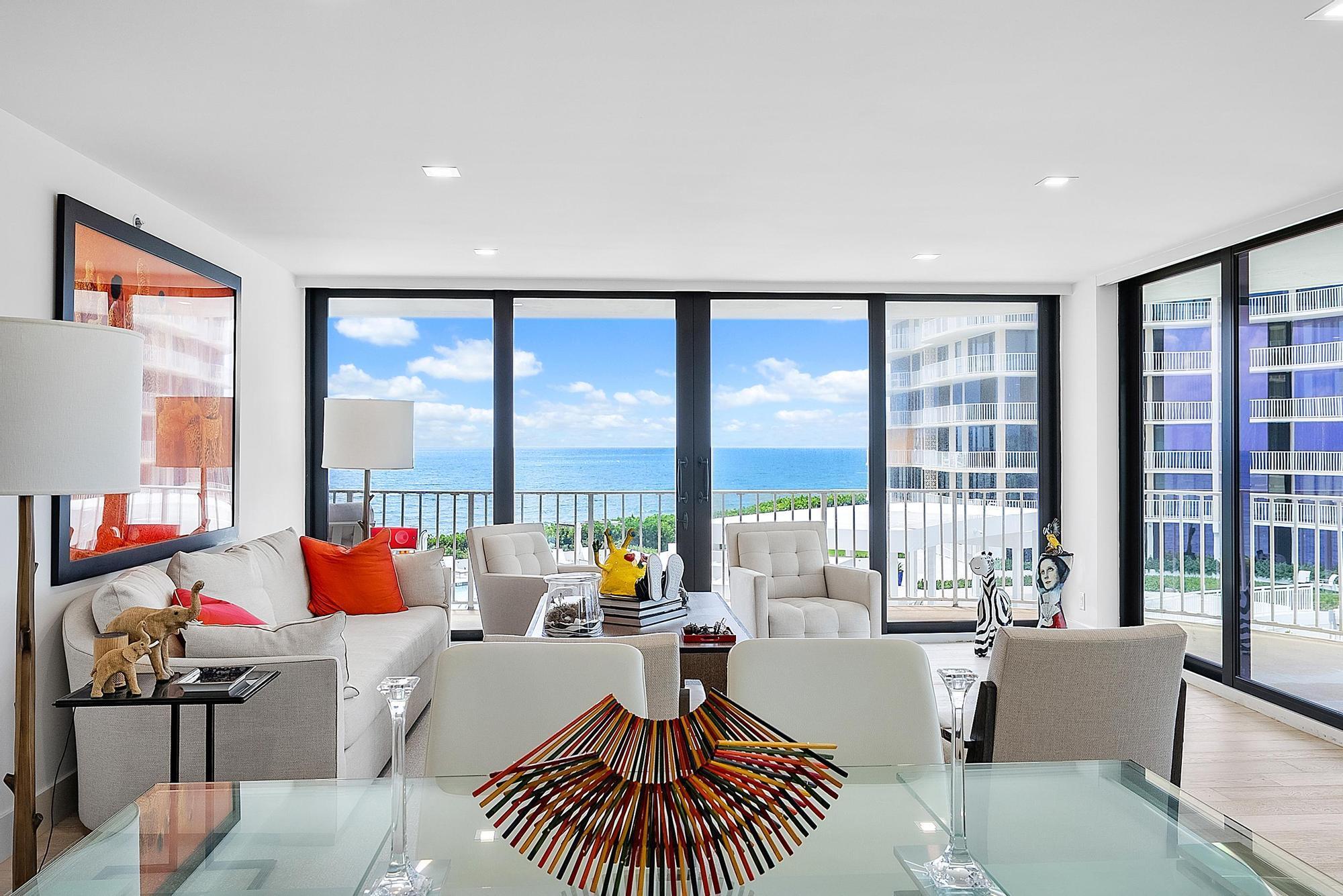 Wake up to the soothing sounds of ocean waves and breathtaking sunrises in this tastefully renovated 2-bedroom, 2-bathroom residence, with ocean views from every room. Featuring floor-to-ceiling hurricane impact windows and doors, enjoy stunning ocean views from every room. The home boasts hardwood flooring, recessed lighting, quartz countertops, and top-of-the-line Miele appliances. Custom-built in closets, including a dedicated space for glasses. The primary suite offers a spacious marble-clad ensuite bathroom with gorgeous brass fixtures and a extra-large walk-in closet with custom-built-ins.Facing southeast, the open-concept kitchen, dining, and living areas provide sweeping views of the ocean and the Intracoastal. This perfect property includes 1 garage space and a storage locker.