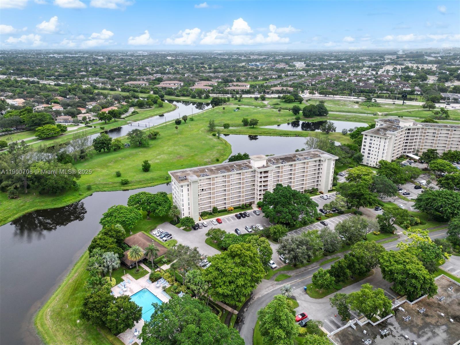 This 2/2 condo in the desirable Palm-Aire community on the 7th floor with incredible views of the water and lush and garden spaces offering style and comfort in a serene setting is a MUST-SEE! Unit is clean and tidy and can be sold fully furnished for your convenience w/ ACCORDIAN SHUTTERS on EVERY window/door. Laundry is located on each floor along with a storage room. Unit is located just steps from the pool and clubhouse. Well-managed building with strong reserves, no pending assessments, completed 50 year certification and reserve study. Roof and concrete restoration all done in the last 3 years. Located near Top Golf & The POMP. Community boasts miles of recreational pathways for outdoor living along with a pool, gym, BBQ areas, storage with secure entry,night security and newer roof.