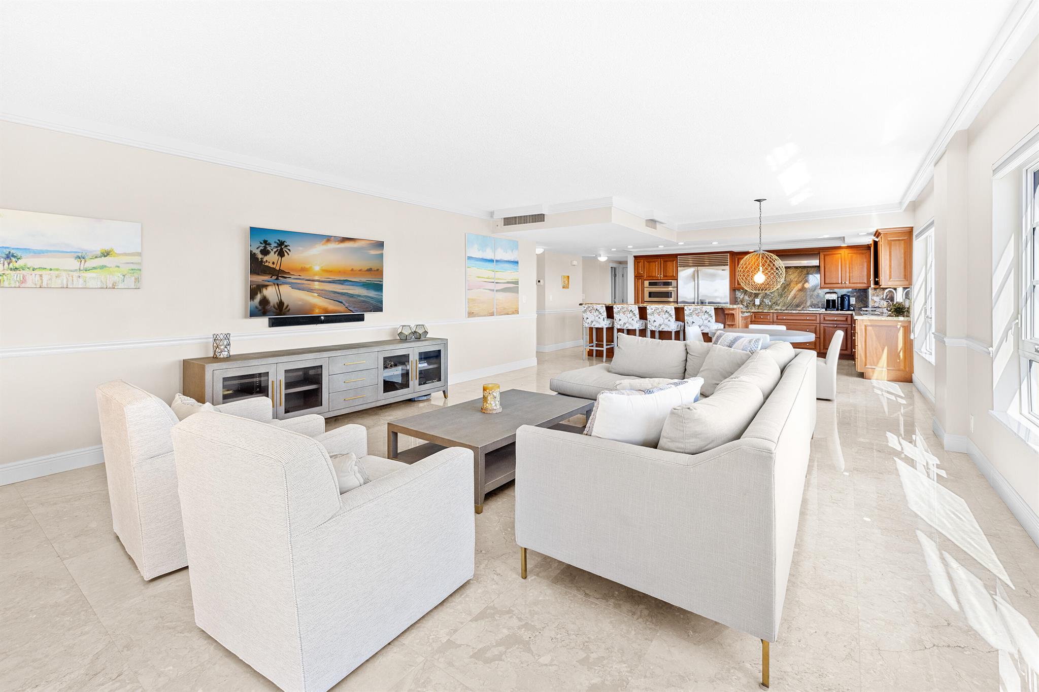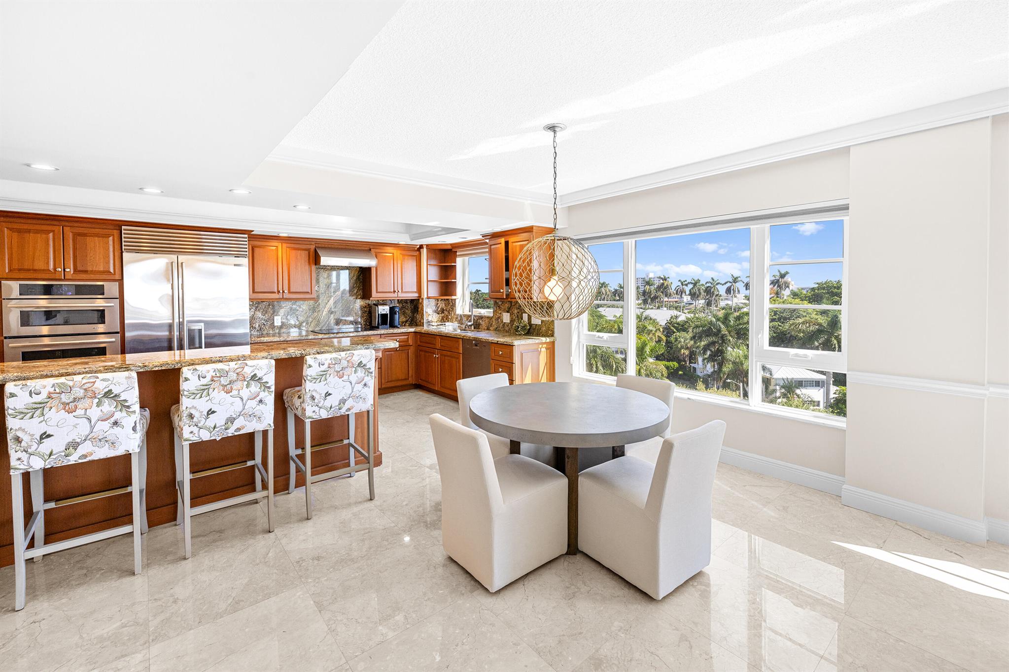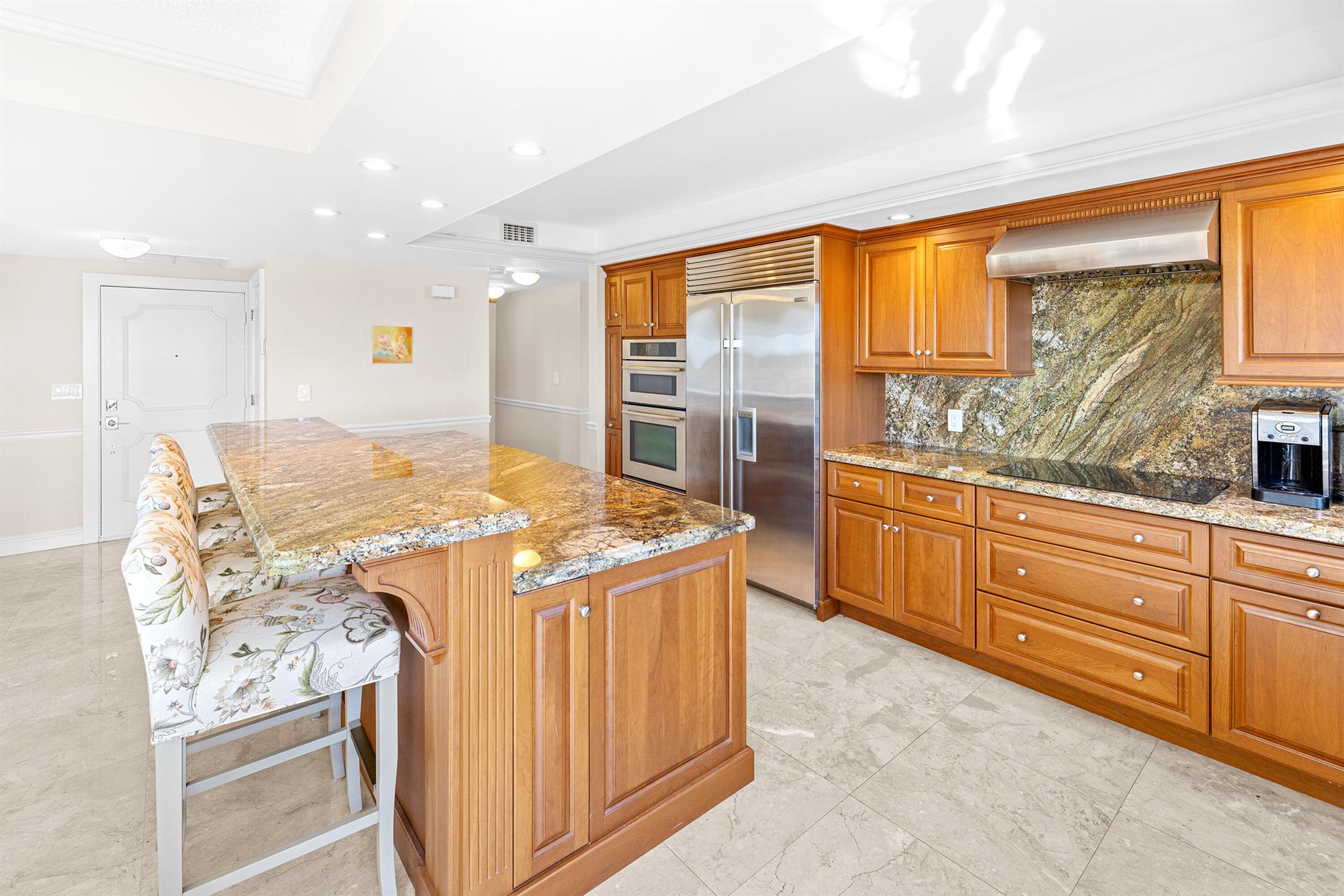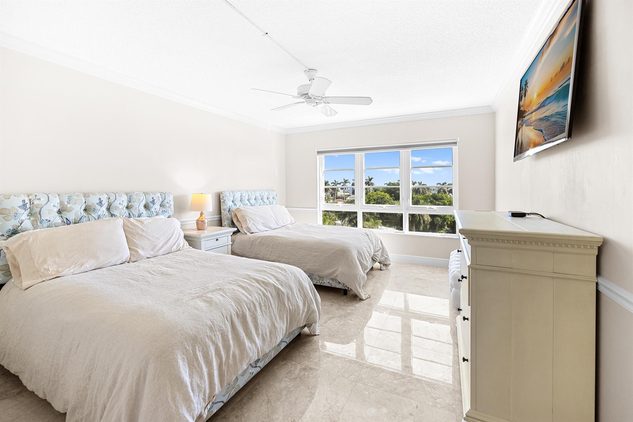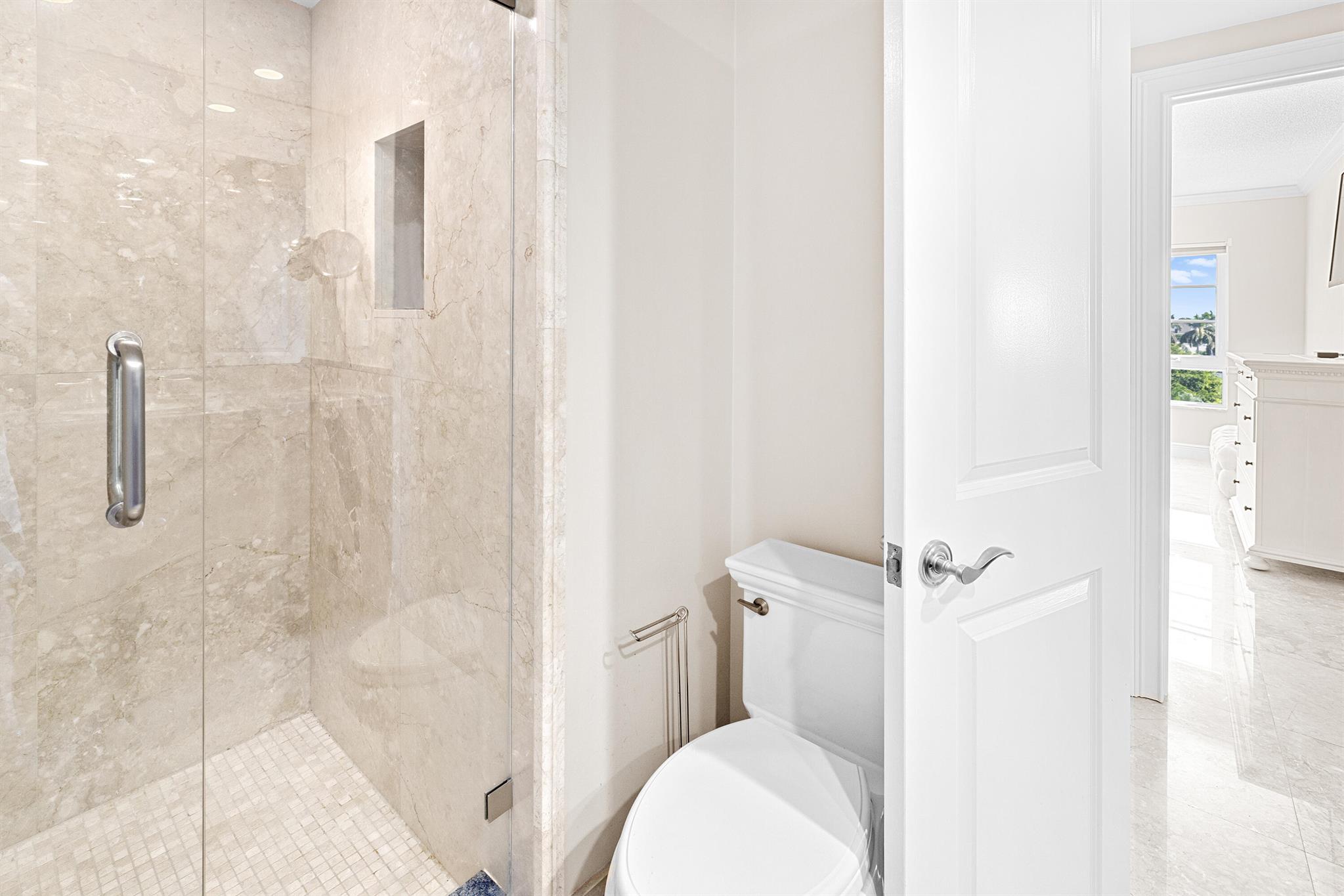 Spacious 2-bedroom, 2-bath corner unit is one of the largest units available in this full-service building in desirable Delray Beach. This southeast-facing condo enjoys bright morning light and city views from an oversized, fully enclosed 19' x 11' balcony overlooking the water. This unit features hurricane-impact windows, in-unit washer and dryer, and a brand-new A/C system. The open layout includes a formal dining area and a modern eat-in kitchen with recessed lighting, custom wood cabinetry, stainless steel appliances, and granite countertops. The split-bedroom floor plan provides privacy, with the primary suite and second bath both offering walk-in showers.