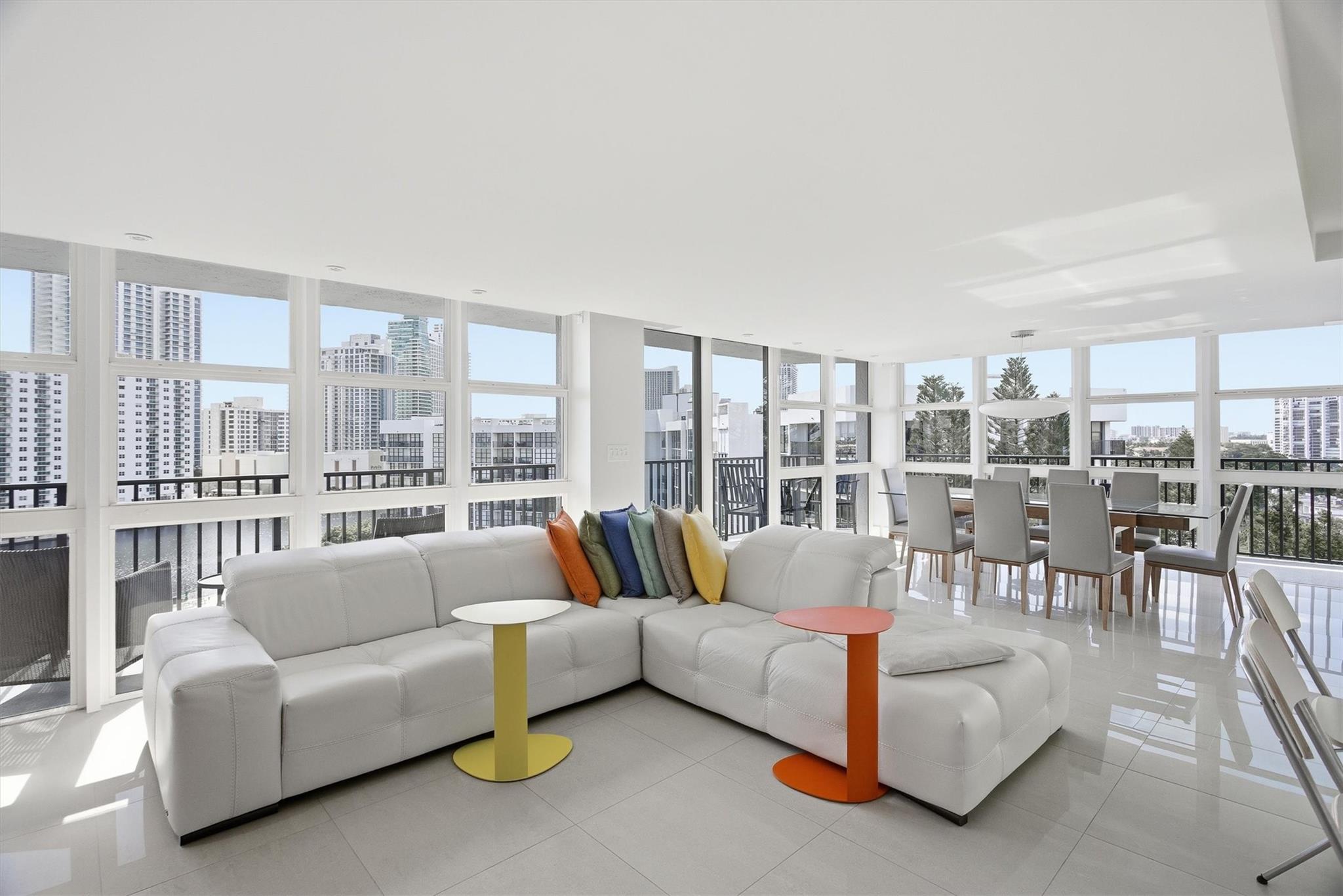 STUNNING PENTHOUSE CORNER UNIT! Rare wraparound patio with a South East exposure giving you Intracoastal, ocean & sunset views! Fully remodeled from A–Z: new plumbing, electrical, ceilings, porcelain floors, and full impact windows & doors. High-end designer furniture is negotiable allowing for an effortless move-in experience. The open kitchen gives you a bright, modern layout with breathtaking views from every room. Unit has quartz countertops, electric blinds int the living room and dining room. Internet and tv included. Located in a very active, sought-after community, residents enjoy an engaging lifestyle with fantastic amenities–plus you're close to everything: beach, shopping, dining & entertainment. This is the ultimate penthouse retreat—luxurious, modern, and unforgettable.