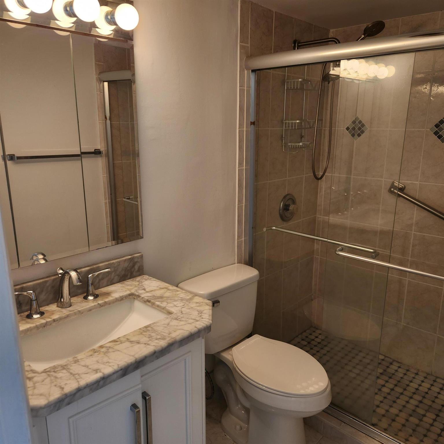 RARE First Floor Unit. Updated Kitchen and Bthrms. All Tile floors. Assigned parking conveniently located in front of unit walkway, Addit'l. guest pkg. Primary bdrm w/spacious walk-in closet, 2nd bdrm/Den leads out to the patio w/ lovely garden view. Satellite pools in walking dist., New & Free Laundry Rm., Free Bus Transportation throughout the community, clubhouse for all activities, events, and to local shopping outside the village. Renovated clubhouse boasts Many clubs & activities, an indoor heated pool, 2 large outdoor pools, 1209 seat theater for scheduled movies & live entertainment, Lg. party room w/stage & dance floor, Multiple card & meeting rooms, Billiard room, Tennis, Shuffleboard, Handball/ Racket ball, Bocce Ball courts, Dance, Yoga, Aerobics classes, Music, Crafts and mo
