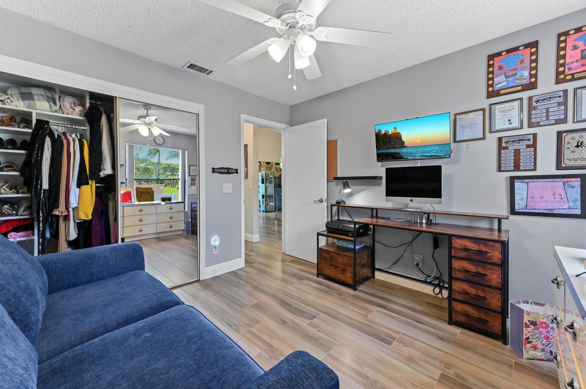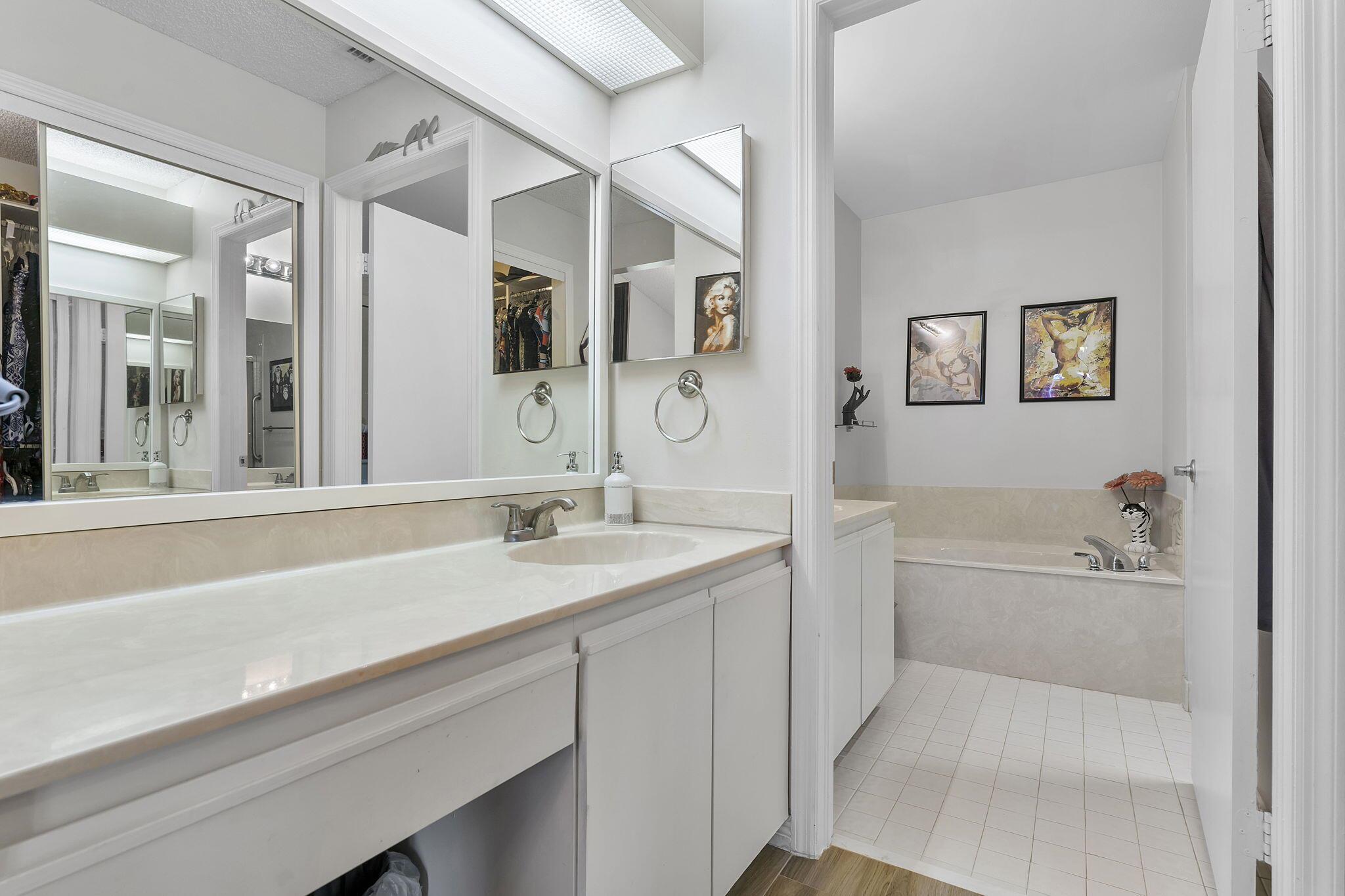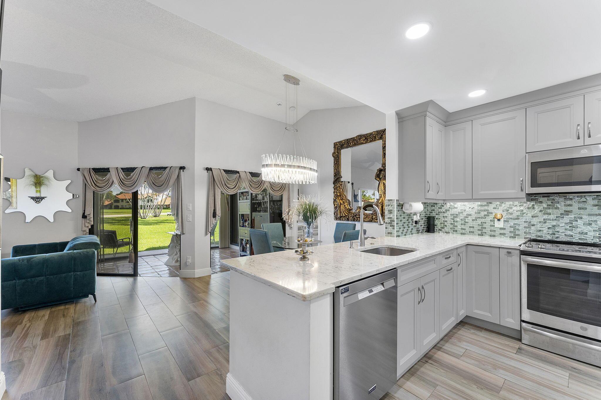 Welcome to this one of a kind, move in ready, 2-bedroom, 2-bath Villa with attached 1-car garage with epoxy flooring, in the sought-after 55+ Active Community. This stunning villa will captivate you from the moment you arrive, starting with exceptional curb appeal and the lush, fully paved double courtyard, perfect for relaxing or entertaining outdoors. Inside, the open floor plan showcases neutral tones, abundant natural light, and thoughtful upgrades throughout, with its charming eat-in kitchen fully renovated with all the upgraded trends and appliances. Designed with spacious scale and contemporary elegance, the master suite offers a luxurious custom walk-in closet and an added jewelry cabinet in the master bath.