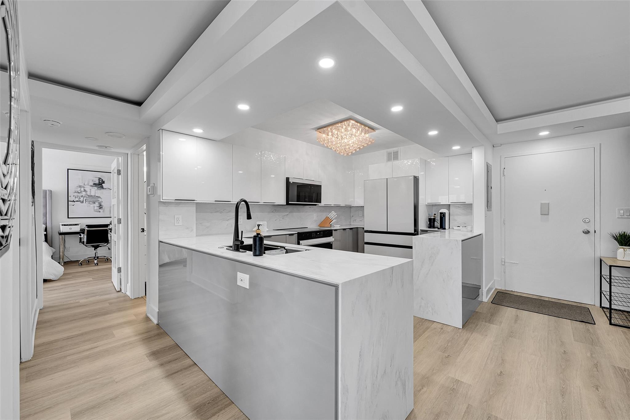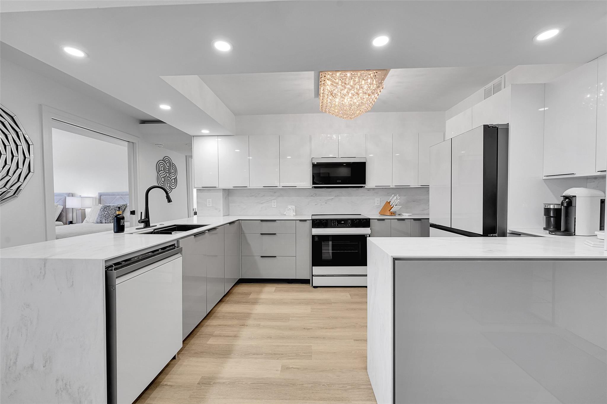 Stunning, fully updated 2 Bed / 2 Bath ocean-view condo overlooking world-famous Pompano Beach. This spacious 1,200 sq. ft. residence was completely renovated in 2023 from top to bottom. Features a spectacular open gourmet kitchen with high-end appliances, quartz countertops & custom cabinetry. Both bathrooms beautifully redesigned with modern finishes. The seller, a professional cabinet maker, added exceptional custom details throughout, including dramatic closets and built-ins. Enjoy ocean views from the oversized balcony and peace of mind with all impact windows and doors. Luxury building with Resort-style amenities include a heated pool, sauna, fitness center, BBQ area, card room, meeting room, library, 24-hour doorman. Perfectly located near vibrant dining, shopping, & entertainment!