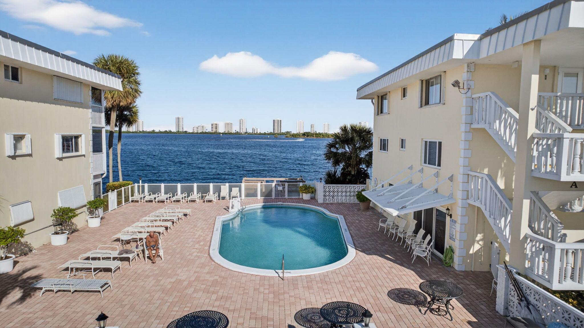 Rarely available 2 BR 1st floor unit on the direct Intracoastal with wide water views of the Intracoastal Waterway and Singer Island. Enjoy coffee on the screened in porch, watching the sunrise over the sparkling blue water. Active over 55 community, 2 BR, 1 bath unit in act has been lovingly maintained. Updated kitchen and bathroom, tile floors, updated windows, accordion shutters, updated electrical panel and NO popcorn ceilings. Unit has leasing rights to a 28' slip for $1400 a yr. If boat slip is not wanted, it goes back to the association as slips are leased by owners & lessees on a first come first served basis and owned by the association. Central location, close to Publix, shopping, restaurants, NPB Country Club and Peanut Island. 20 min to PBIA. Special assessment paid by selle