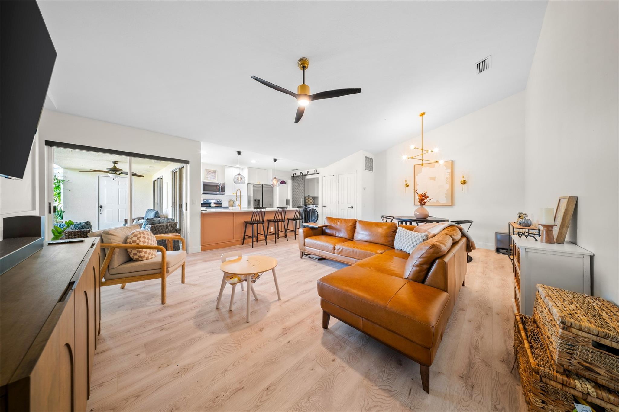 Discover this beautifully updated 2-bedroom, 2-bath villa in Sun Terrace at St. Lucie West! This solid Divosta build offers open living spaces with vaulted ceiling and bright skylight that fills the home with natural light. Enjoy laminate and tile flooring, a modern kitchen with quartz calacatta countertops, and renovated bathrooms. Relax in the screened lanai and enjoy low-maintenance living—HOA includes lawn care, roof, cable, and more. Community perks include 2 pools and tennis courts!