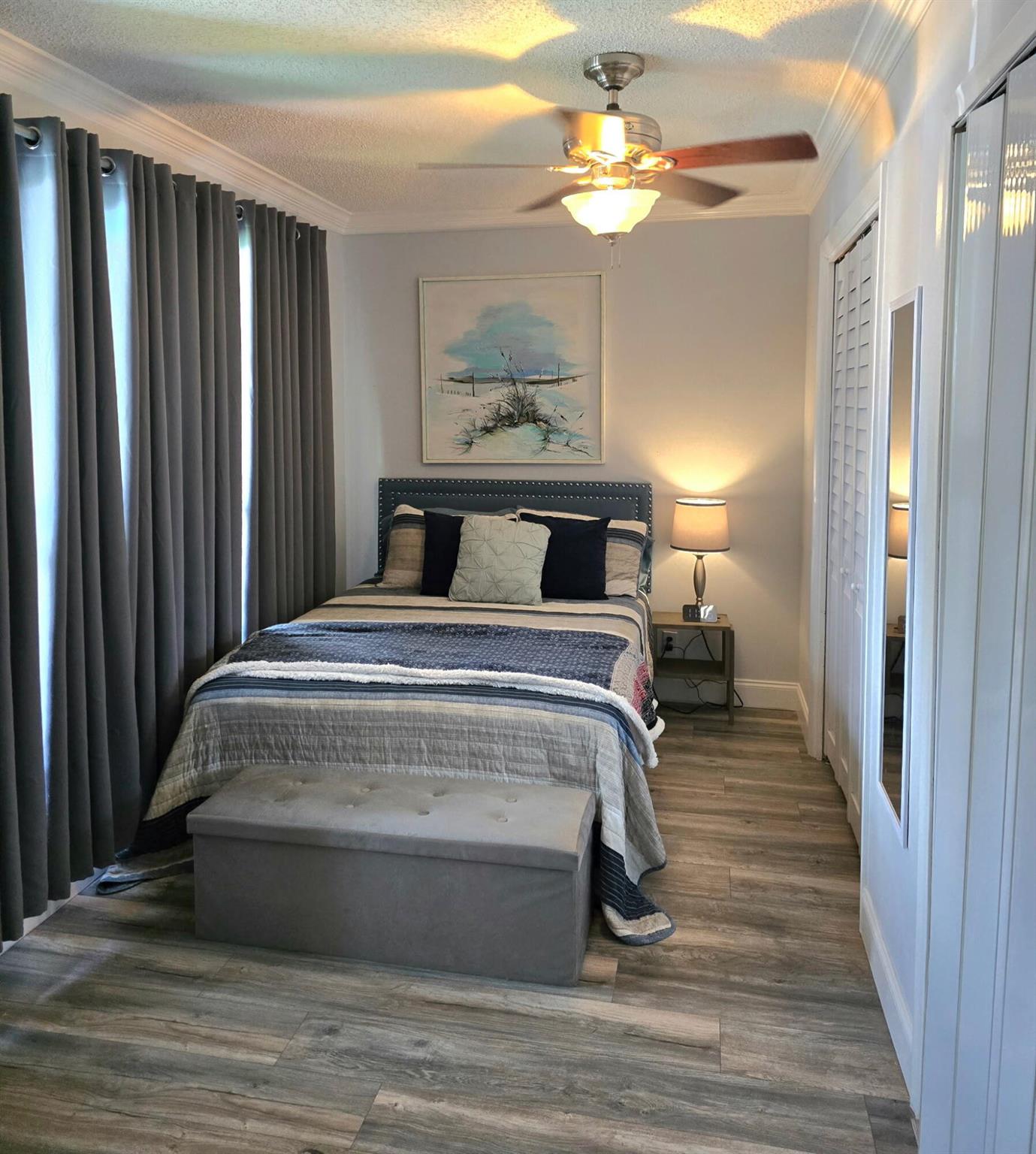 Completely renovated! Back on Market as of Dec 1st & Now being sold unfurnished! Owners added a new, permitted and built to code 17'x 9' bonus room to the building at a cost of over $30,000, perfect for use as an office or guest bedroom. Second bathroom has also been expanded into a full bath and additional custom closet has been added to the guest bedroom. Granite kitchen has new stainless appliances with built in microwave, tons of counter space and storage including pantry with pull out shelves. Hurricane glass throughout the home with hurricane rated door. Beautiful wood laminate flooring throughout, as well as new paint and crown molding. New washer and dryer and tankless water heater. Every inch of this home has been thoughtfully improved for comfort, functionality and sty