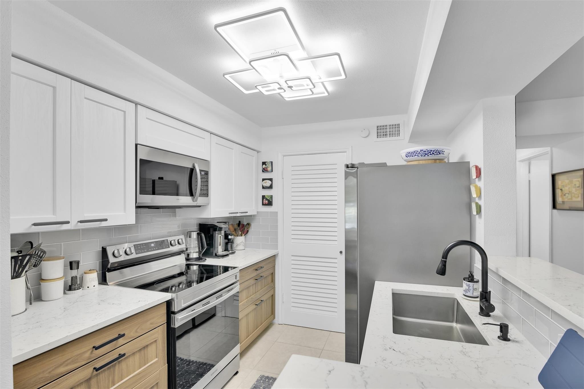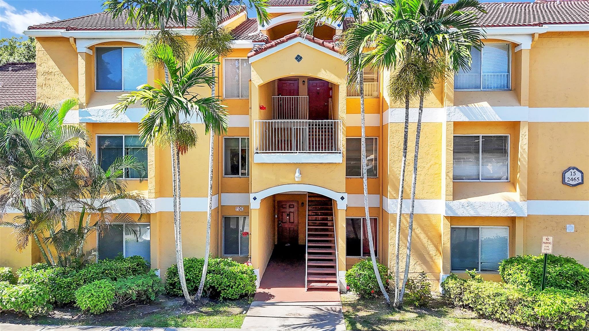 This beautifully updated 2 bedroom 2 bath home features new ceramic tile floors thru out, new kitchen cabinets with quartz counter tops as well as new kitchen appliances and new washer dryer as well as a beautifully updated primary bathroom. Enjoy the relaxing Lake View from your screened in private balcony. Balcony comes complete with your own private staircase that goes directly to the Lake, perfect for a morning or evening stroll! Complex is gated & pet friendly and has many amenities including....Club House, Pool, Hot Tub, Gym, Tennis Court, Basketball. The open concept kitchen offers a breakfast bar and don't miss the large pantry closet! Conveniently located near schools, shopping and easy access to I95. The complex offers ample parking and is located close to the Clubhouse.