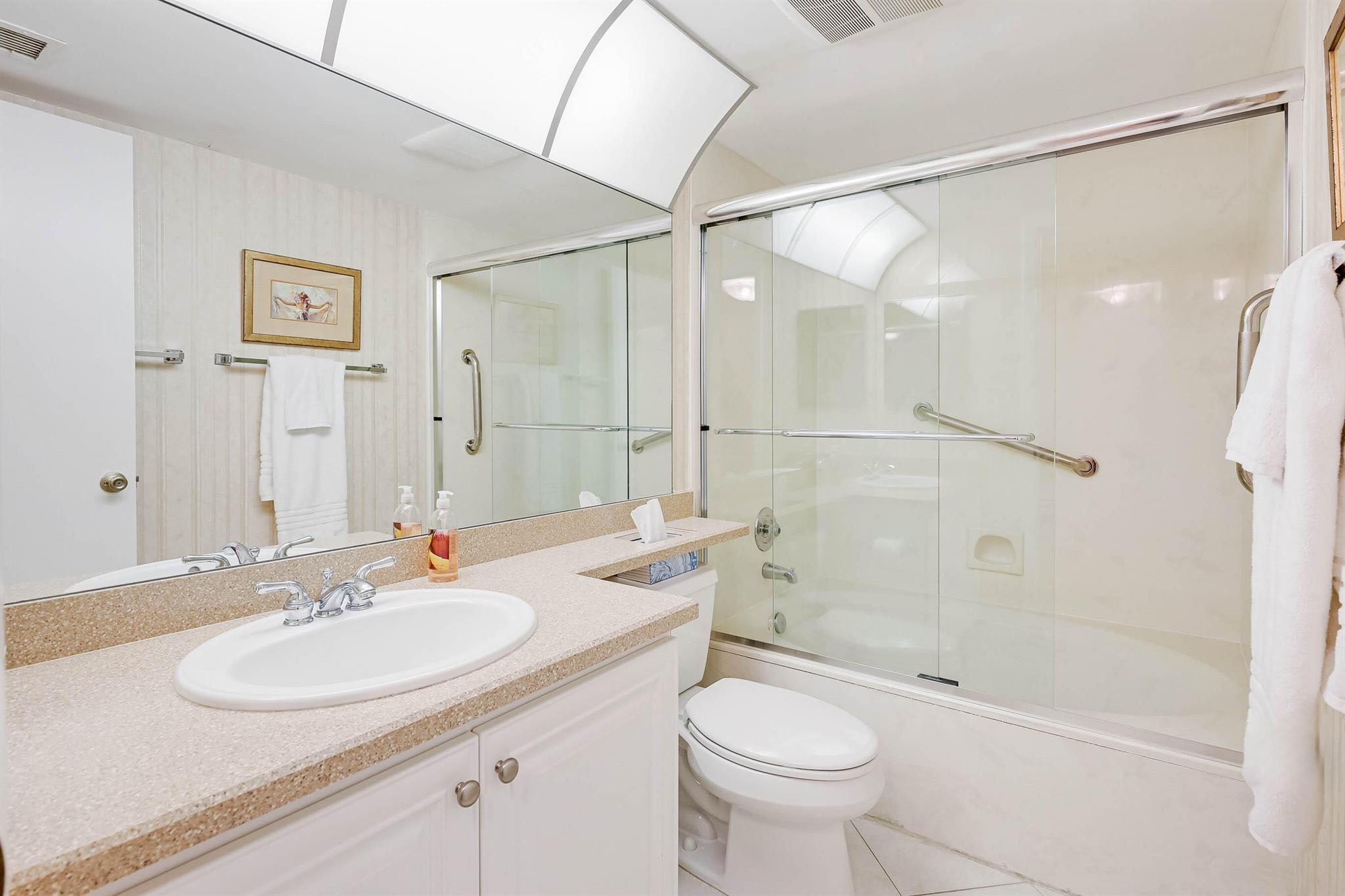 Enjoy serene views from this charming 1st floor 2BR/2BA + Den condo. Spacious and bright, this unit offers an updated eat-in kitchen with backlit soffit ceiling, an open dining/family room perfect for gatherings, and open den w/lake and golf view. Primary bathroom has been updated with a stylish glass-enclosed shower. Relax knowing your roof (2023), water heater (2021), and A/C (2022) are all new. Located in Boca Delray Golf & Country Club - an affordable top-rated Par-60, 18-hole golf course, adult active, and gated community just minutes from downtown Delray Beach and beaches, easy access to airports, and 1.4 mile walk to House of Worship. No annual dues, just endless amenities-- a newly renovated 12,000 sq ft clubhouse, pool, tennis, fitness, pickleball, cafe, and walking paths