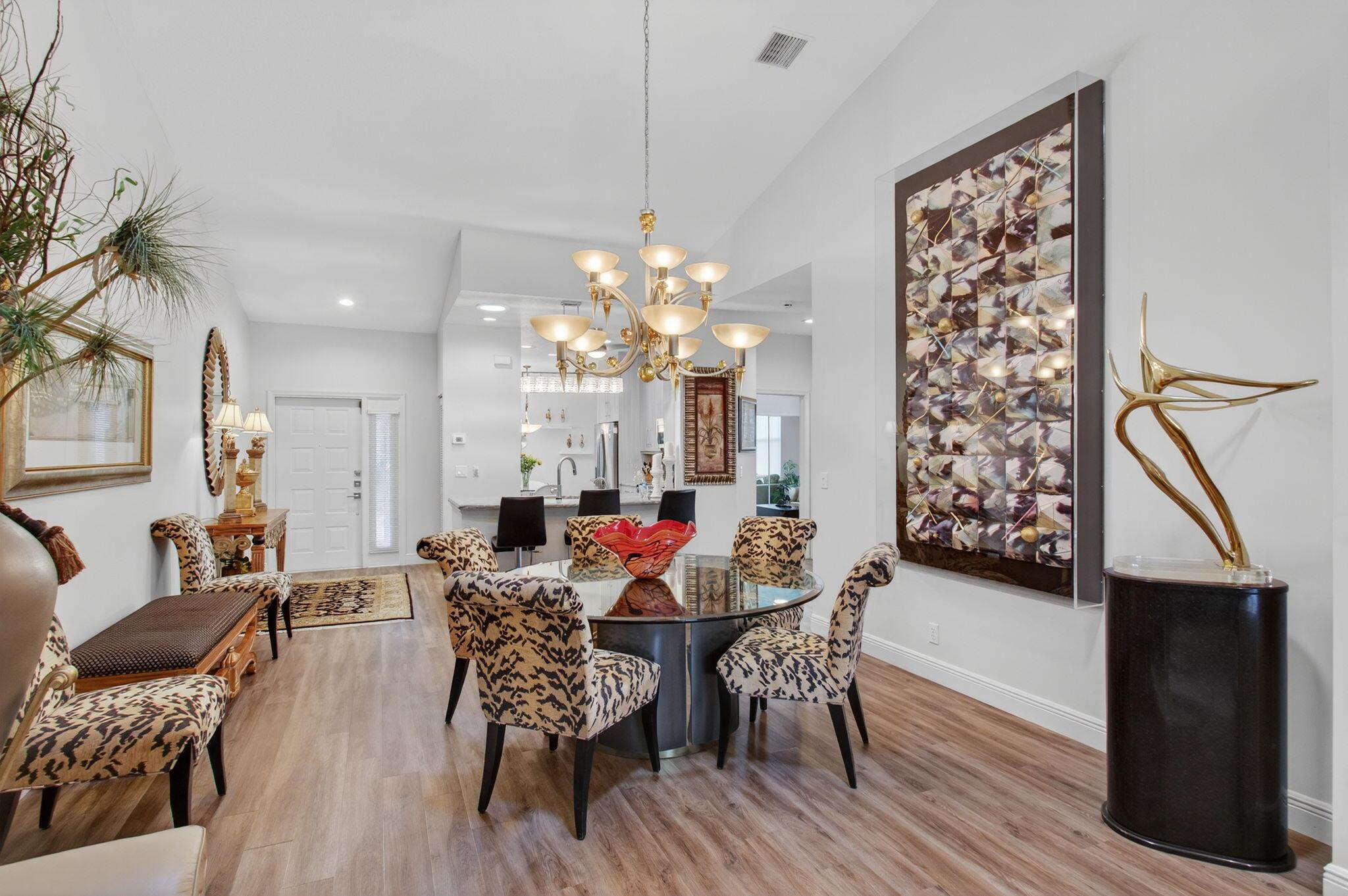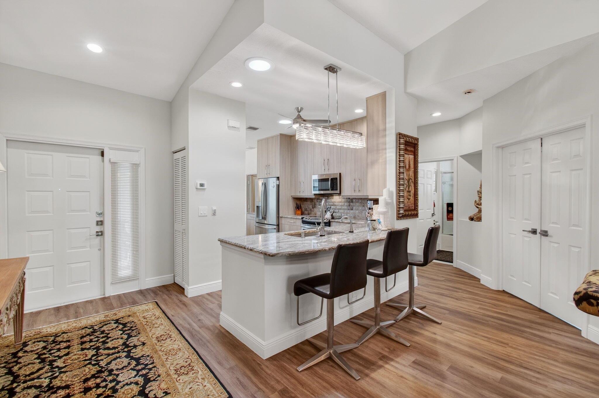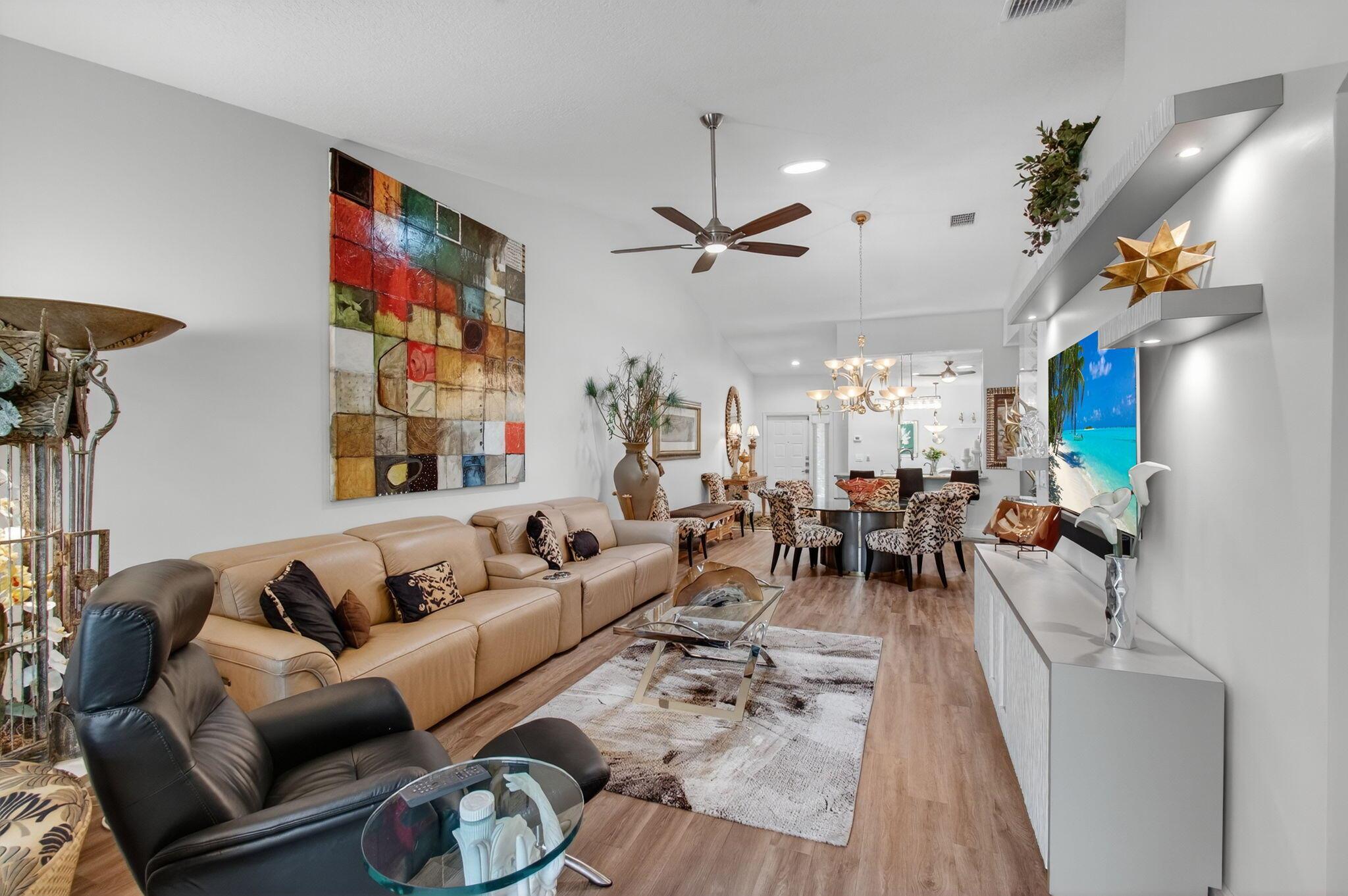 MAJESTIC ISLES--SUPER PRESTIGIOUS COMMUNITY.ACTIVE ADULT COMMUNITY.Explore the captivating warmth and modern elegance of this distinctive dwelling, situated in the vibrant, engaging adult community of Majestic Isles. Experience the inviting openness and brilliance as you step into this impeccably renovated villa, crafted with exceptional care and finesse.The property sports a newer roof and high ceilings that seamlessly extend from the kitchen to the dining, living, and Florida rooms, fostering a grand ambiance. Abundant natural light streams in through the skylight solar panels in the kitchen and living areas, magnifying the sense of space and brightness.