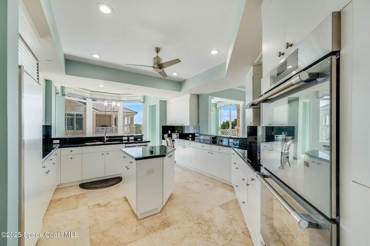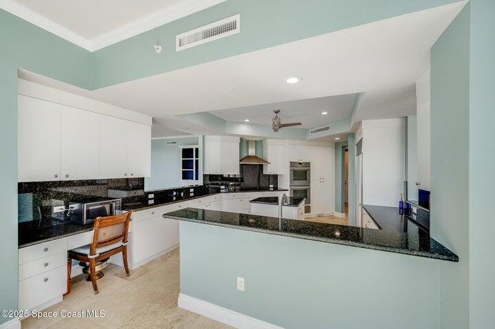 EXQUISITE IMPECABBLE PENTHOUSE WITH OCEAN VIEW HAS THE HIGHEST STANDARDS OF MAINTENANCE AND CUSTOMIZATION. AN ELEGANT FOYER LEADS TO A HALF BATH W/HAND PAINTED WALLS AND TRANSITIONS TO A SPACIOUS LAKE FRONT LIVING ROOM W/FIREPLACE. EAT IN ISLAND KITCHEN HAS NEW THERMADOR DOUBLE OVENS, SUB ZERO REFRIDGERATOR AND NEW DISHWASHER. A BRIGHT FLORIDA ROOM, 2 ADDITIONAL EN-SUITE BEDROOMS AND OPEN-AIR BALCONIES W/MARINE GRILL PROVIDE COOL ISLAND BREEZES FOR YEAR-ROUND ENTERTAINMENT. IMPACT GLASS, CENTRAL VAC, TRASH SHUTE, AND AIR CONDITIONED GARAGE ARE JUST A FEW OF THE CUSTOM FEATURES AT THIS OUTSTANDING PRICE.