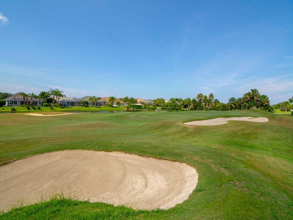 Well priced and hard to find villa in Pointe West. 2 bedrooms + den with oversized 2 car + garage and screened porch. Natural gas cooking, water heater, heat and bbq outlet. Flooring is tile in main living areas and laminate in the bedrooms. Gorgeous new kitchen with cabinets, appliances and countertops. Newer roof, water heater and ac unit so no worries and your insurance company will be happy! County water and sewer. HOA fees include lawn and sprinkler maintenance, exterior painting and roof replacement. Golf and social memberships available. Great walking, biking and golf cart community.