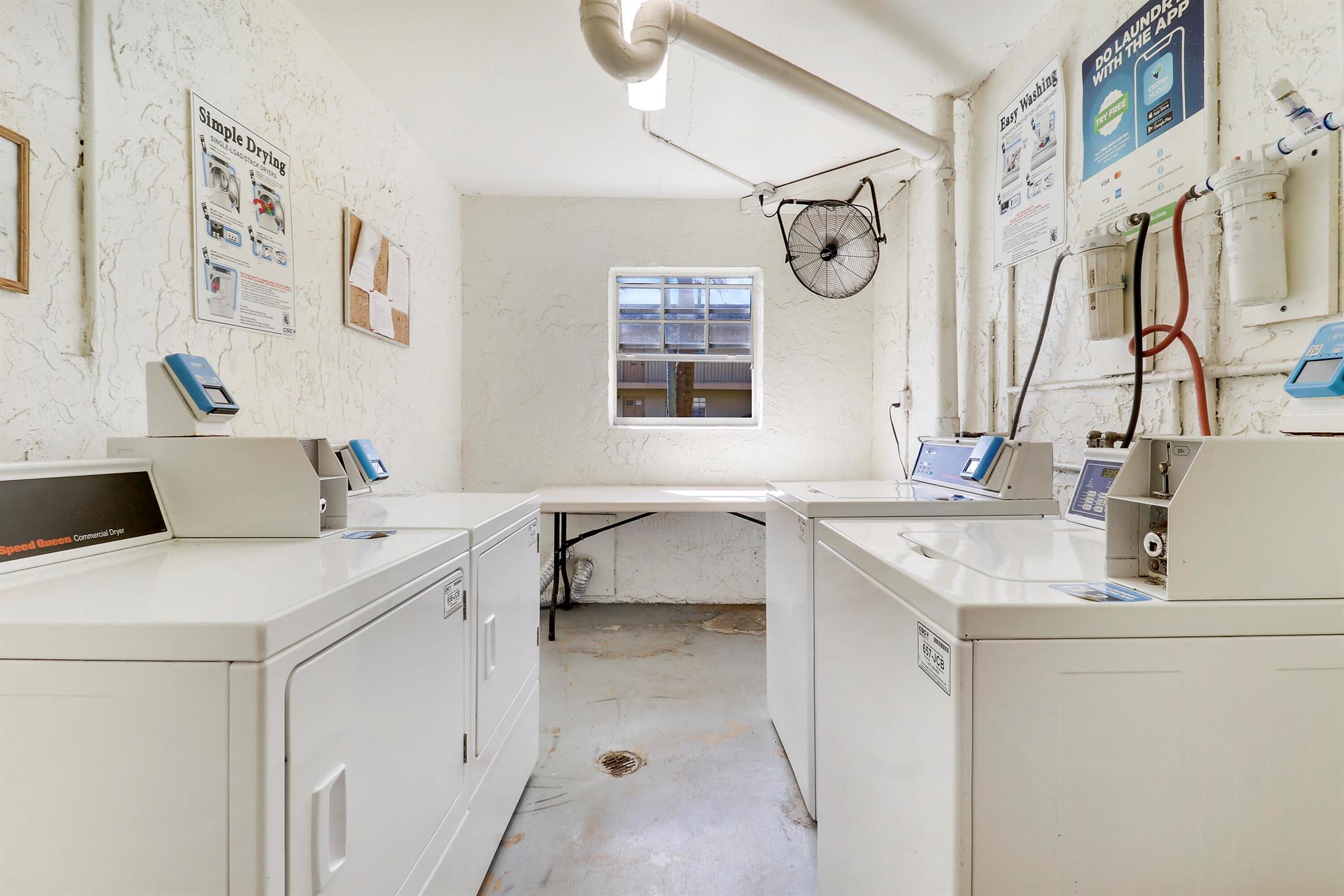 Step into this beautifully updated 2 bedroom, 2 bathroom corner unit, offering a bright and spacious layout filled with plenty of natural light. The modern kitchen features stainless steel appliances, ample cabinet space, and flows effortlessly into the open living and dining areas, perfect for everyday living and entertaining. Tile flooring extends through the kitchen, hallway, bedrooms and bathrooms, while the living and dining rooms feature warm laminate floors that add comfort and style. Both bedrooms are a generous size and include walk-in closets, while both bathrooms have been tastefully updated. Impact glass windows provide peace of mind and energy efficiency, and there's plenty of extra storage throughout, including a separate storage unit for added convenience.