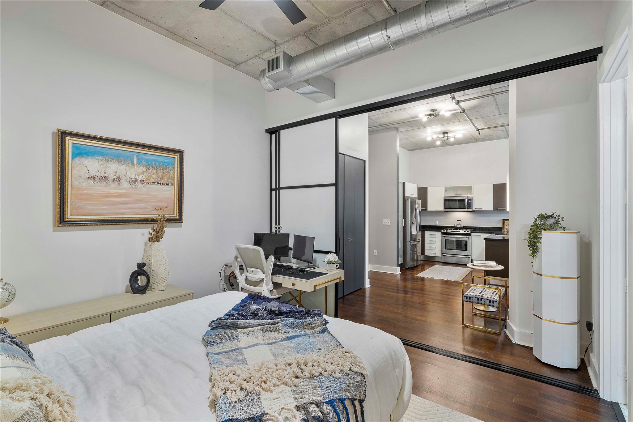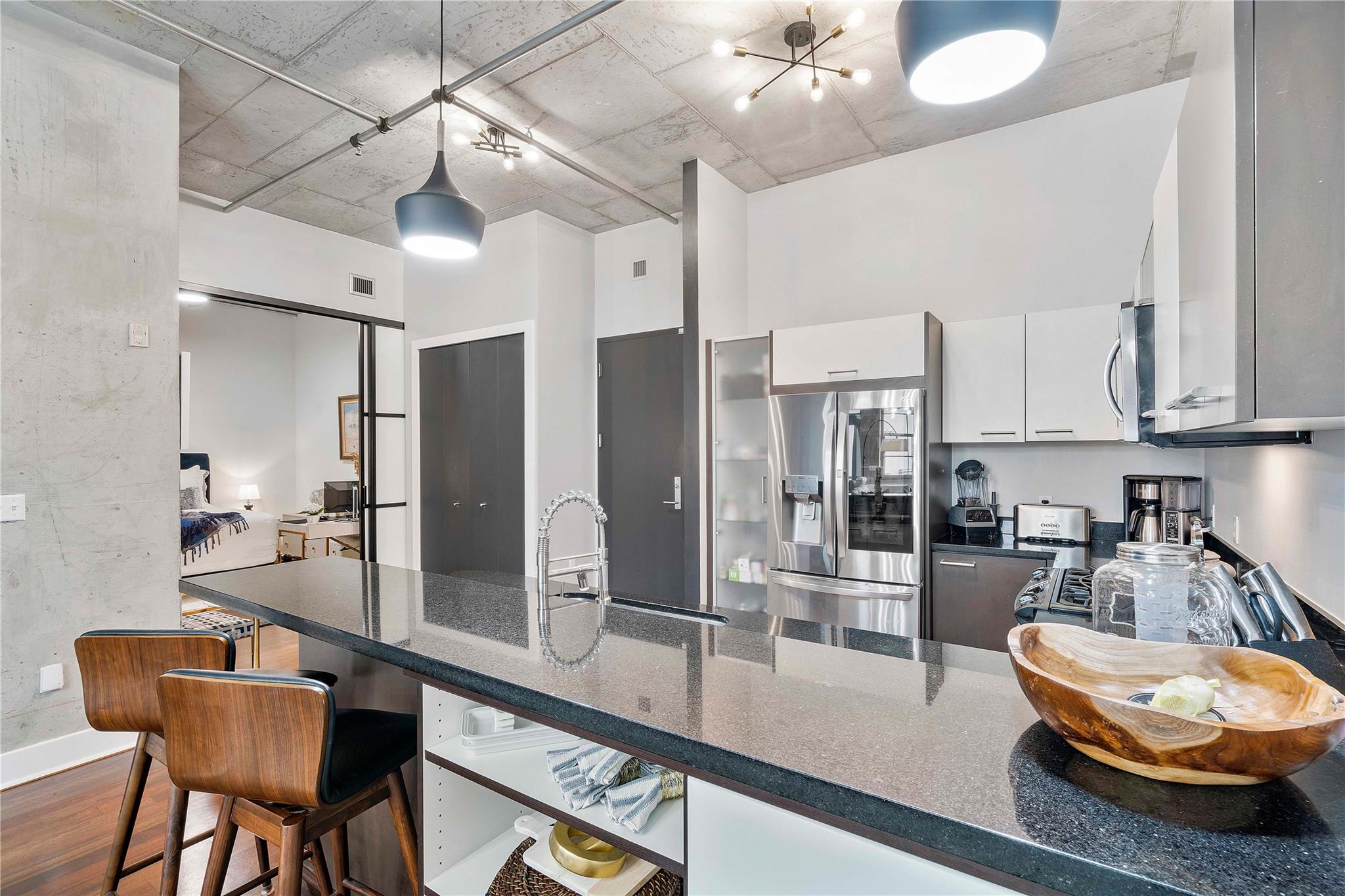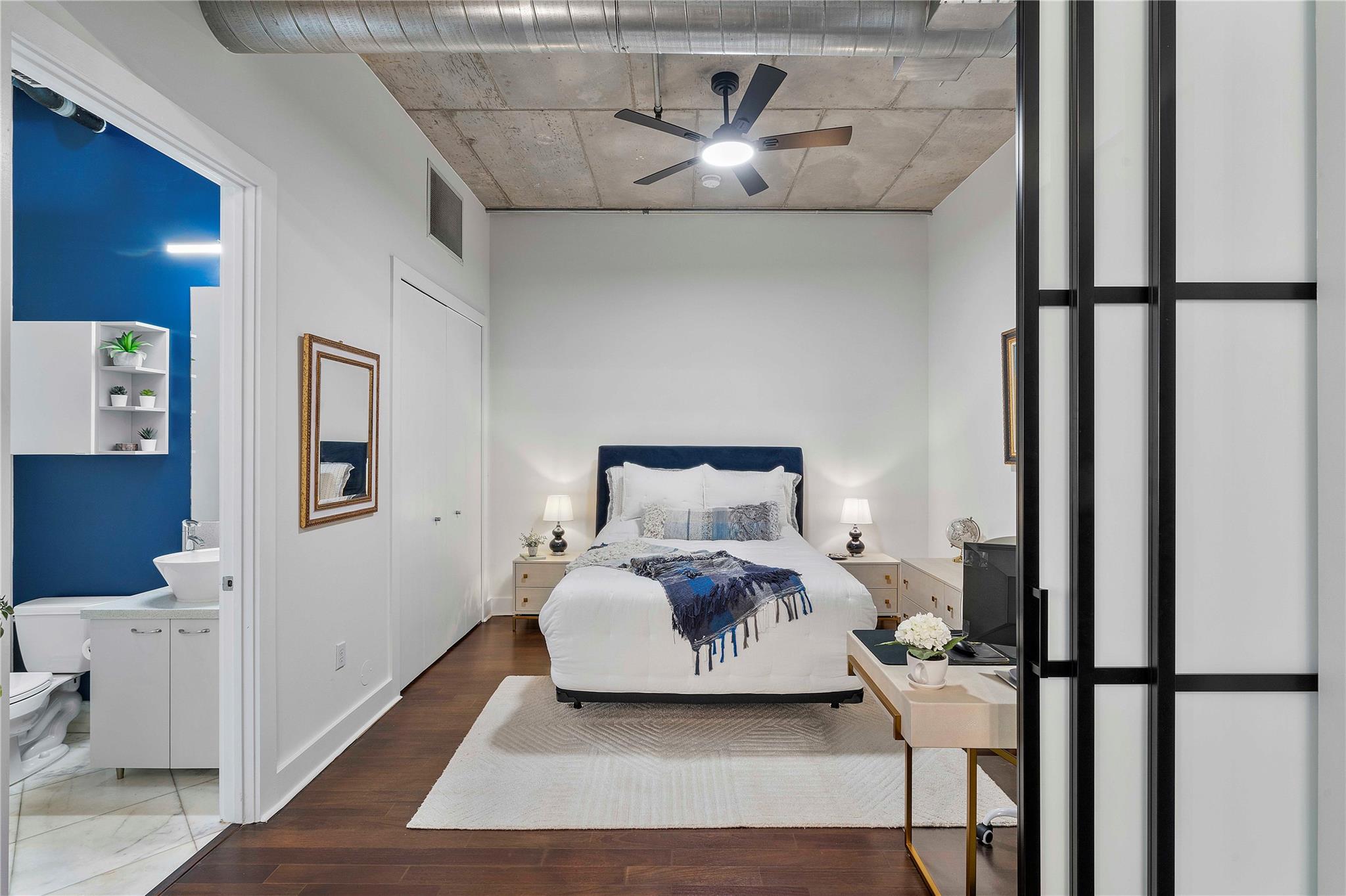 Discover urban living in the heart of Flagler Village, Fort Lauderdale's most sought-after neighborhood. This 2-bed, 2-bath loft-style residence offers a perfect blend of industrial design & modern luxury. The kitchen boasts sleek quartz countertops and a gas stove with stainless steel appliances. The bathrooms are elegantly finished with marble tile, adding a touch of sophistication. The guest bedroom provides flexibility with the option to embrace the open loft style or create privacy with sliding frosted glass doors. Expansive impact windows illuminate the space, while the private balcony overlooks the heated pool. Additional amenities include a BBQ area and fitness room on ground level. Just minutes from the beach, downtown Fort Lauderdale's vibrant Las Olas Blvd