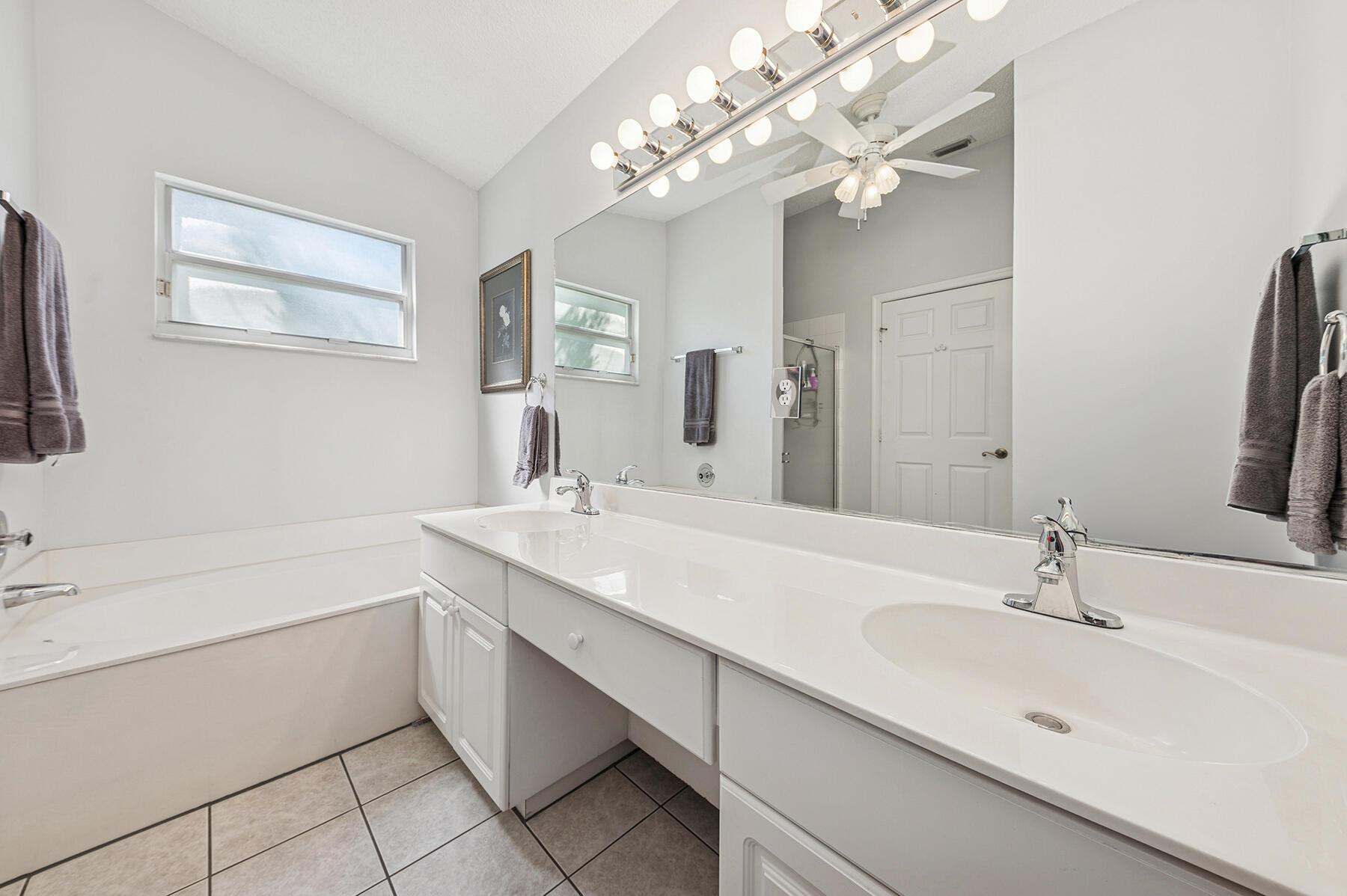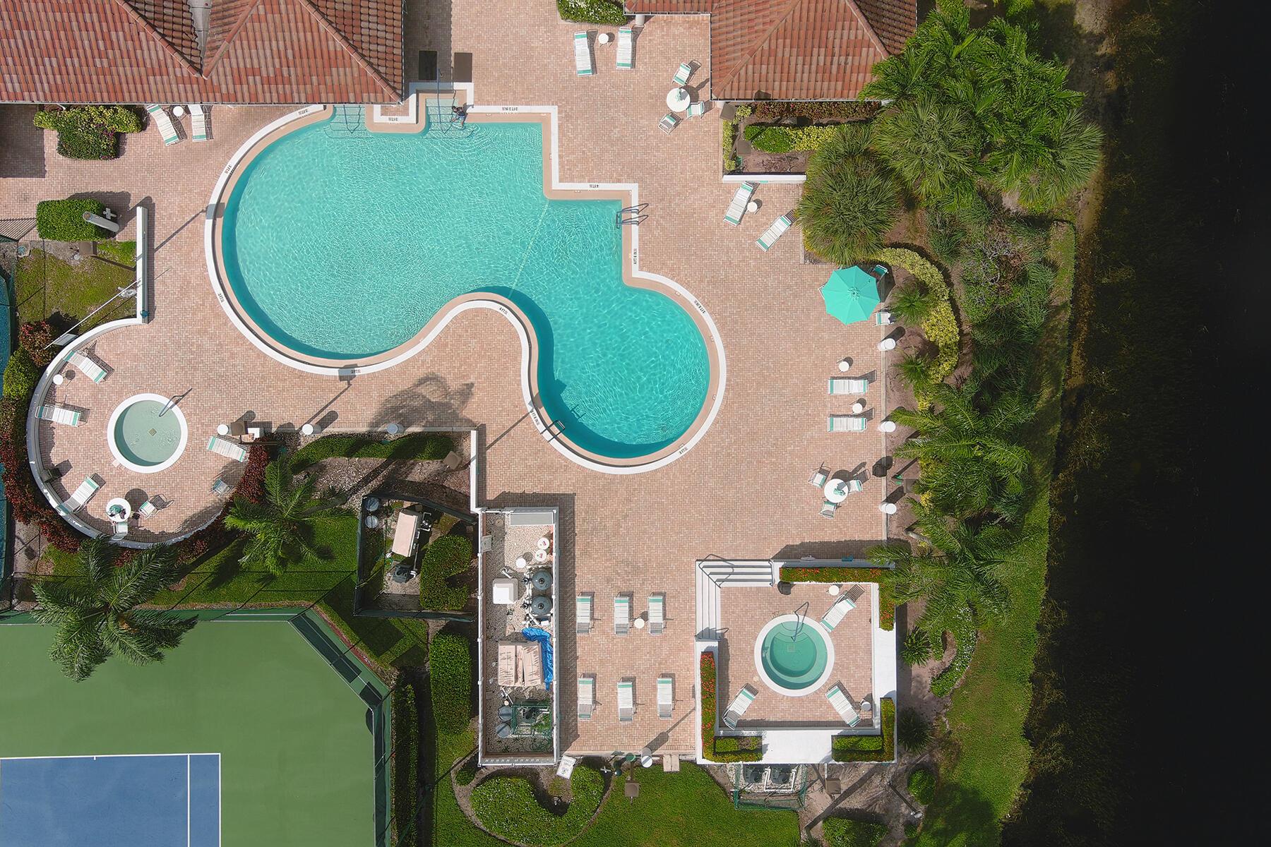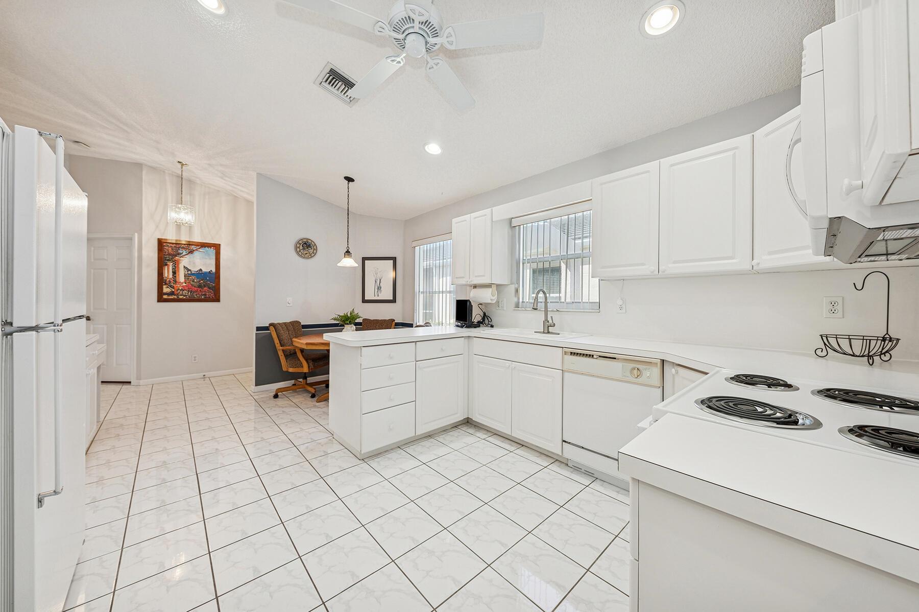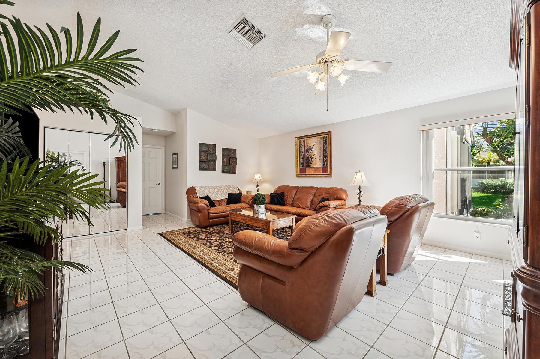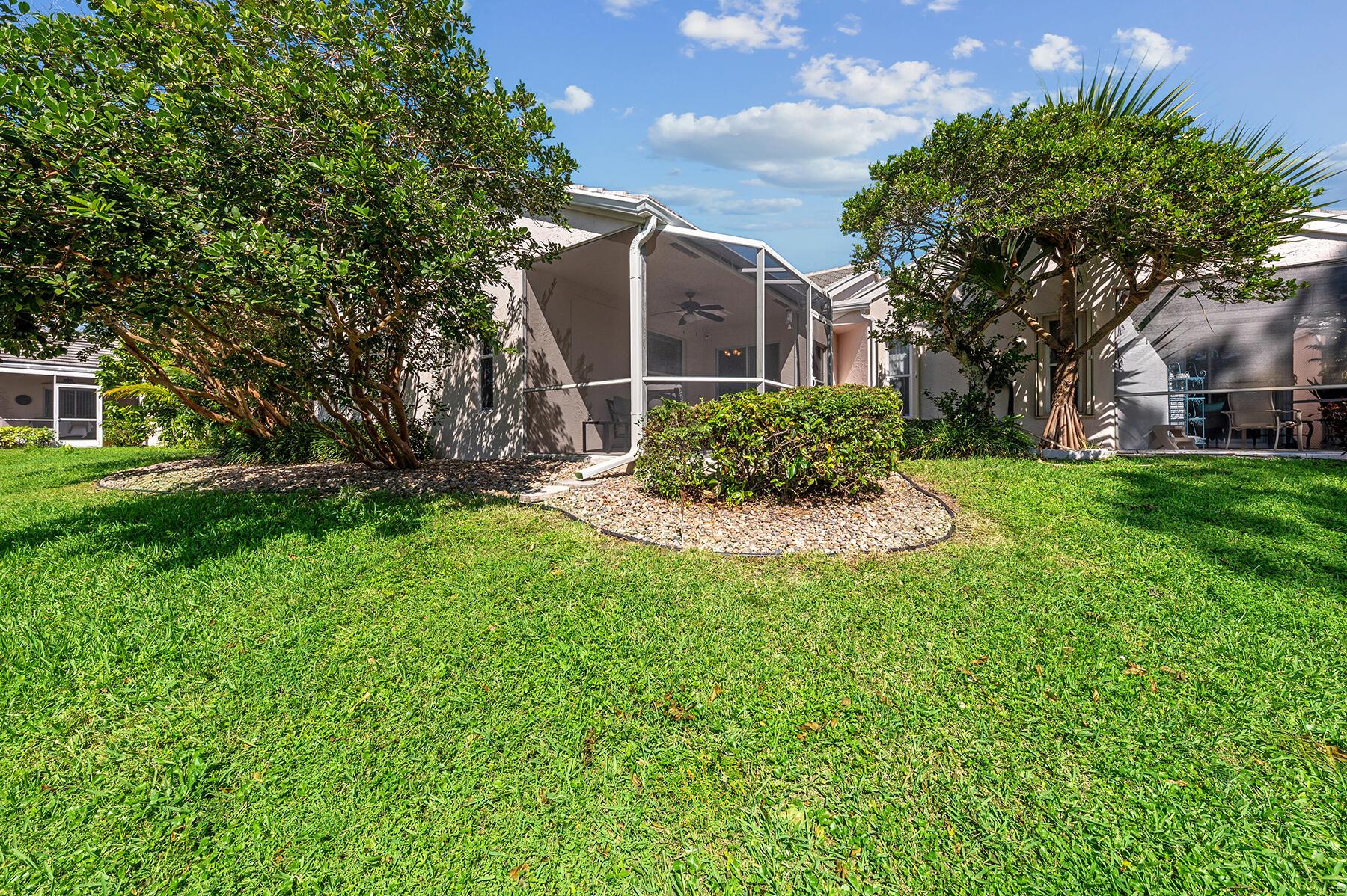 Serene view of lengthy interior lake from many rooms and screened patio. Well maintained home in The Island of River Bridge. This villa has a 2021 Tile Roof and gutters, exterior of house was painted in 2021, AC system installed in late 2015 and a 2014 water heater. Beautifully landscaped yard with rock beds. Many ''Smart Home'' features already installed for the Buyer's convenience. Only tile and high quality wood laminate flooring - No carpet. Two of the bedrooms have spacious walk-in closets. Extra-Long driveway leads to full 2-car garage. Separate laundry room off kitchen. This 3-bedroom villa doesn't back up to Jog Road or the shopping plaza. Lawn Care, Fiber Optic Cable/Internet, Irrigation included in HOA fees. The Island has a private pool area for residents & their guests.