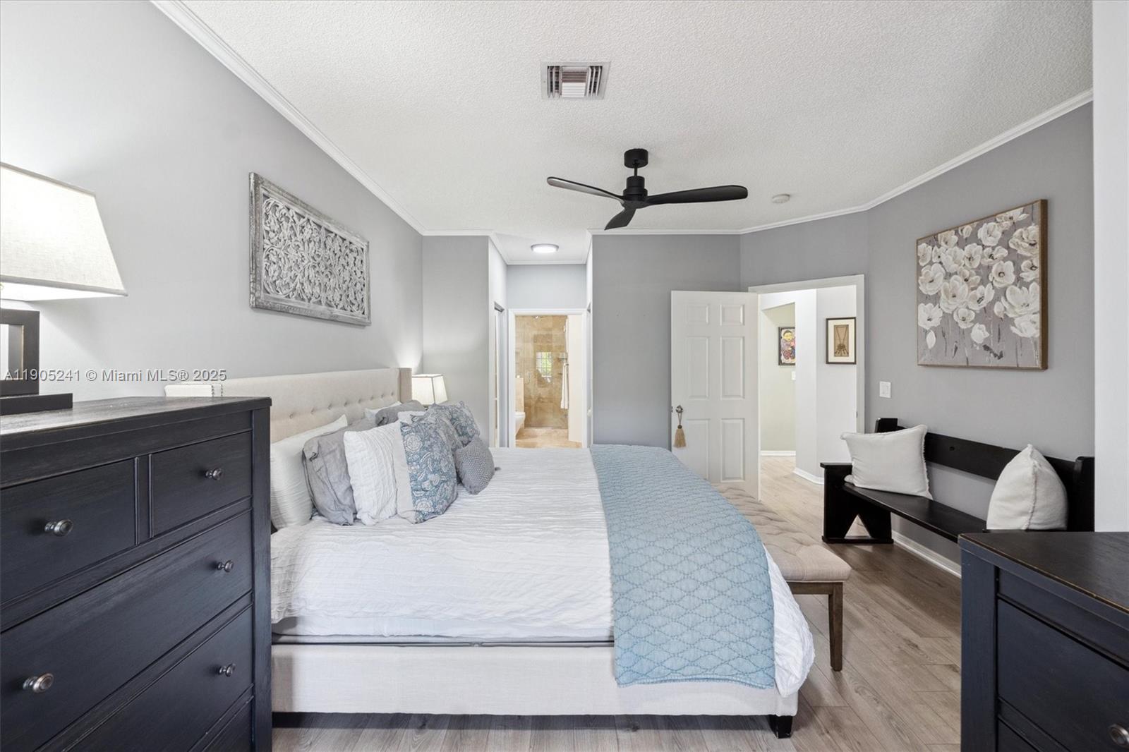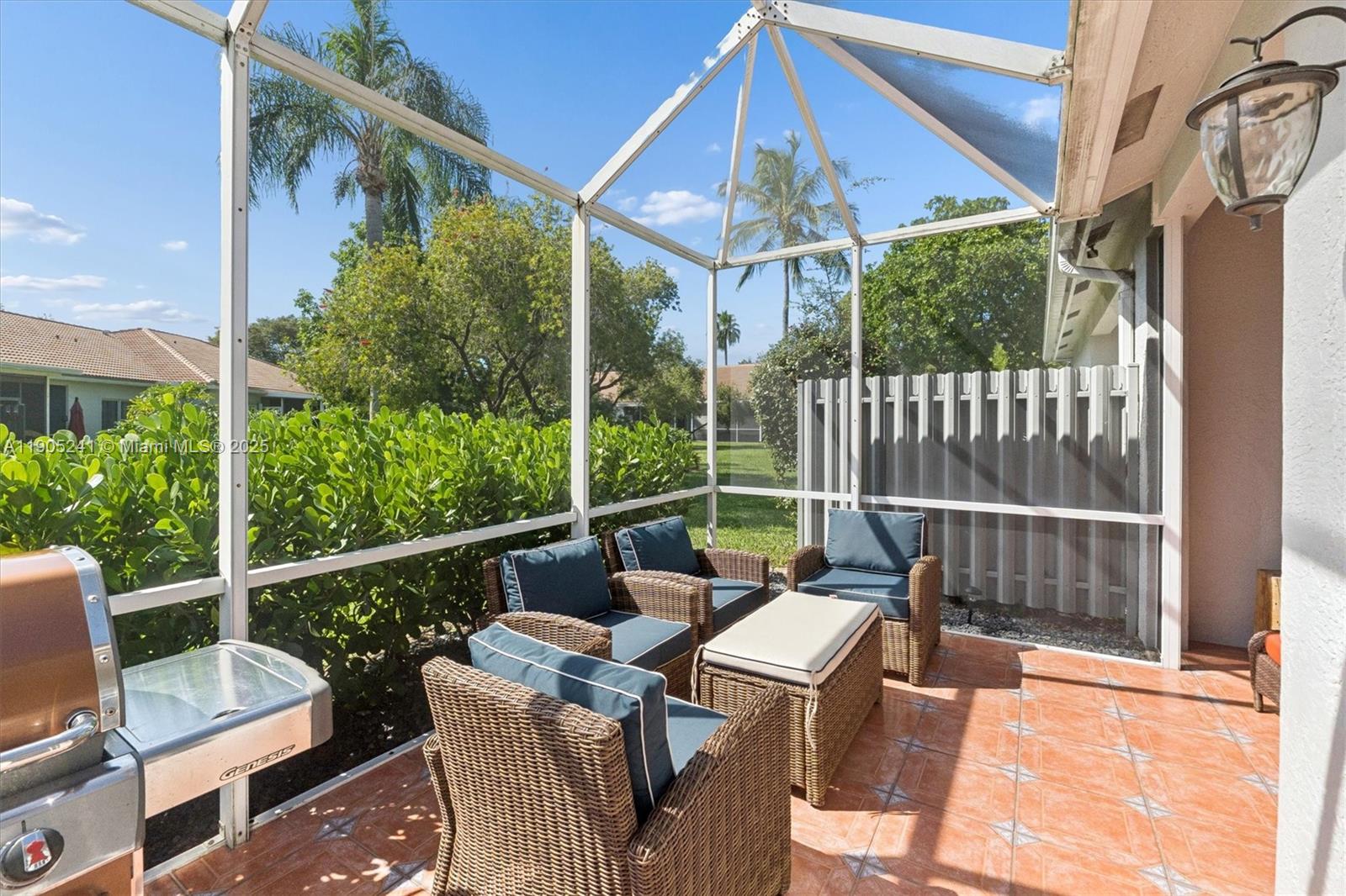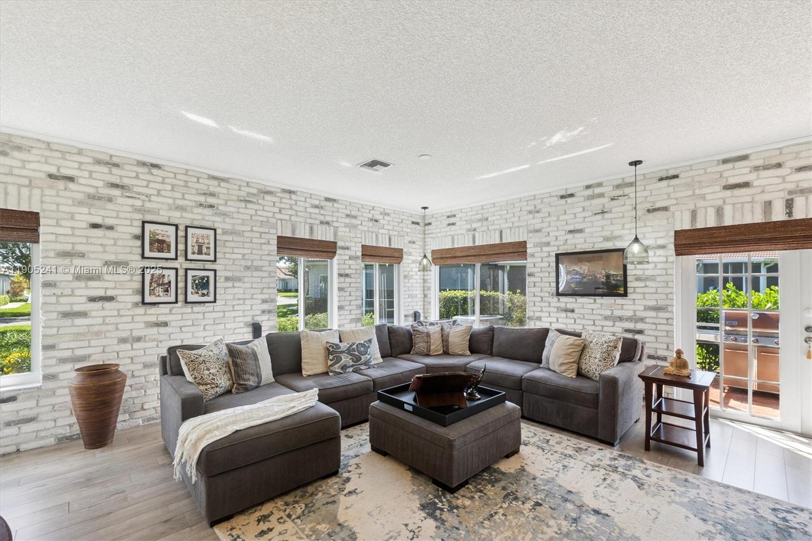 Tucked away behind the gates of The Waterways, this designer 3BR/2BA villa delivers the perfect blend of luxury and ease. Step inside to wide-plank LVP flooring, LED lighting, and custom brick walls that set a warm, modern tone. The reimagined kitchen stuns with concrete countertops, herringbone backsplash, GE Profile appliances, and a Kraus farmhouse sink. The serene primary suite offers dual closets, a travertine rain shower, and French doors opening to a screened lanai surrounded by lush gardens. Recent updates include new A/C (2023) and PGT Cat-5 impact windows & doors. Enjoy resort amenities—pools, fitness center, clubhouse, and 24-hour security—in a community where every detail feels elevated.