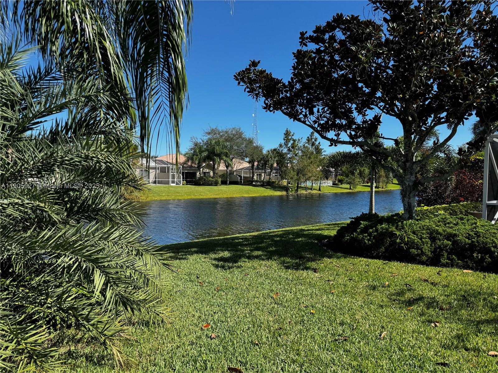 In the gated resort style community of Villagewalk, this beautifully maintained 2 bed/2 bath Capri villa is move in ready and waiting for its new owner. The lake view from indoors and while enjoying lanai provides a tranquil setting, and the interior is impeccable. White cabinets, Corian counters, epoxy garage floor, new washer/dryer, and accordion hurricane shutters are only some of the features you will find in this lovely home. In addition to the acres of lakes and preserves, this community offers many desirable amenities including resort style clubhouse and pool as well as a separate lap pool, tennis, child play area, fitness center, shuffleboard, basketball, and a dog spa and hair salon on site. Wellington is an upscale town with dining, shopping and all of the conveniences.