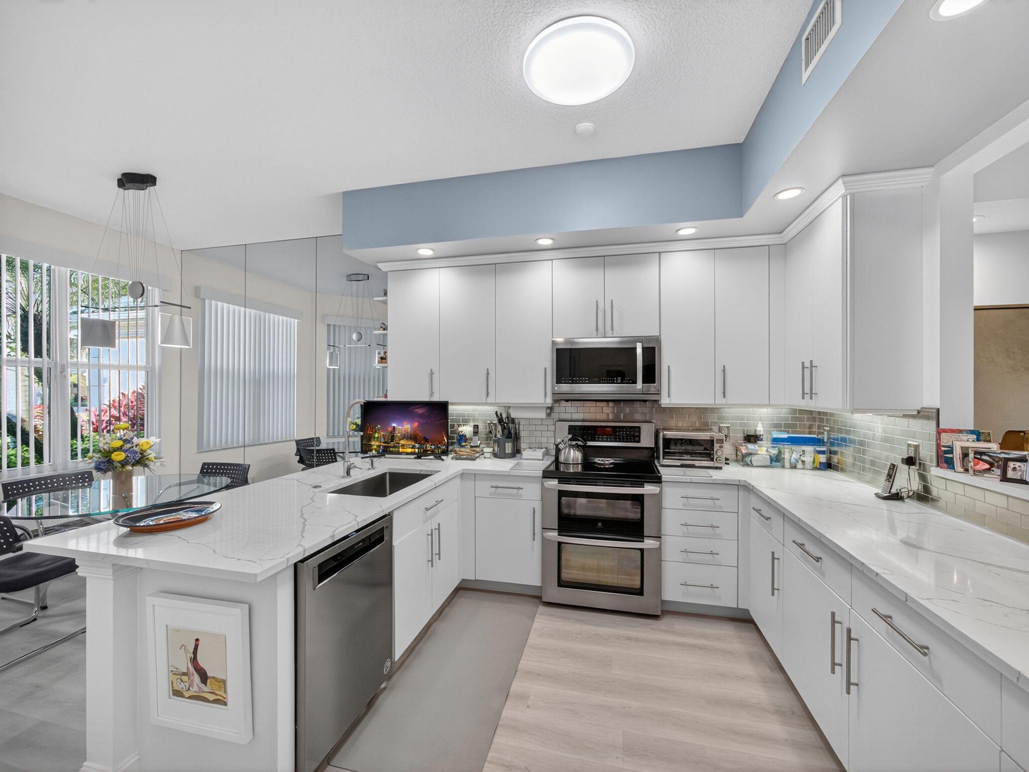 COMPLETELY RENOVATED 2 BEDROOM, 2 BATH FIRST FLOOR CONDOMINIUM WITH STUNNING GOLF COURSE AND LAKE VIEWS. THIS MOVE-IN READY HOME FEATURES ALL IMPACT GLASS, NEW FLOORING THROUGHOUT AND A BEAUTIFUL KITCHEN WITH MODERN FINISHES AND APPLIANCES. BOTH BATHROOMS HAVE BEEN FULLY RENOVATED WITH CONTEMPORARY STYLE AND QUALITY CRAFTMANSHIP. ENJOY PEACEFUL MORNINGS ON THE GLASSED IN PATIO OVERLOOKING THE LAKE WITH ITS SERENE FOUNTAIN AND LUSH BACKDROP. THIS HOME HAS NO MEMBERSHIP WHICH WILL ALLOW A BUYER TO CHOOSE ANY MEMBERSHIP AT CLOSING INCLUDING FULL GOLF. THIS IS A RARE OPPORTUNITY TO OWN A STYLISH, UPDATED CONDO WITH EXCEPTIONAL VIEWS AND UNBEATABLE VALUE.
