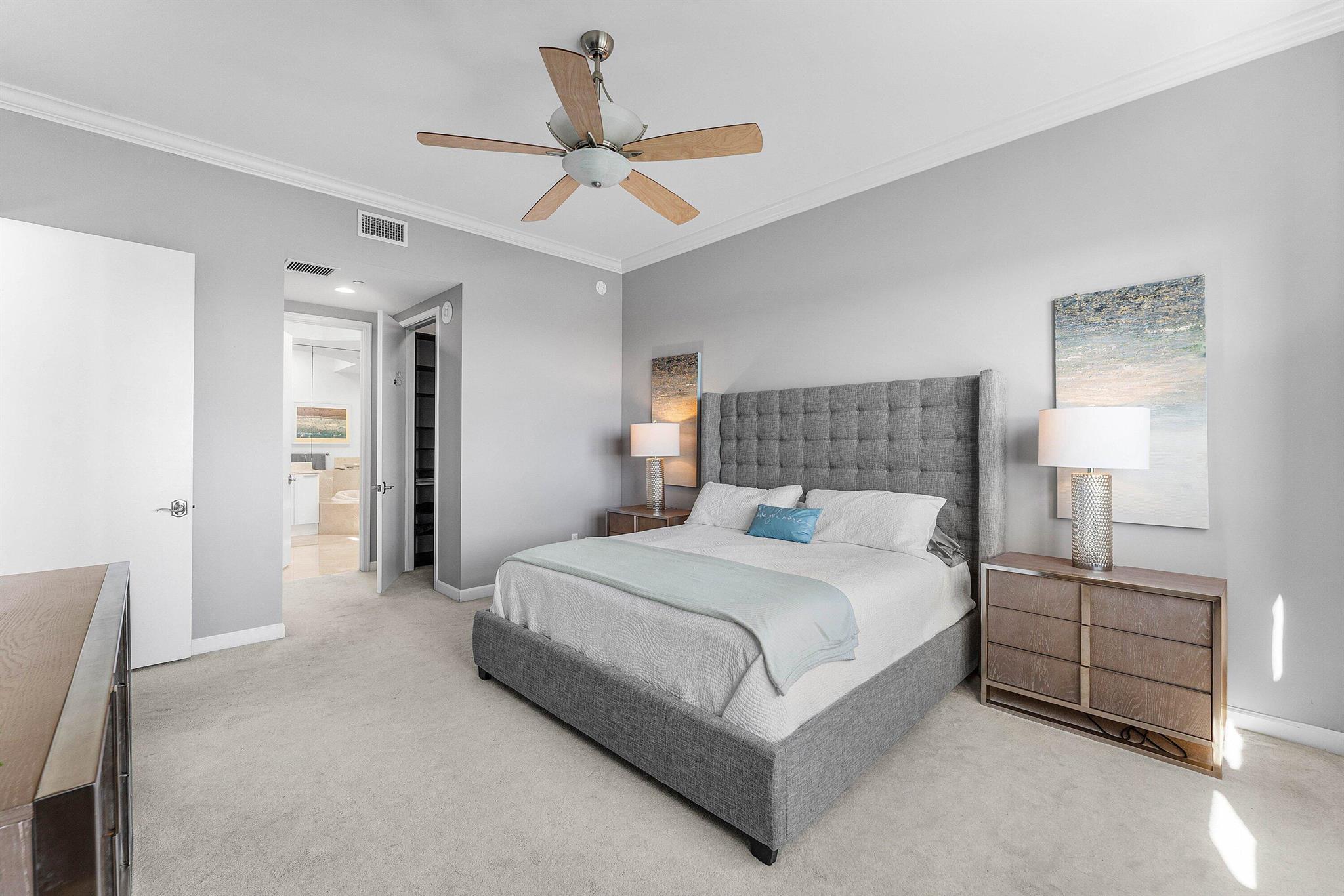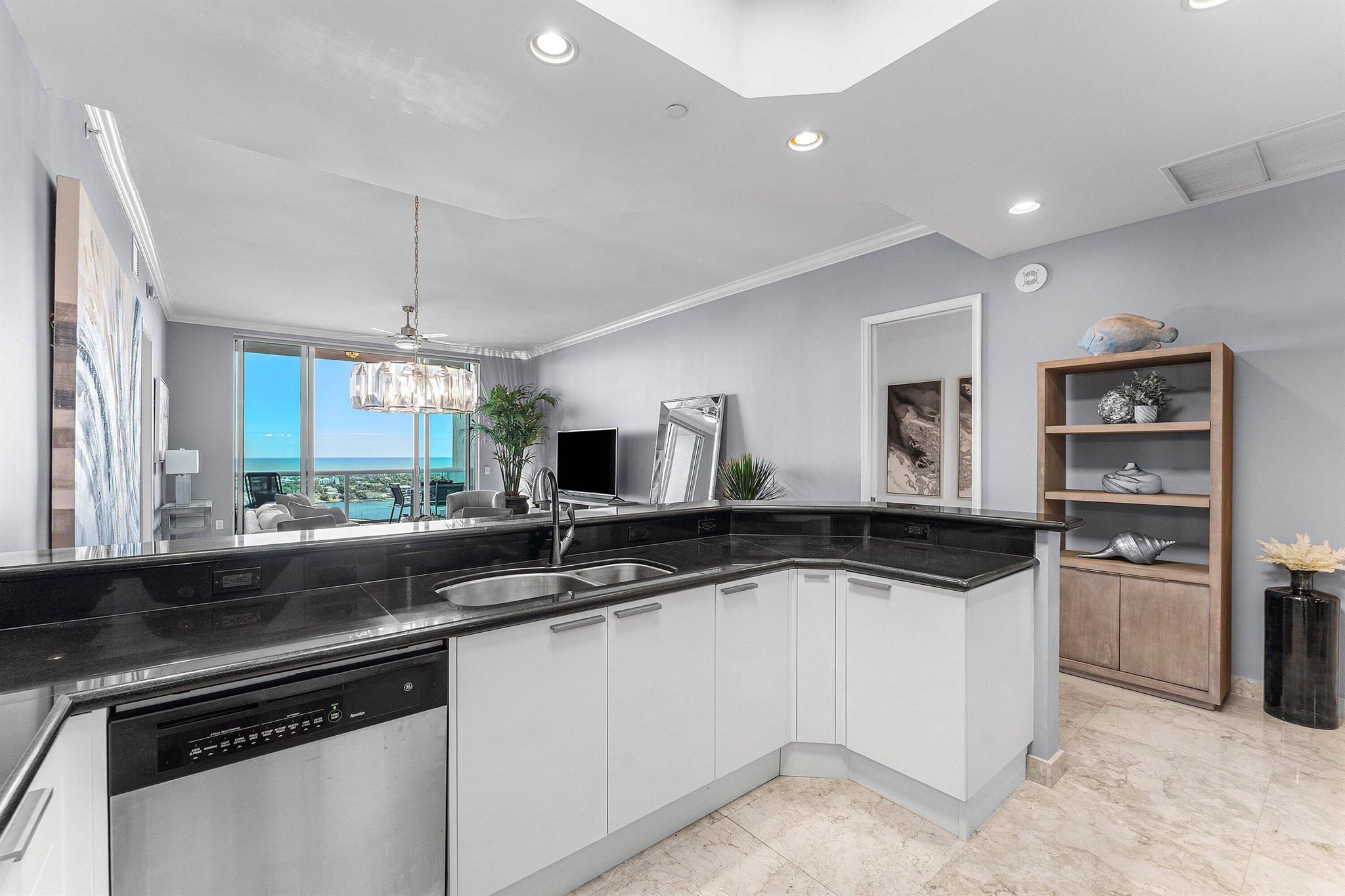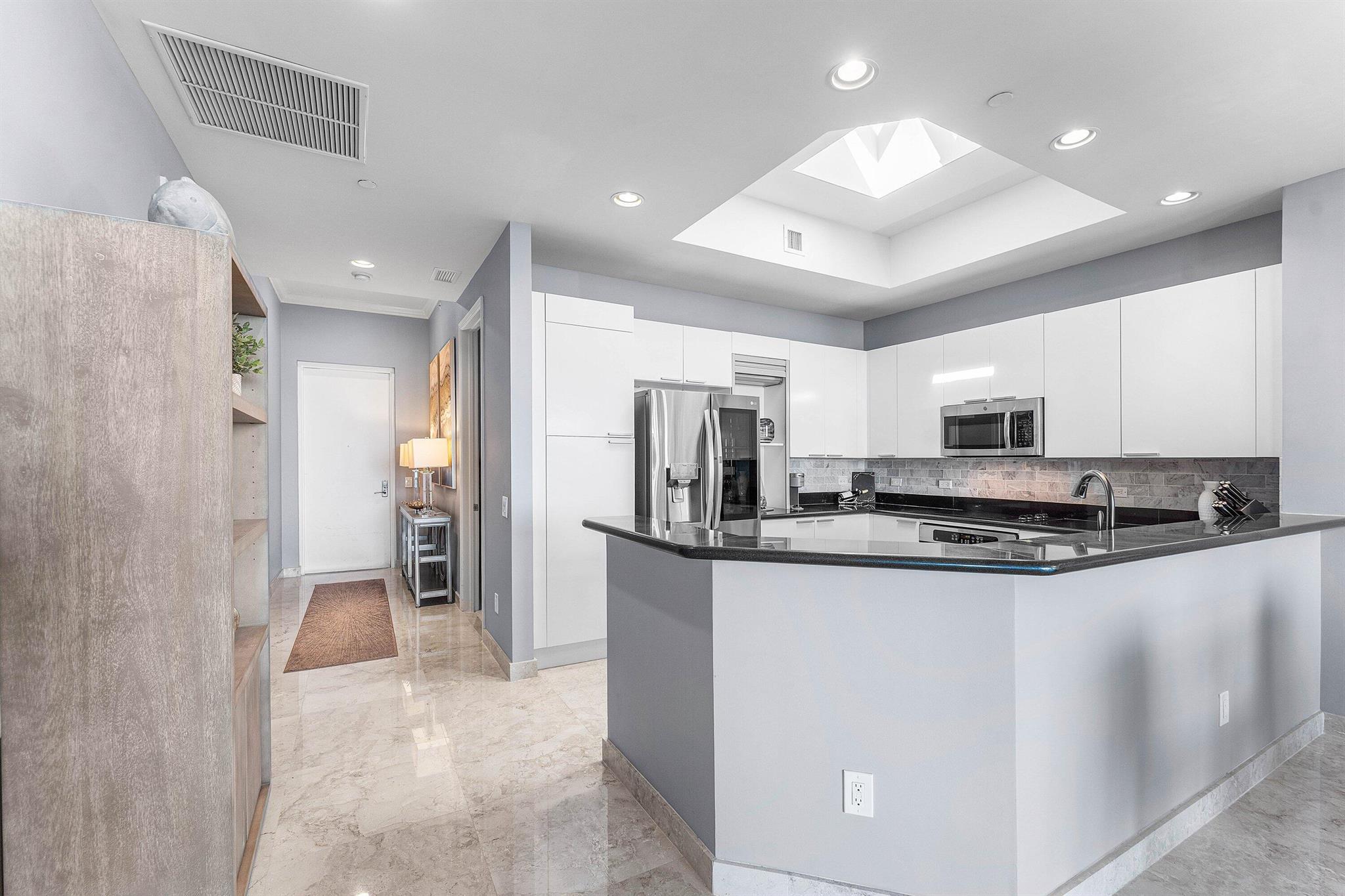 PENTHOUSE 22nd floor 2BR/2.5 BA w DIRECT Intracoastal & ocean views! Italian marble floors, high ceilings, 2 skylights, open concept, beautifully designed, neutral colors, crown molding, split floor plan. Spacious owners suite w/his & her walk-in California closets. Primary bath w/double vanity, jetted bath, water closet. Very private covered balcony. Impact glass, semi-private elevator access. Assigned garage parking (close to elevator!) & climate-controlled storage unit. 24/7 manned gate, valet, NEWLY renovated rooftop oasis w/pool, spa, BBQ areas, tennis, pickleball, & bocce. Clubhouse, billiard room & fitness center, walking path w/gazebo, Adjacent marina w/dry docks, minutes to the ocean, no fixed bridges. Pet friendly.