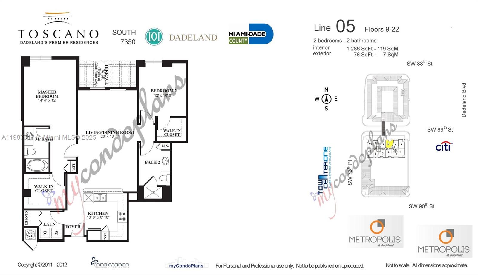 Beautiful 2 Bedroom/2 Bath condo at sought-after Toscano Dadeland! This bright and spacious unit features a huge private balcony perfect for outdoor dining or relaxing. Enjoy an open layout, modern kitchen, large closets, and 2 assigned parking spaces. Move-in ready condition with new carpets and freshly painted walls. Luxury resort style amenities include pool, gym, concierge, and 24-hr security. Prime location across from the Dadeland Mall, restaurants, and the Metrorail. Urban living at its best!