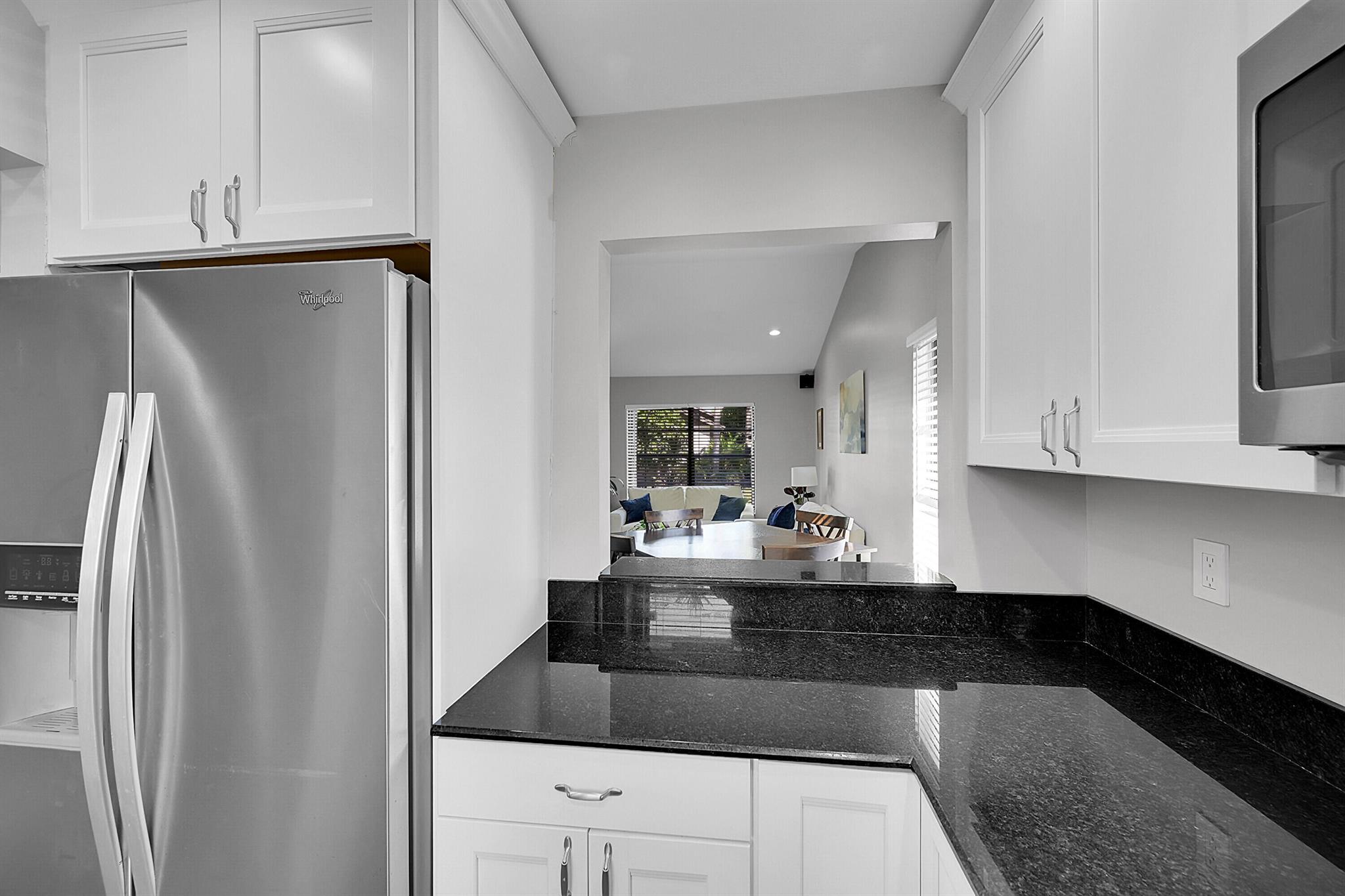This beautifully renovated 2-bedroom, 2-bath villa in the gated community of Dos Lagos offers the perfect blend of comfort, style, and peace of mind. As a corner unit, it provides extra privacy, natural light, and an ideal layout featuring a screened-in patio with additional outdoor space for a grill or lounge chairs -- perfect for relaxing or entertaining.Step inside to discover white shaker cabinets with soft-close doors, stainless steel appliances, and a reverse osmosis water filtration system in the updated kitchen. The home features vinyl flooring throughout, recessed lighting in every room, no popcorn ceilings, and high ceilings in the main living area, giving it a spacious and modern feel. The washer and dryer are conveniently located in the patio.