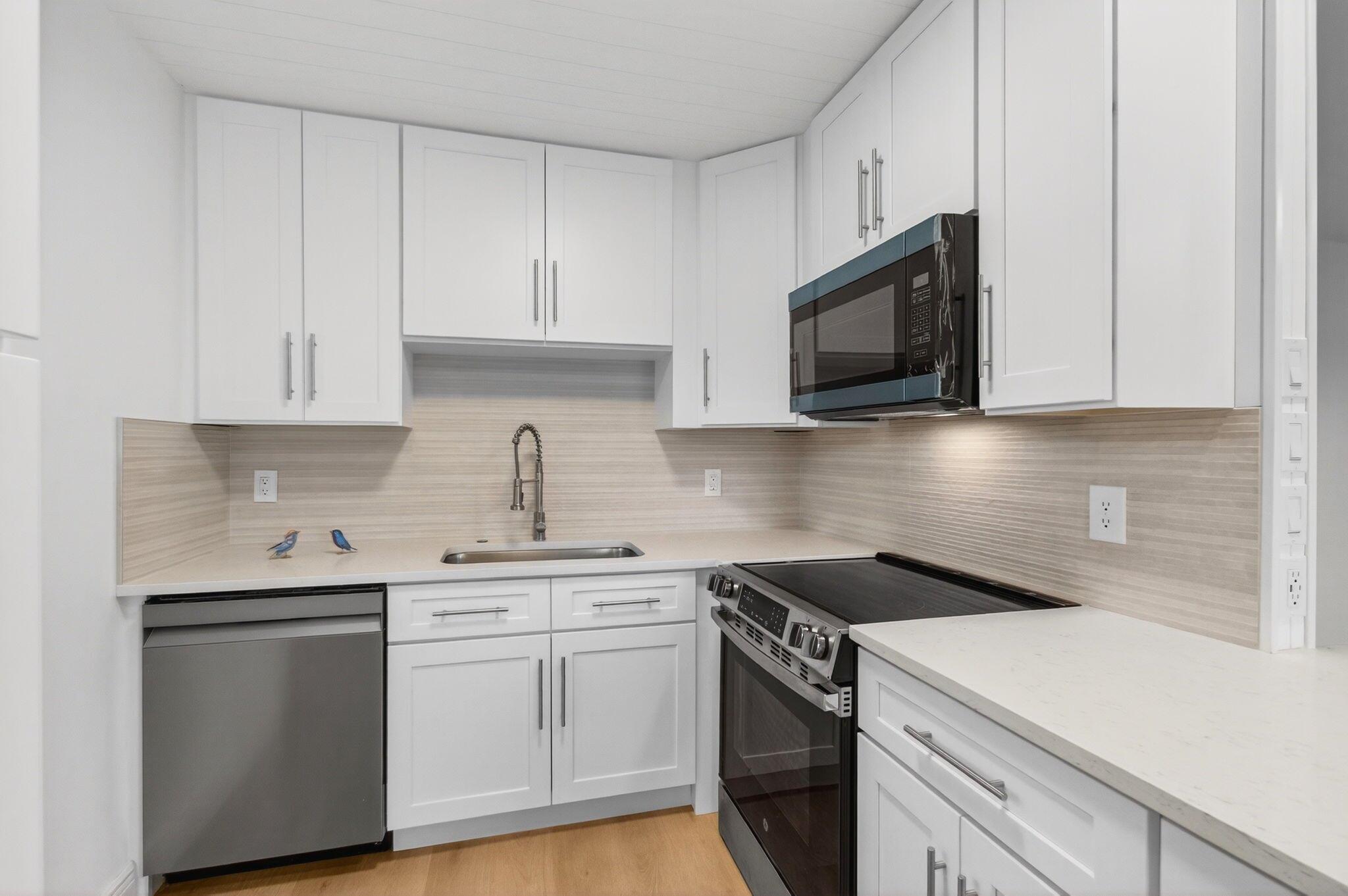 Welcome to this remodeled 2-bedroom, 2-bath second-floor condo in the desirable Kings Point 55+ community. Enjoy peaceful garden views from your bright living area and screened balcony. The home features an updated electrical panel, newer AC (2020), and modern finishes throughout.Quartz Counters, white shaker style cabinets. Move-in ready and priced to sell, this unit offers the perfect combination of comfort, value, and style. Residents enjoy world-class amenities including golf, pools, tennis, pickleball, fitness centers, cafes, clubs, and courtesy shuttles--all in a vibrant, active-adult setting just minutes from shopping, dining, and the beach.