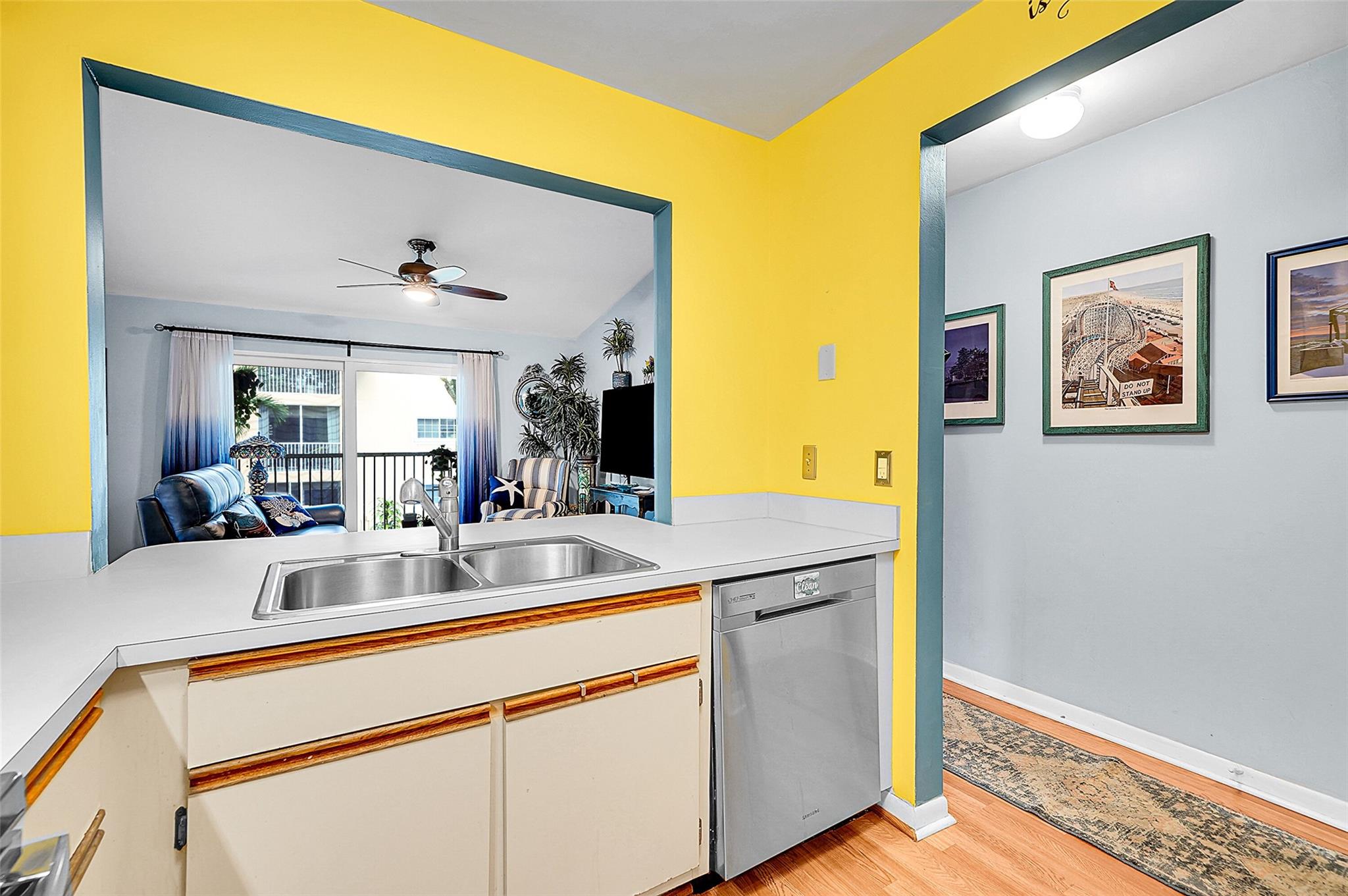 Beach vibes just 1.5 miles away! This sunny 2/2 condo gives you pool views from the bedrooms, morning coffee on your screened balcony, and peace of mind with an impact slider. Love color? The cheerful kitchen and open layout shine with personality. Washer/dryer in unit, Roman tub for bubble baths, and bonus storage closet. Community perks include a pool and clubhouse. Pet-friendly and east of US1! Two assigned parking spaces included along with plenty of guest parking. No rentals 1st year. Easy breezy Dania Beach living starts here!